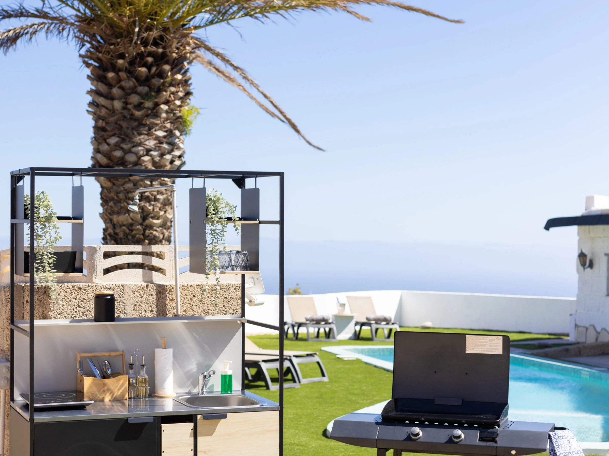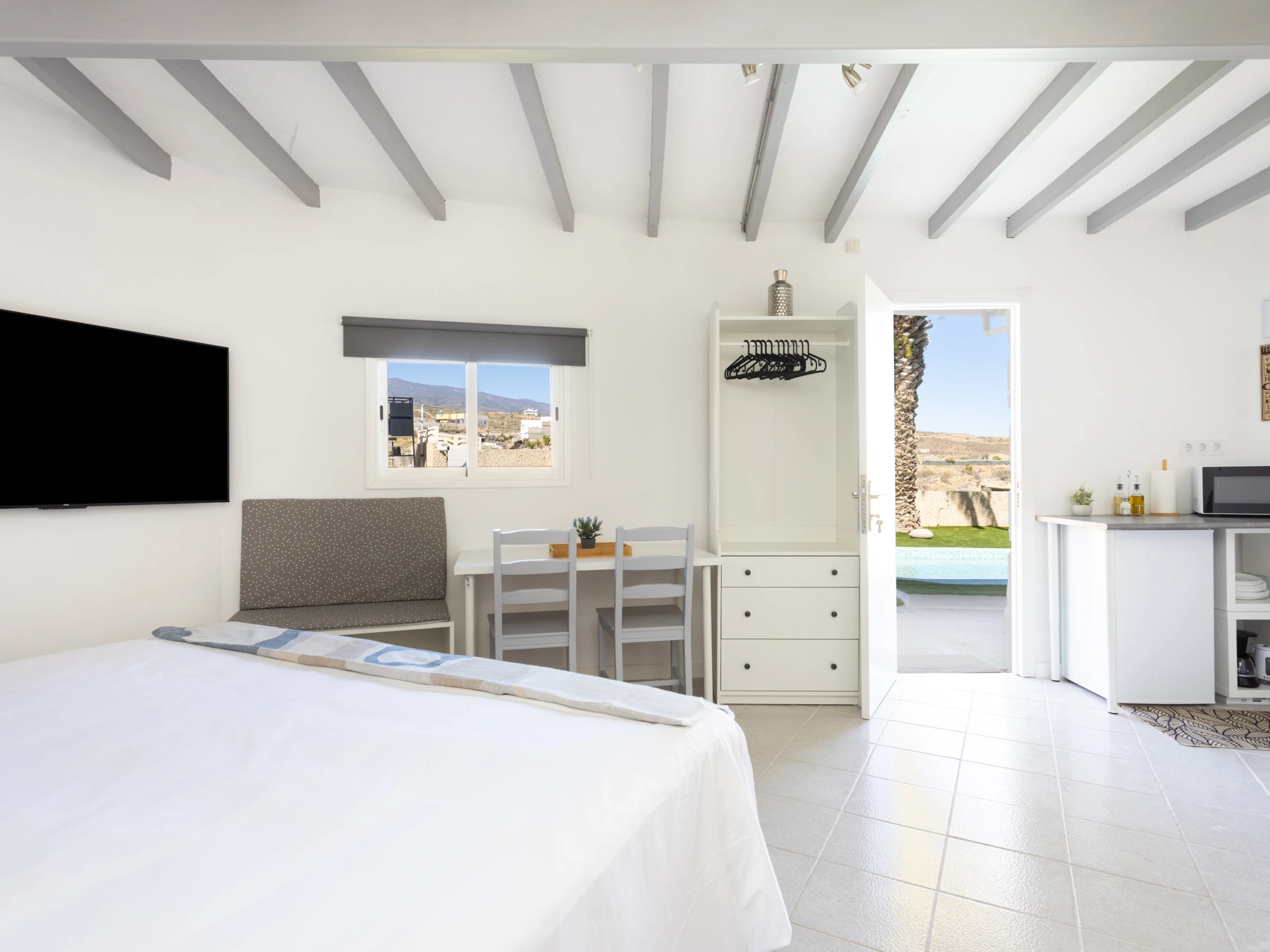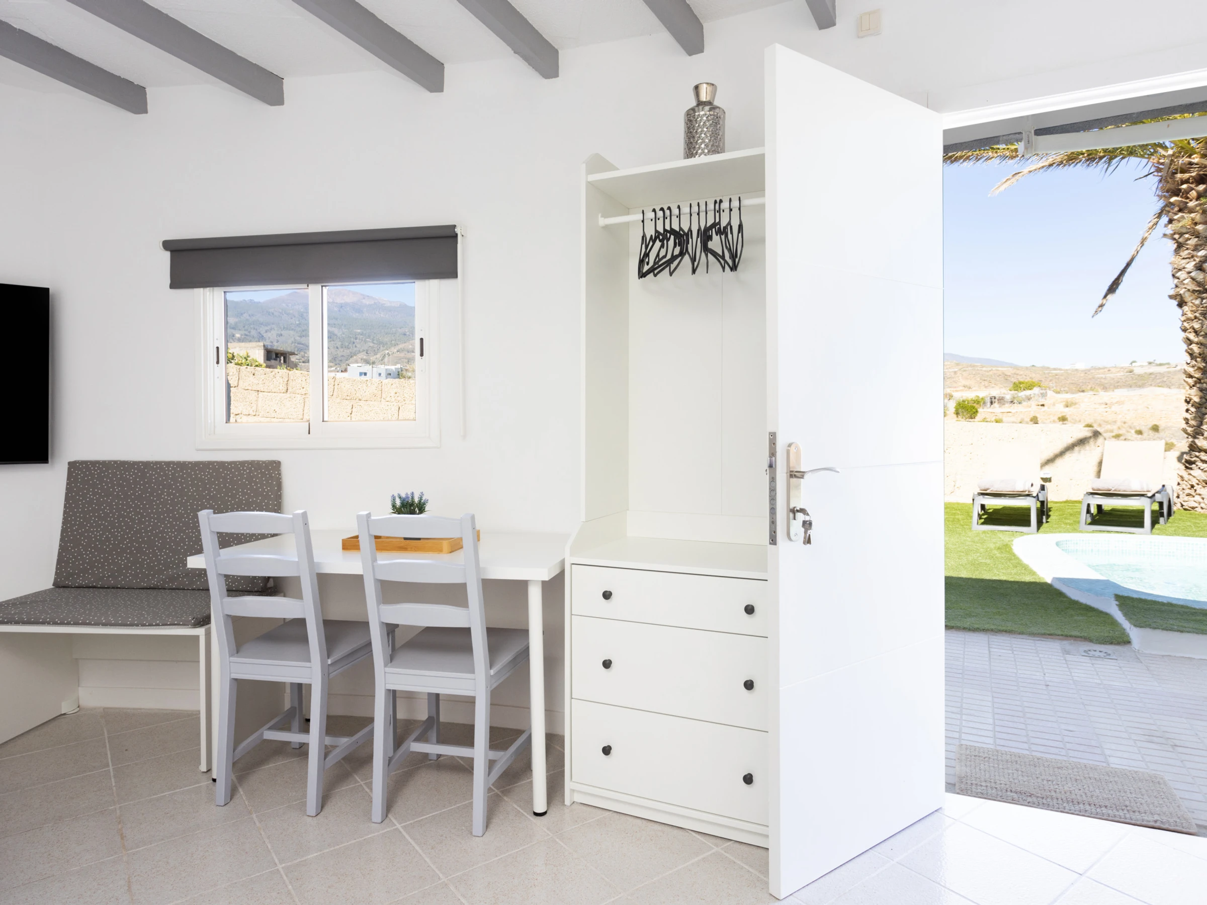 Direkter Zugang zum Pool und Blick auf den Garten: Deine ideale Ecke zum Abschalten.