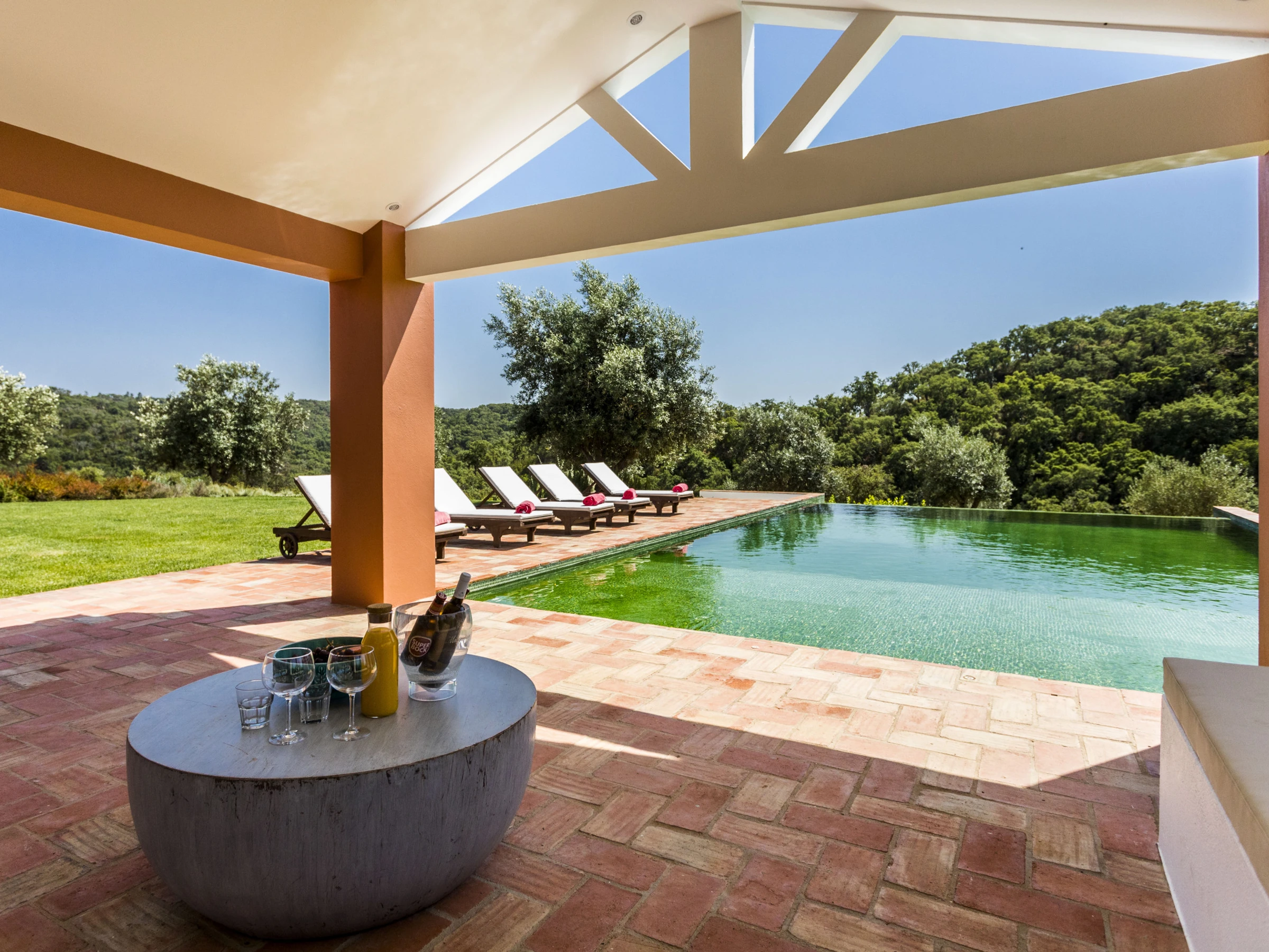 The outdoor area of Grandola Mountain Paradise is absolutely stunning, with a large infinity swimming pool that is surrounded by the vibrant greens of the Grandola countryside.