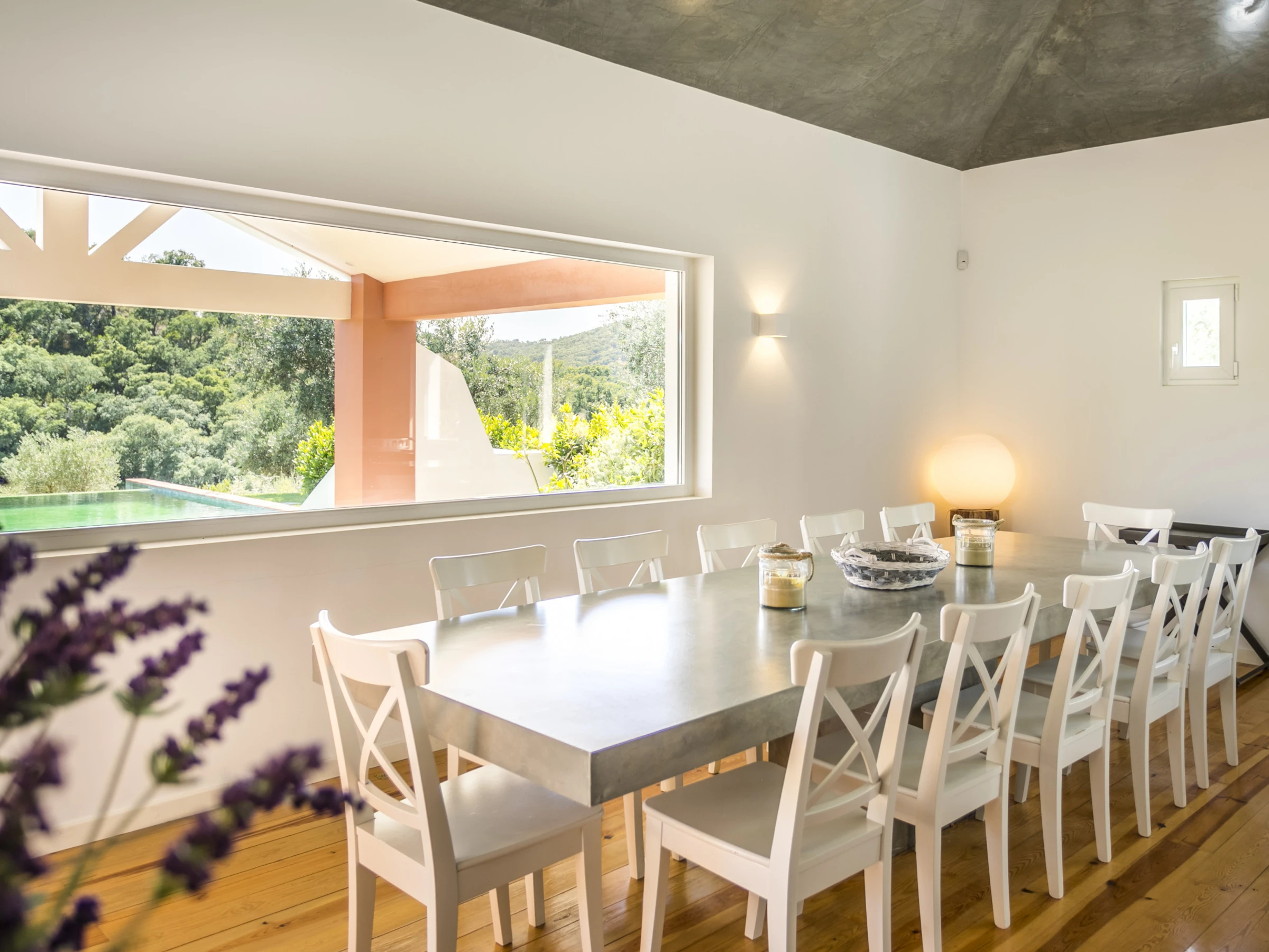 Lined on three sides by red tilling, with sunbeds positioned around it for the whole party, and the fourth side boasting such glorious views, the pool really is the heart of the villa. Immediately next to the pool on one side is a covered chill area, with outdoor day beds and a large window into the dining area. Overall, this is a modern, spacious and comfortable villa nestled in the heart of the Grandola countryside, but only a stone's throw from the city.