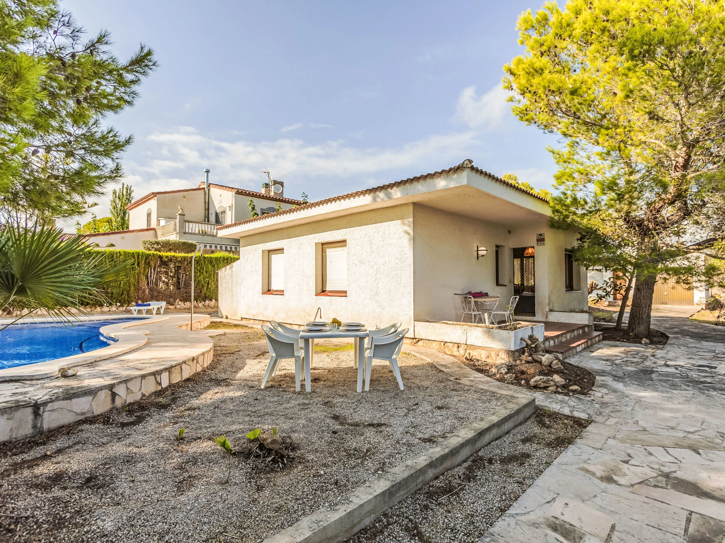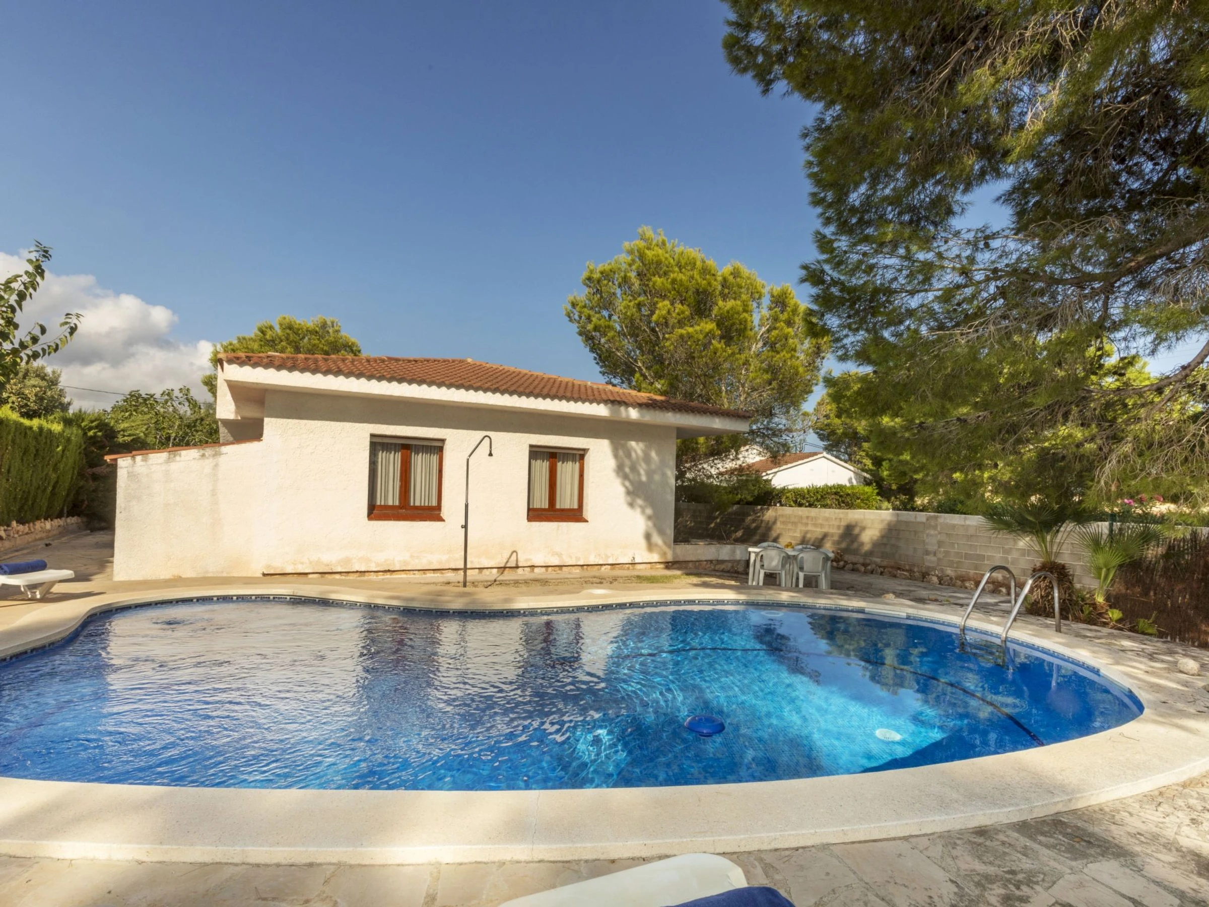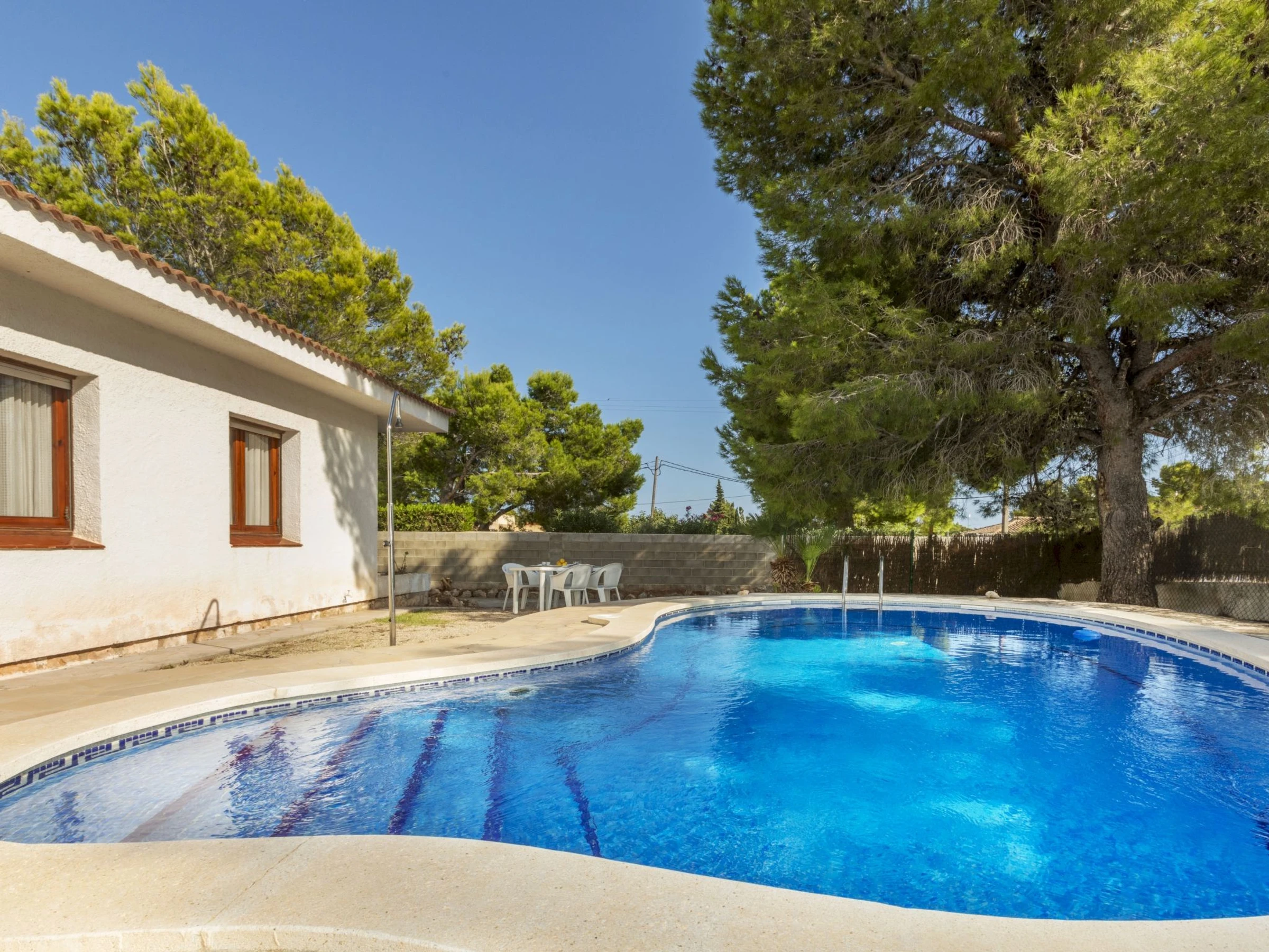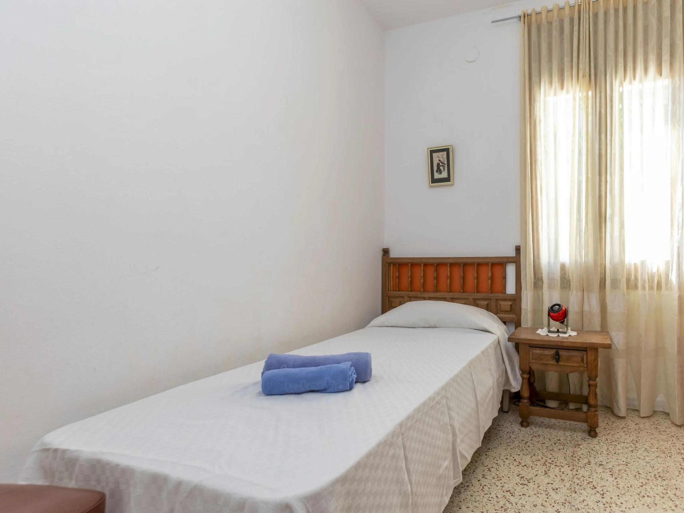 "Balaguer", 4-Zimmer-Haus 100 m2. Zweckmässig und komfortabel eingerichtet: Wohn-/Esszimmer mit Digital-TV. 1 Zimmer mit 1 franz. Bett (150 cm). 1 Zimmer mit 2 Betten (90 cm). 1 Zimmer mit 1 Bett (90 cm). Küche (4 Kochplatten, Geschirrspüler, Toaster, Wasserkocher, Mikrowelle, Tiefkühler, elektrische Kaffeemaschine). Ausgang zum Garten. Dusche/Bidet/WC. Keine Heizmöglichkeit. Grosser Gartensitzplatz. Terrassenmöbel, Gartengrill. Zur Verfügung: Waschmaschine, Bügeleisen, Haartrockner. [hidden] // Reg. Nr.: ESFCTU0000430200000640740000000000000000[hidden]6