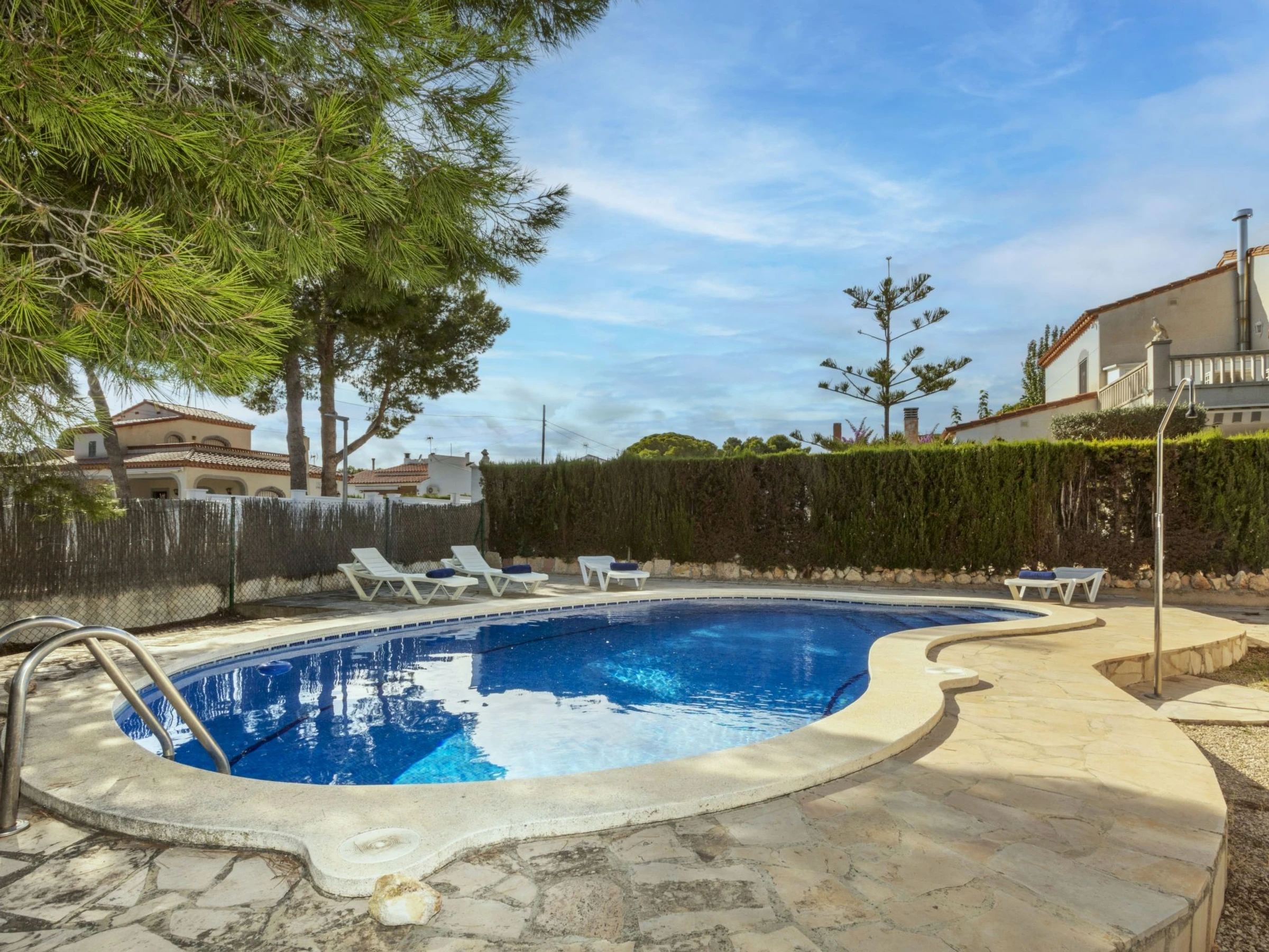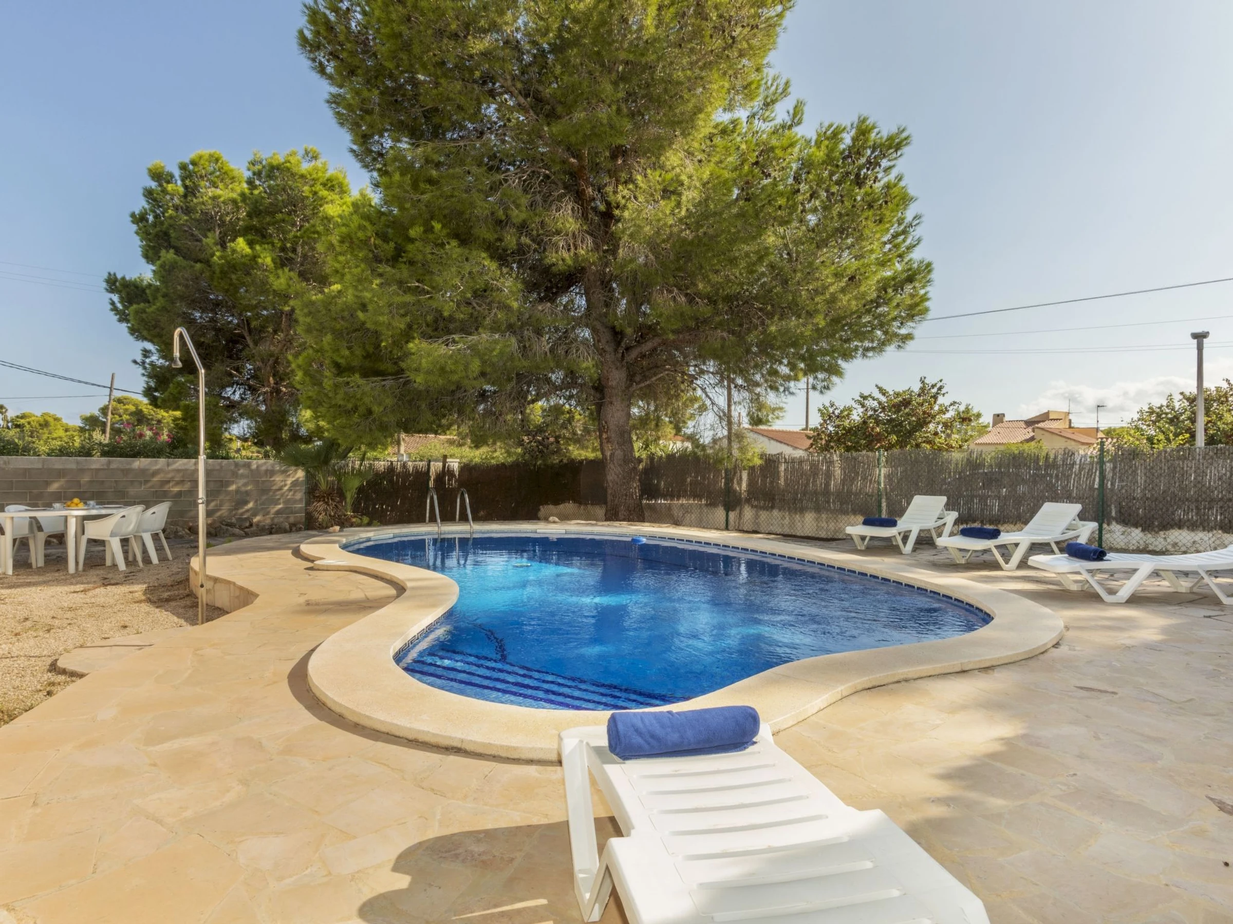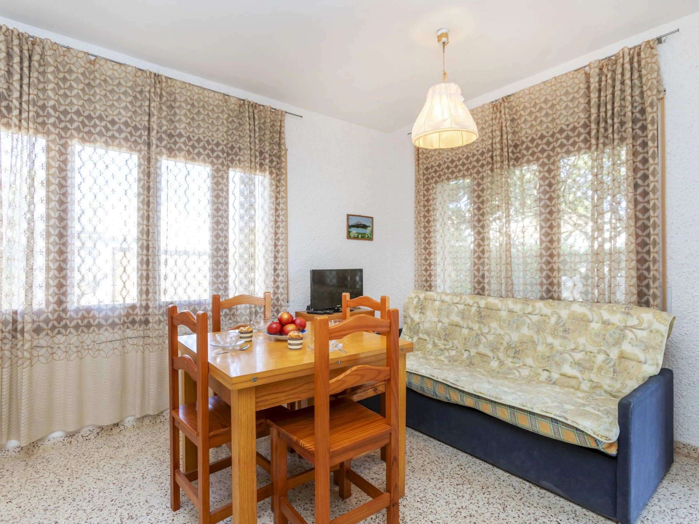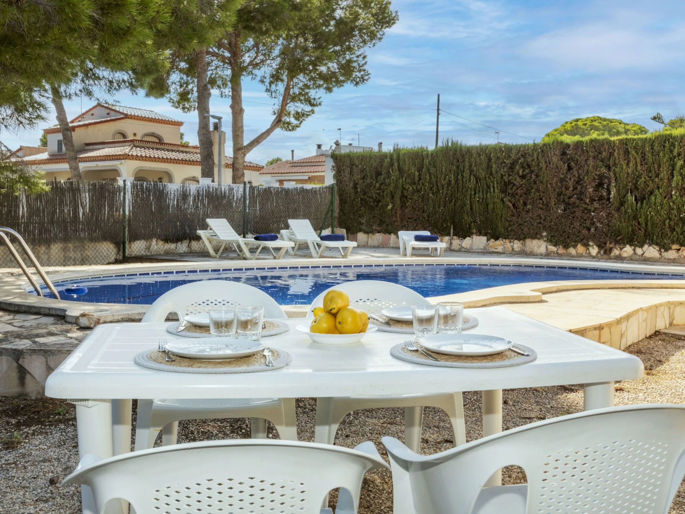 "Balaguer", 4-Zimmer-Haus 100 m2. Zweckmässig und komfortabel eingerichtet: Wohn-/Esszimmer mit Digital-TV. 1 Zimmer mit 1 franz. Bett (150 cm). 1 Zimmer mit 2 Betten (90 cm). 1 Zimmer mit 1 Bett (90 cm). Küche (4 Kochplatten, Geschirrspüler, Toaster, Wasserkocher, Mikrowelle, Tiefkühler, elektrische Kaffeemaschine). Ausgang zum Garten. Dusche/Bidet/WC. Keine Heizmöglichkeit. Grosser Gartensitzplatz. Terrassenmöbel, Gartengrill. Zur Verfügung: Waschmaschine, Bügeleisen, Haartrockner. [hidden] // Reg. Nr.: ESFCTU0000430200000640740000000000000000[hidden]6