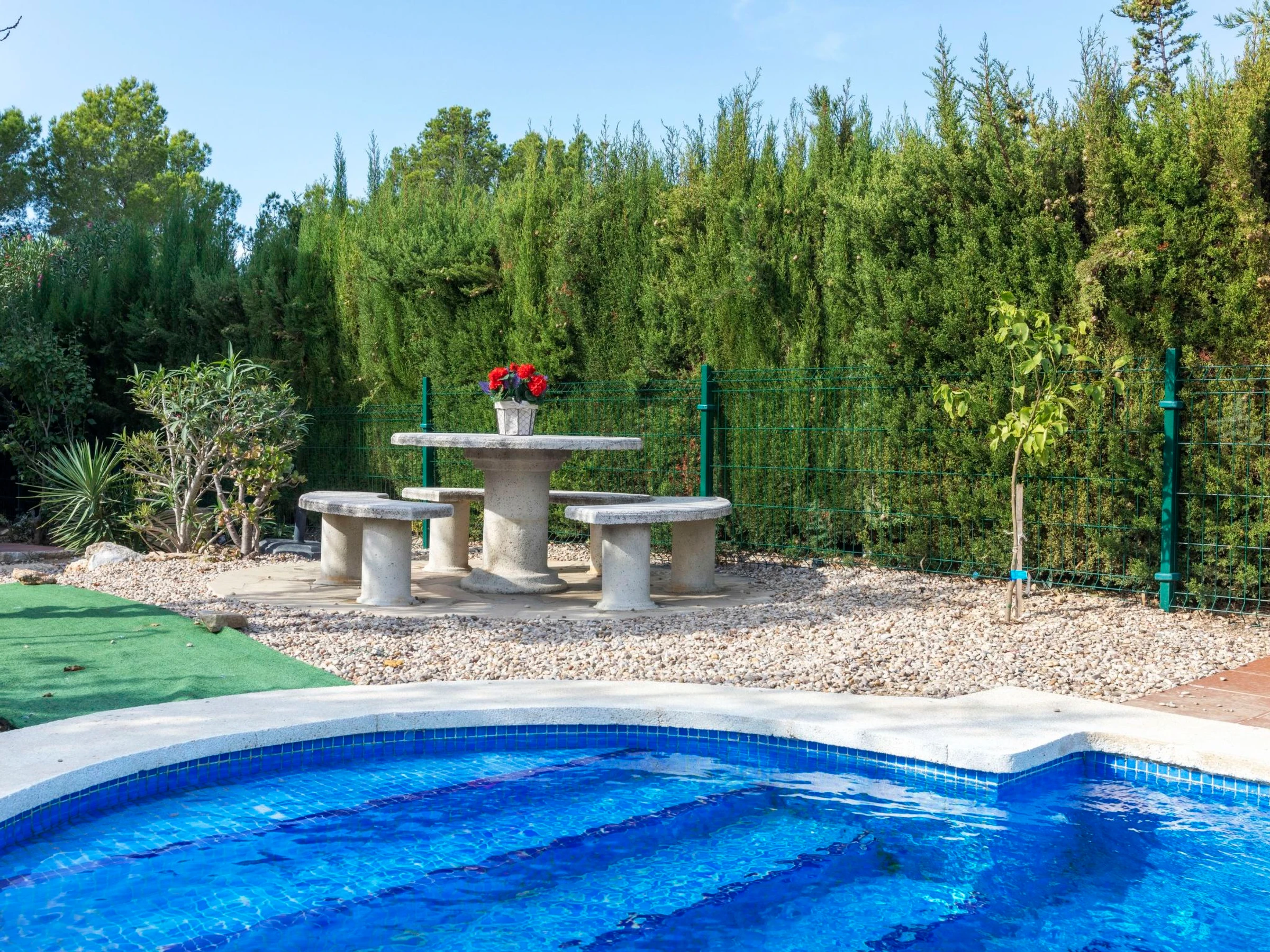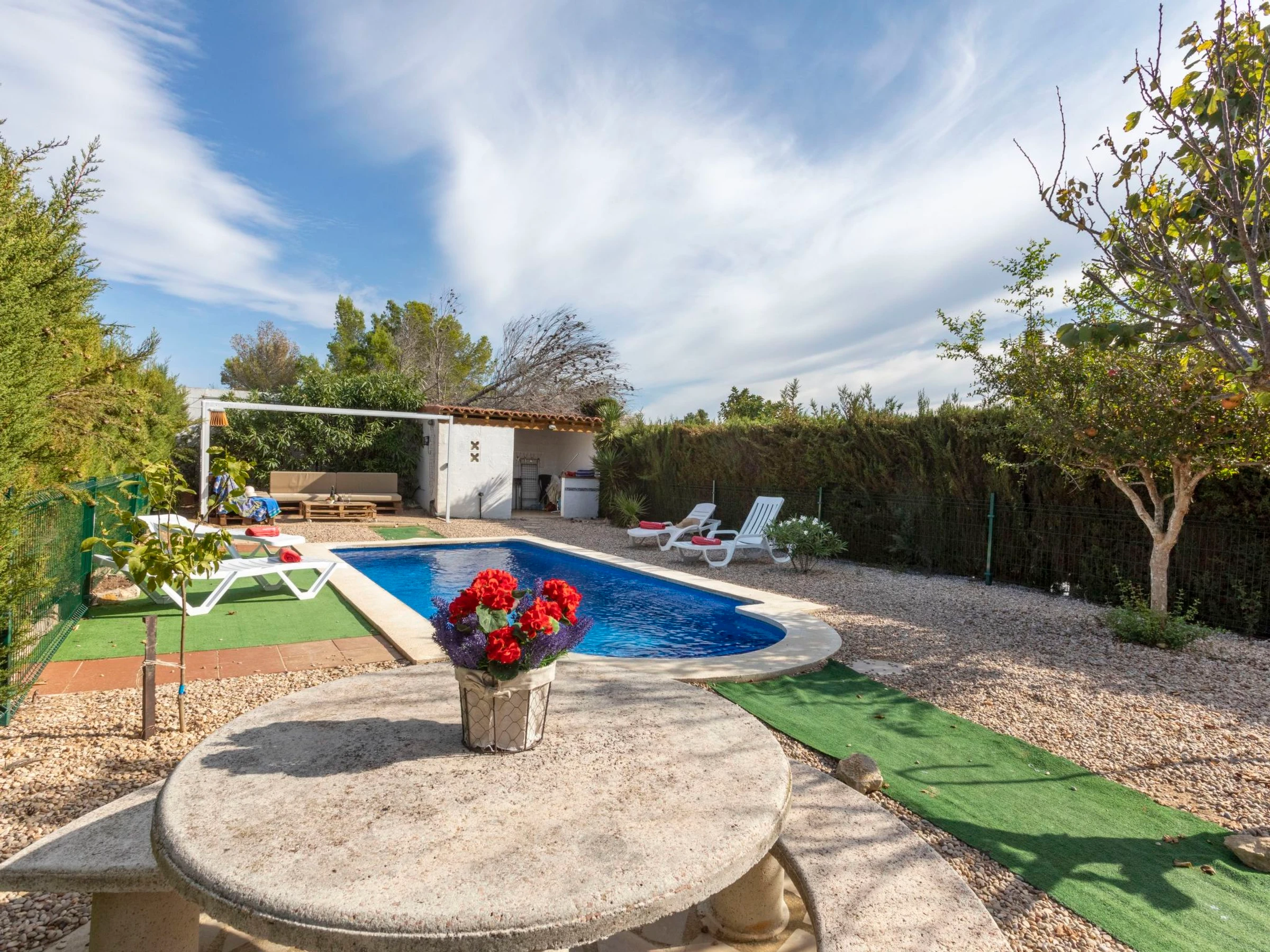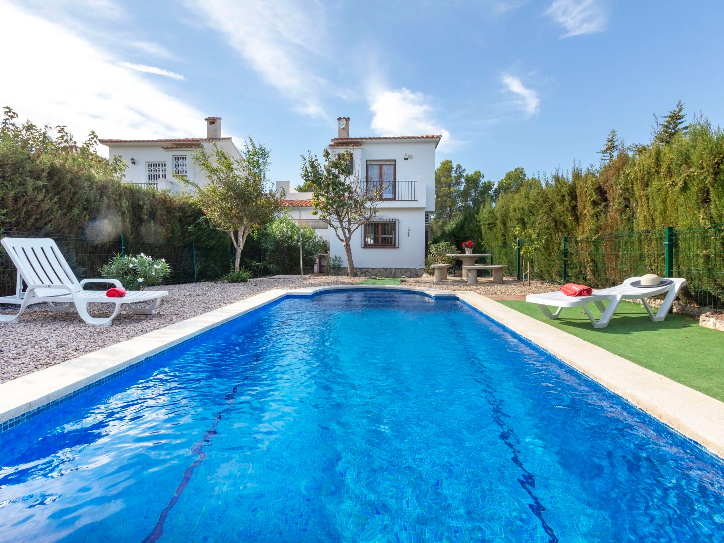 Las 3 Cales 3 km von l'Ametlla de Mar: Villa "Cambrils". 2 km vom Meer, 2 km vom Strand. Zur Alleinbenutzung: Grundstück (eingezäunt), Schwimmbad eckig (5 x 2 m, 80 - 190 cm tief, saisonale Verfügbarkeit: [hidden] - [hidden] mit Innentreppe. Aussendusche, Sitzplatz, Gartenmöbel, Grill, Poolpflege durch den Besitzer/Gärtner. Parkplatz beim Haus. Einkaufsgeschäft 1 km, Lebensmittelgeschäft 1 km, Restaurant 1 km, Bushaltestelle 800 m, Bahnstation "Ametlla de Mar" 3 km, Sandstrand 2 km, Kieselstrand 3 km, Badebucht 2 km, Strandbad 3 km. Sporthafen 3 km. Nahe gelegene Sehenswürdigkeiten: Parque Portaventura 48 km, parque Aquopolis 51 km, parque natura del Delta del Ebro 35 km, Tarragona 57 km, Reus 48 km, Barcelona 153 km. Bitte beachten: Fahrzeug empfohlen. Jugendgruppen nur auf Anfrage.