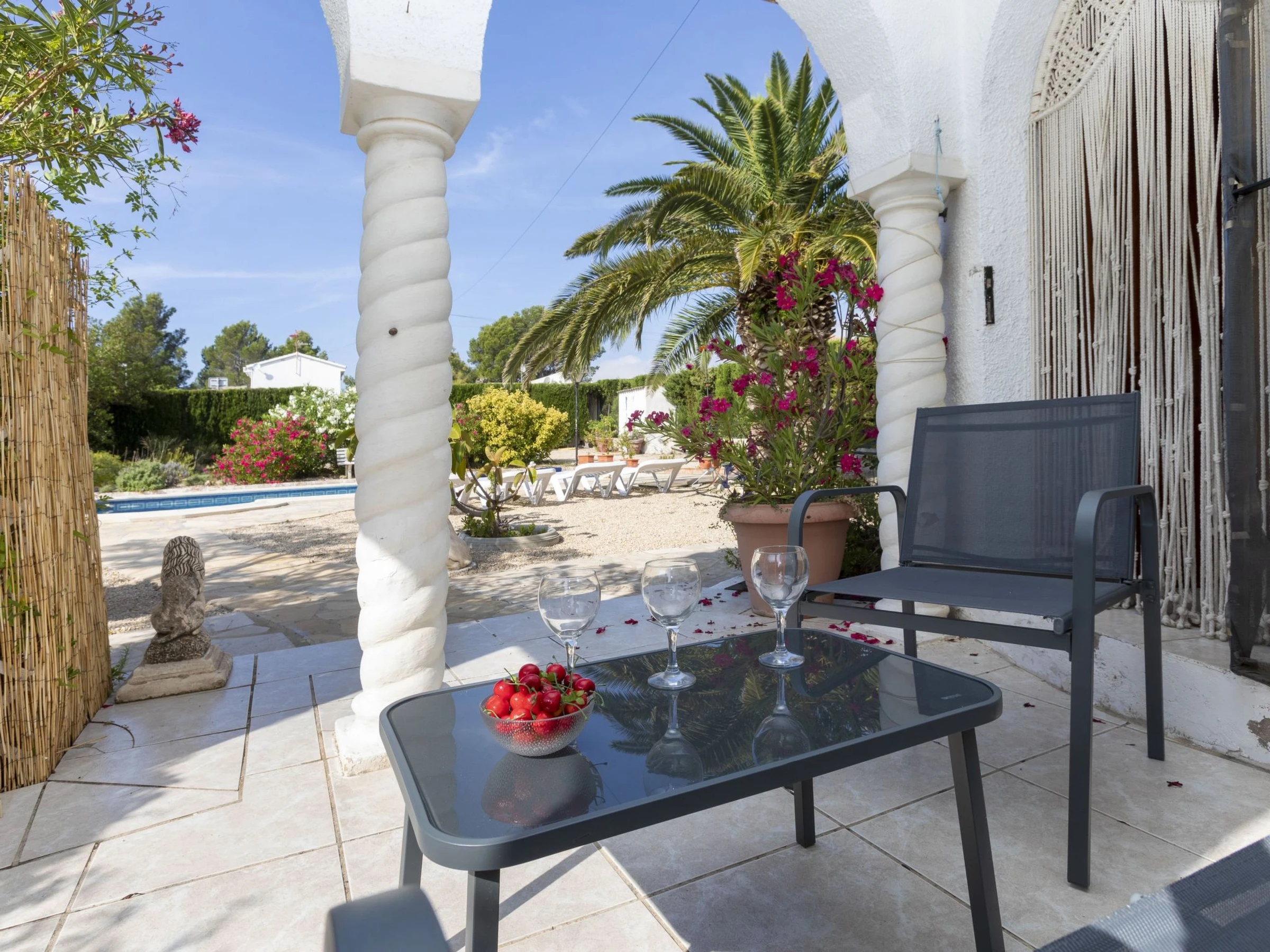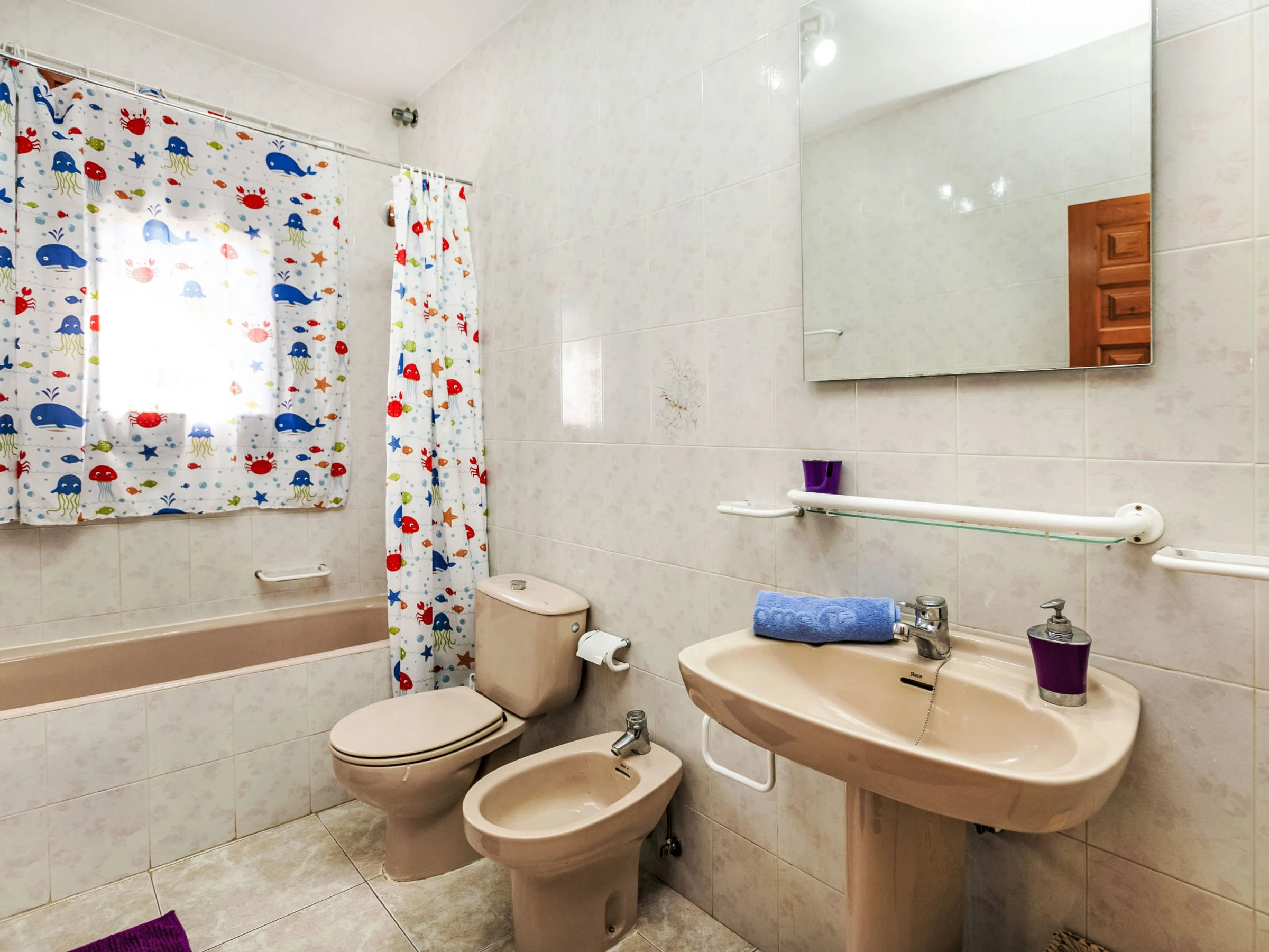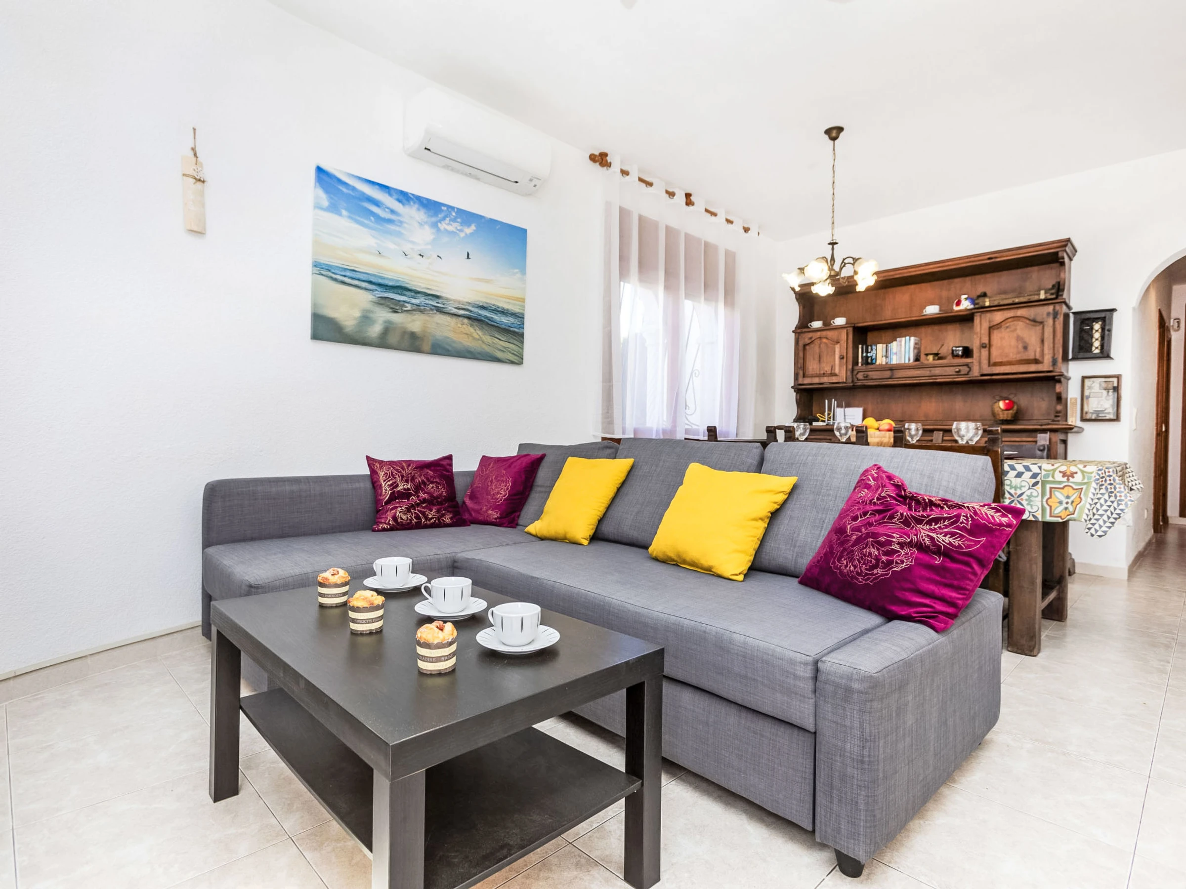 "Villa Barcelona", 4-Zimmer-Villa 130 m2. Komfortabel und gemütlich eingerichtet: Wohn-/Esszimmer mit Esstisch, Digital-TV, Klimaanlage und Ventilator. 1 Zimmer mit 1 franz. Bett (135 cm). 2 Zimmer, jedes Zimmer mit 2 Betten (90 cm). Durchgangszimmer mit Klimaanlage. Offene Küche (4 Kochplatten, Backofen, Geschirrspüler, Toaster, Wasserkocher, Mikrowelle, elektrische Kaffeemaschine). Bad/Bidet/WC, Dusche/WC. Klimaanlage, Boiler (120 Liter). Keine Heizmöglichkeit. Gartensitzplatz. Terrassenmöbel, Gartengrill. Zur Verfügung: Waschmaschine, Bügeleisen, Kinderhochstuhl, Babybett, Haartrockner. Internet (WLAN, gratis). Parkplatz beim Haus. [hidden] // Reg. Nr.: ESFCTU0000430200000783850000000000000[hidden]-049