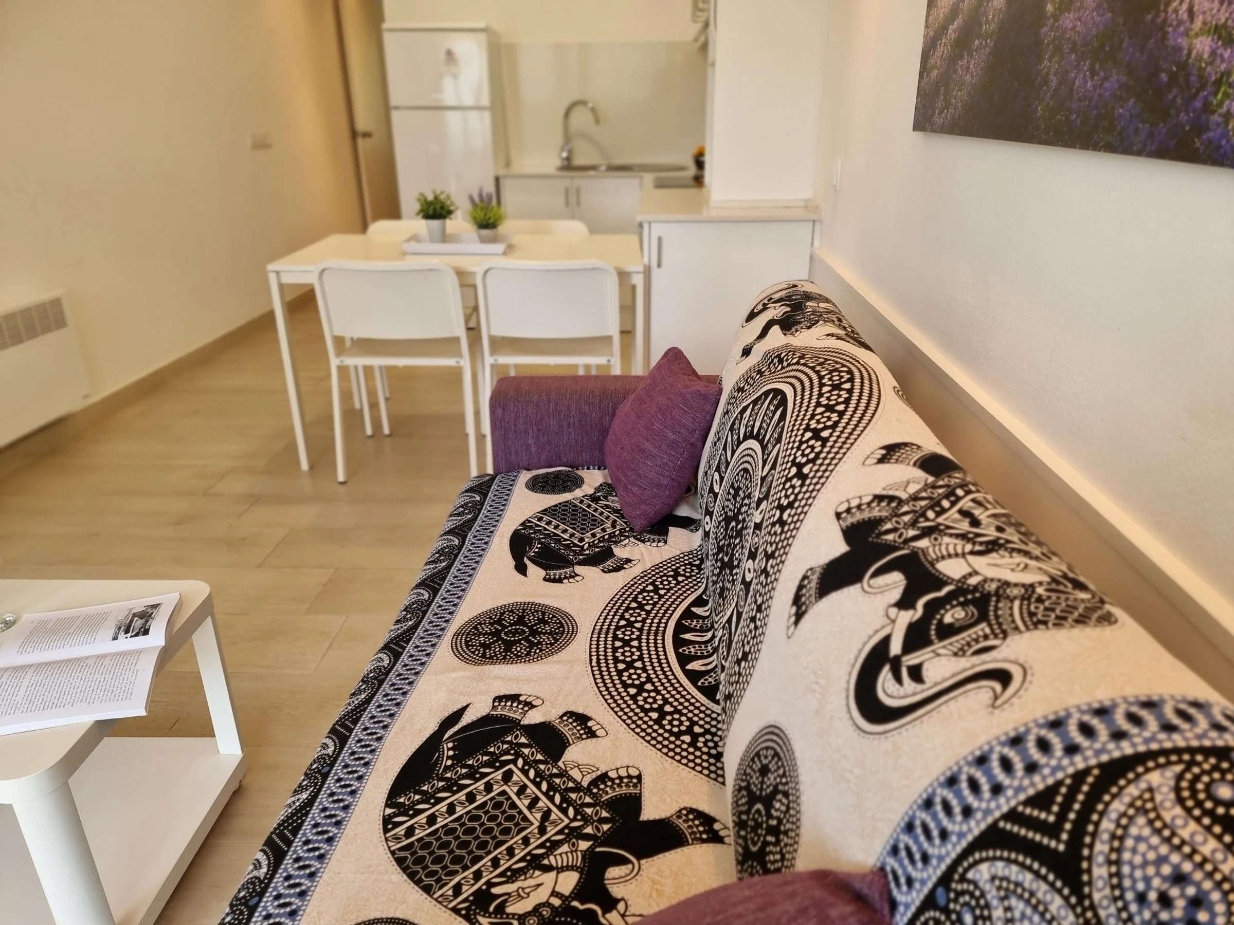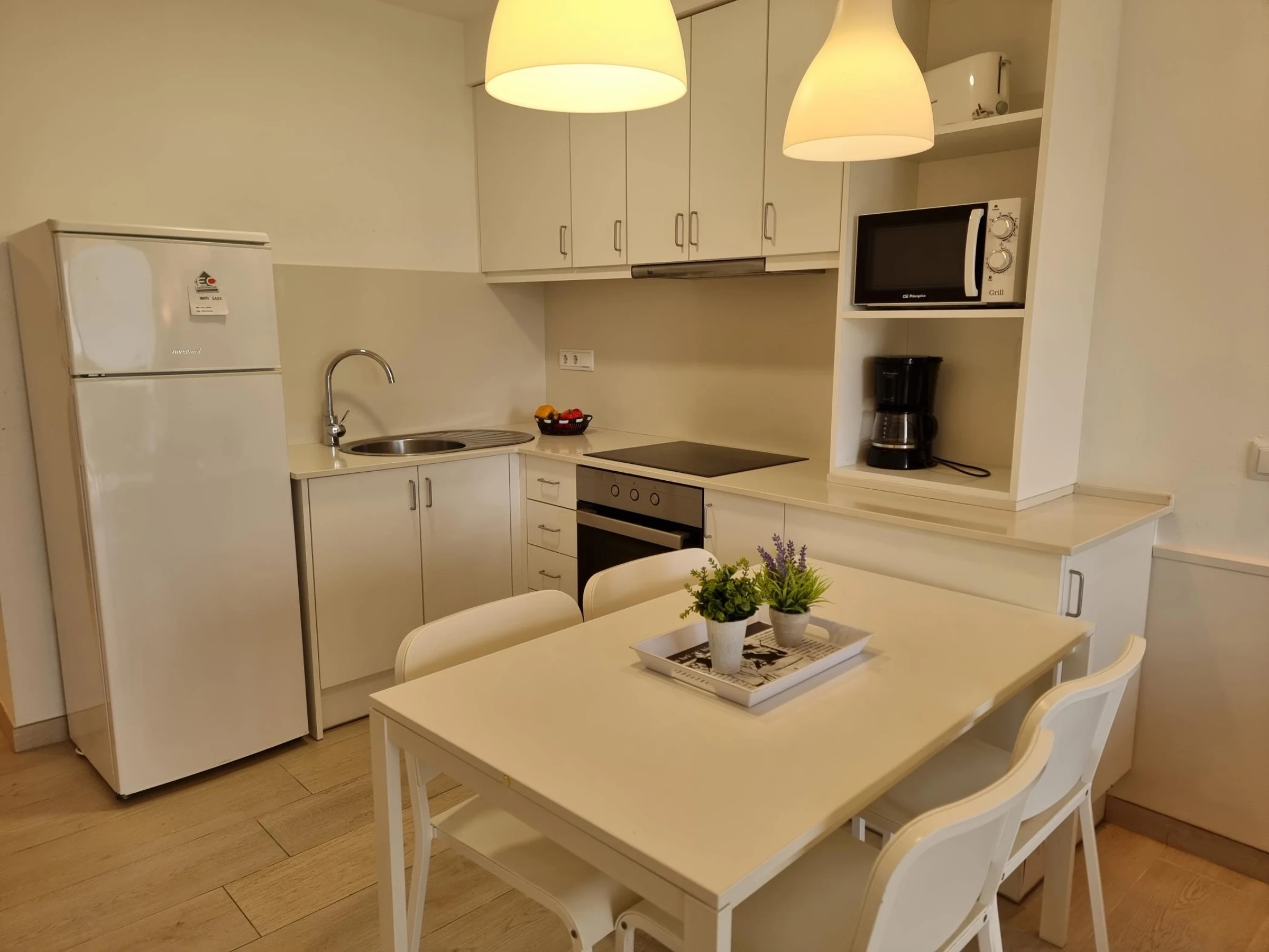 Das Apartment bietet einen geräumigen und hellen Wohnbereich zum Entspannen, ein Badezimmer und eine offene Küche mit Essbereich, die für die Zubereitung von Mahlzeiten – ob gemütliches Abendessen oder schnelles Mittagessen – bestens ausgestattet ist.