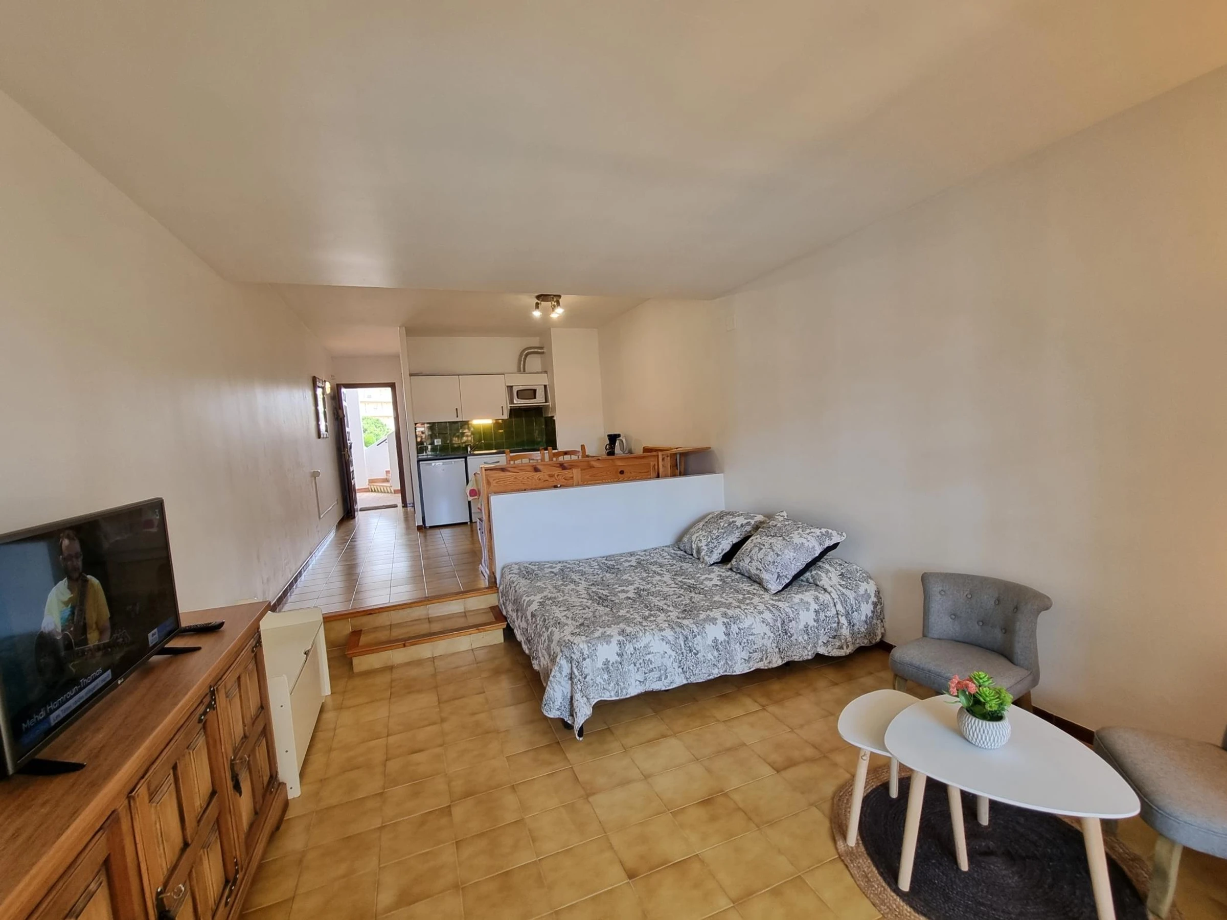 Dieses charmante Studio-Apartment in L'Escala liegt nur 300 Meter vom Strand entfernt und bietet ein Badezimmer, eine Wohnküche sowie einen komfortablen Wohnbereich zum Entspannen nach einem erlebnisreichen Tag. Von der Terrasse aus genießen Sie einen herrlichen Blick auf den Gemeinschaftspool – ideal für eine erfrischende Abkühlung zu jeder Tageszeit.