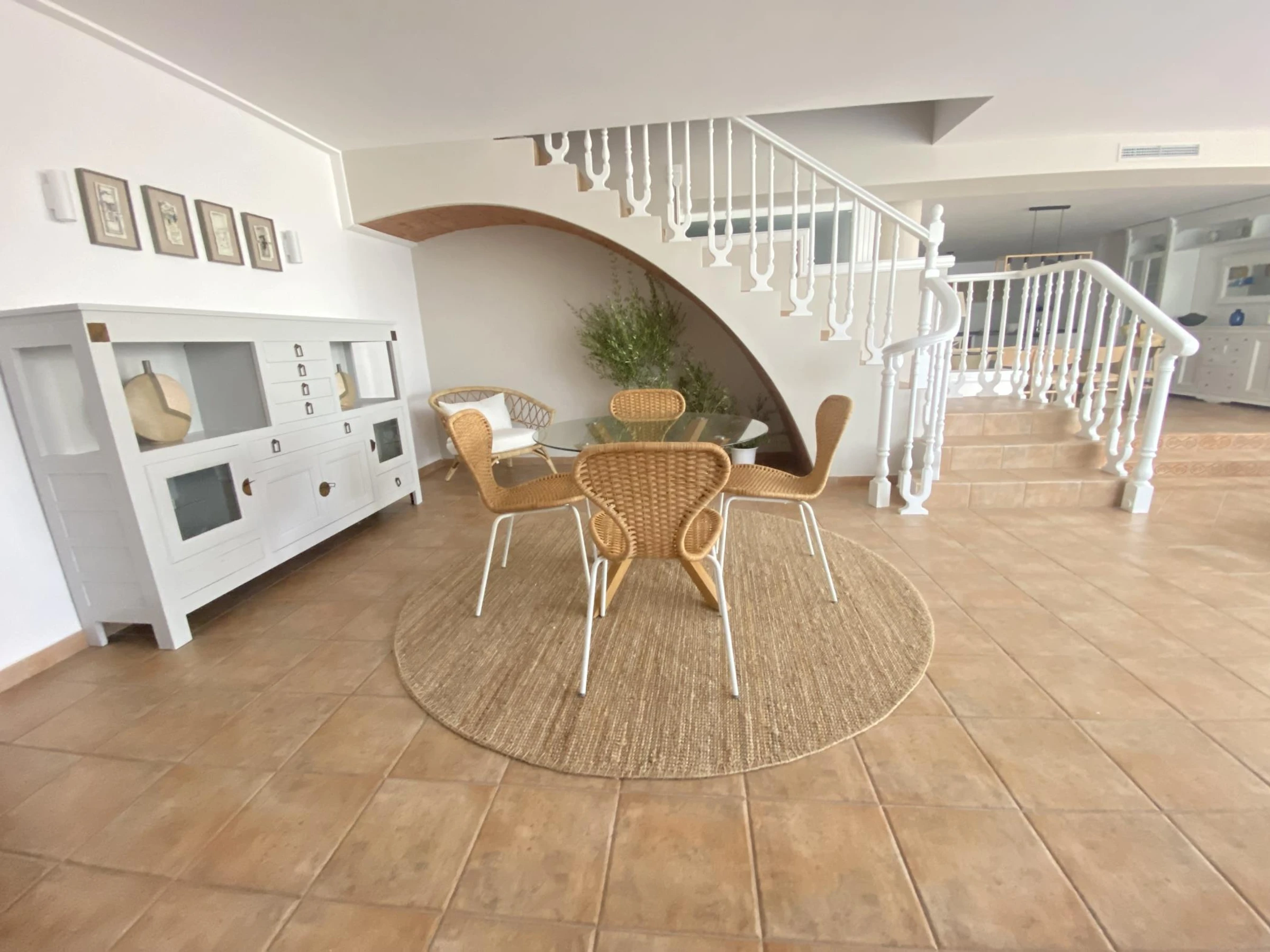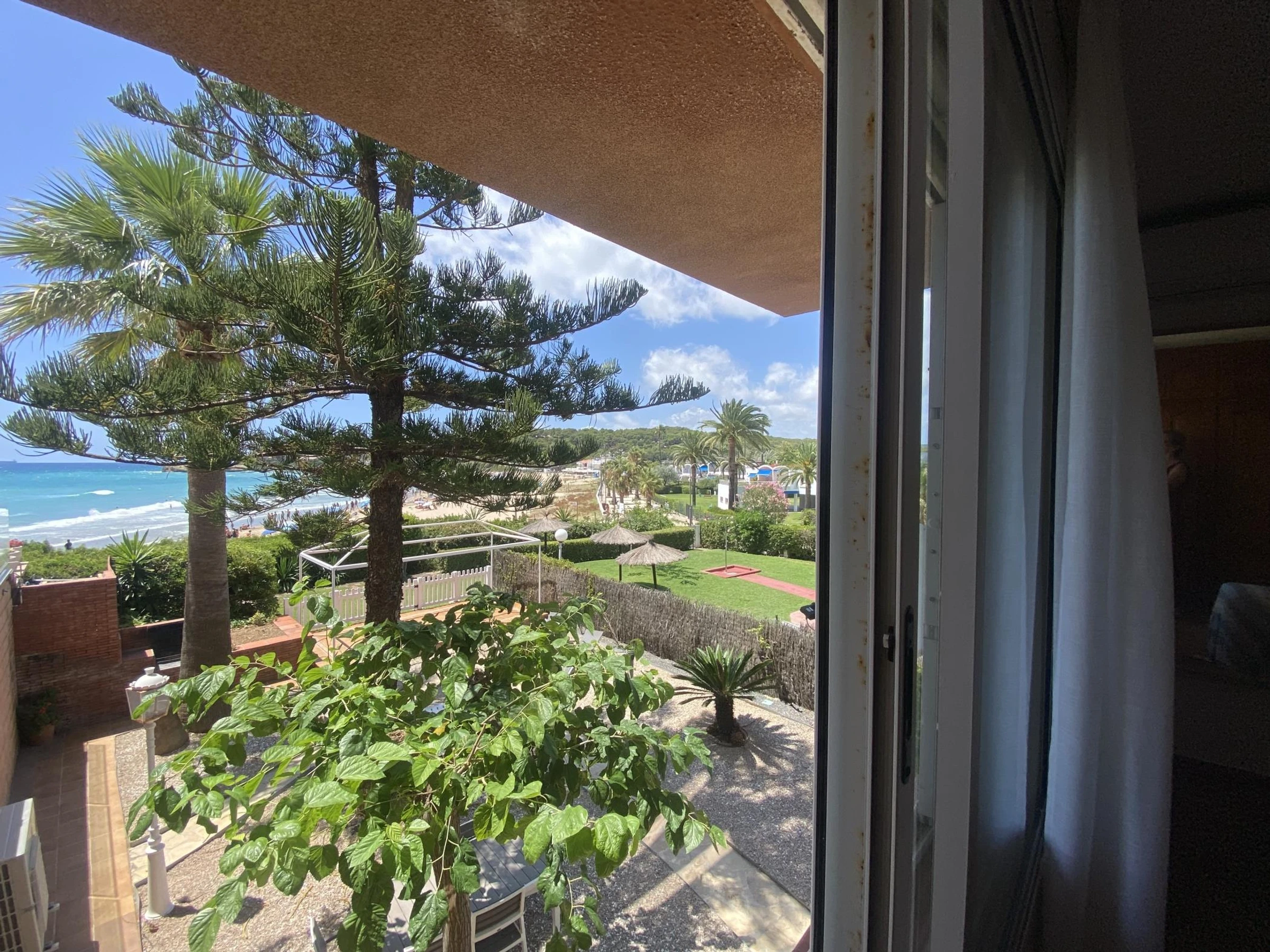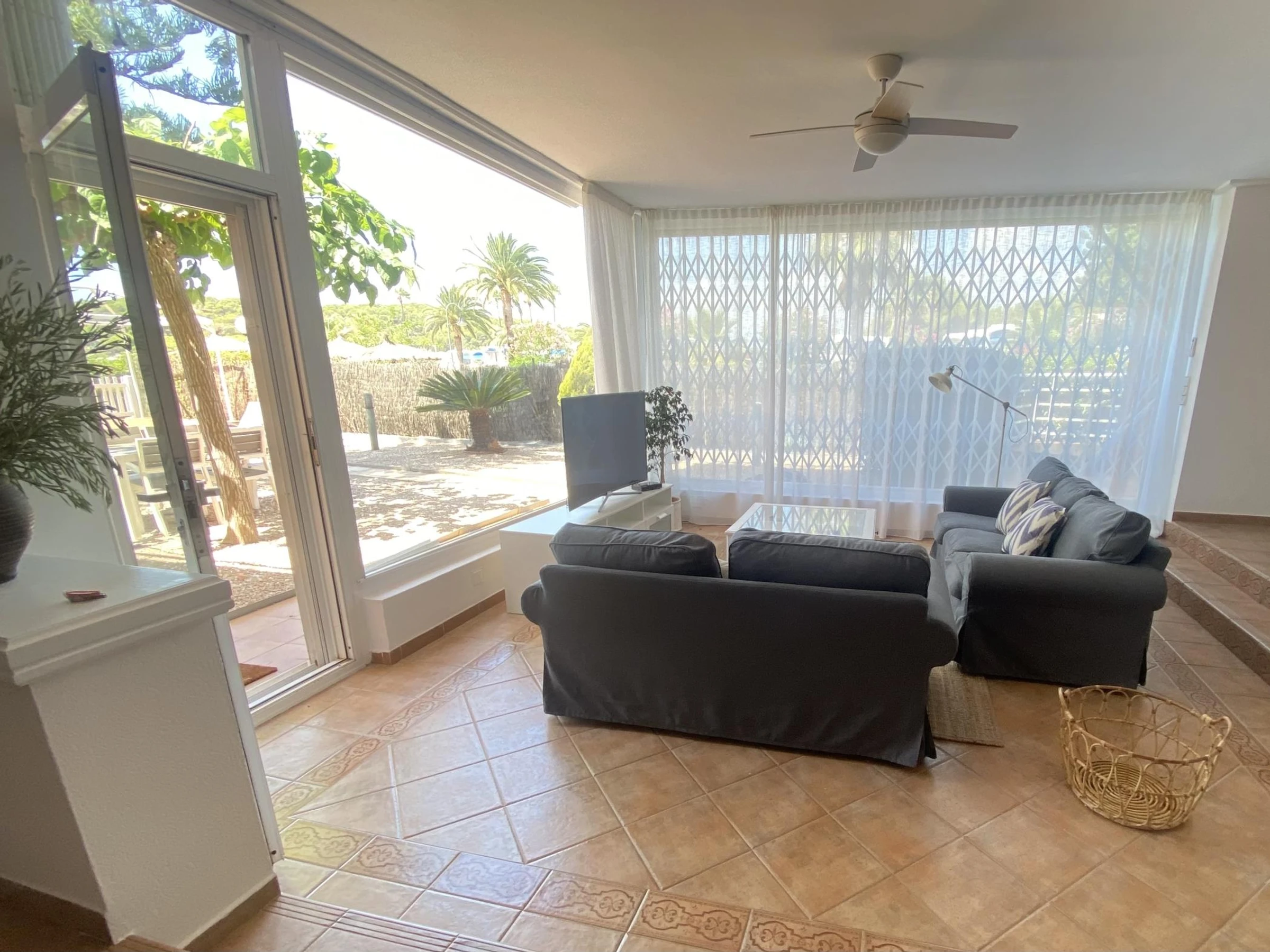 Prächtiges, komplett renoviertes Maisonette-Apartment in Strandlage mit direktem Zugang zum Strand La Mora vom Garten aus. Im Erdgeschoss befindet sich ein geräumiges Wohn-Esszimmer mit Panoramablick auf den Strand und Zugang zu einem privaten Garten mit Essbereich und Grill. Die große, voll ausgestattete offene Küche verfügt über eine Kochinsel für Mahlzeiten oder Frühstück. Ebenfalls im Erdgeschoss befinden sich eine Suite mit großem Badezimmer und ein zusätzliches WC. Im Obergeschoss erwarten Sie drei klimatisierte Schlafzimmer mit jeweils Meer- und Strandblick. Zwei Badezimmer mit Dusche befinden sich ebenfalls auf dieser Etage. Ein geräumiges Wohn-Esszimmer mit bequemen Sofas und Fernseher lädt zum Entspannen nach einem Tag am Strand ein. Das Apartment verfügt über eine große private Terrasse mit Sonnenliegen, Esstisch und Grill. Von hier aus gelangen Sie in den Gemeinschaftsbereich mit Rasenfläche und Swimmingpool. Der direkte Strandzugang macht dieses Apartment einzigartig und erfüllt selbst die höchsten Ansprüche. Zwei private Parkplätze für mittelgroße Autos stehen zur Verfügung. Das Apartment ist mit einer Alarmanlage und Bewegungsmeldern ausgestattet.