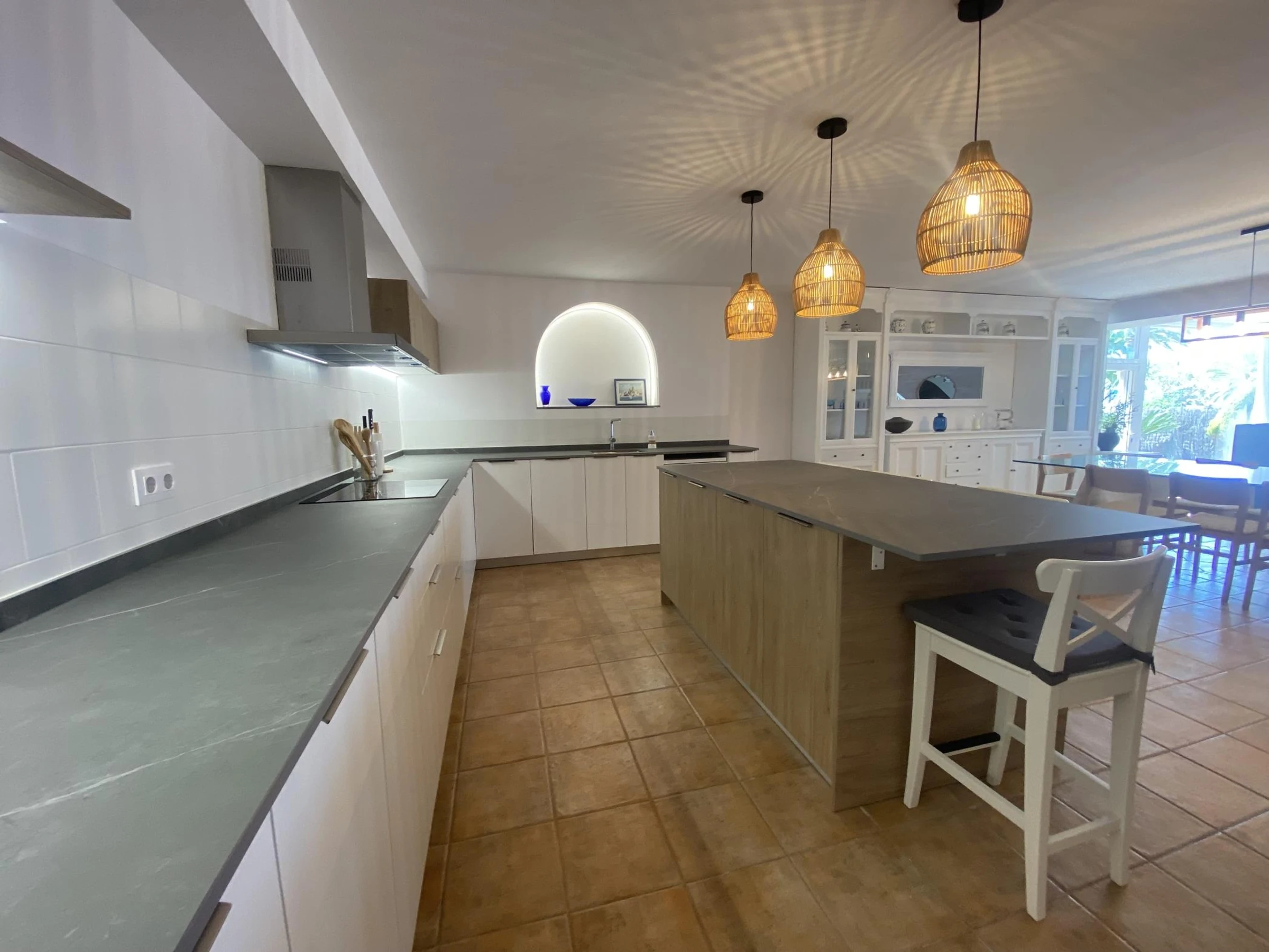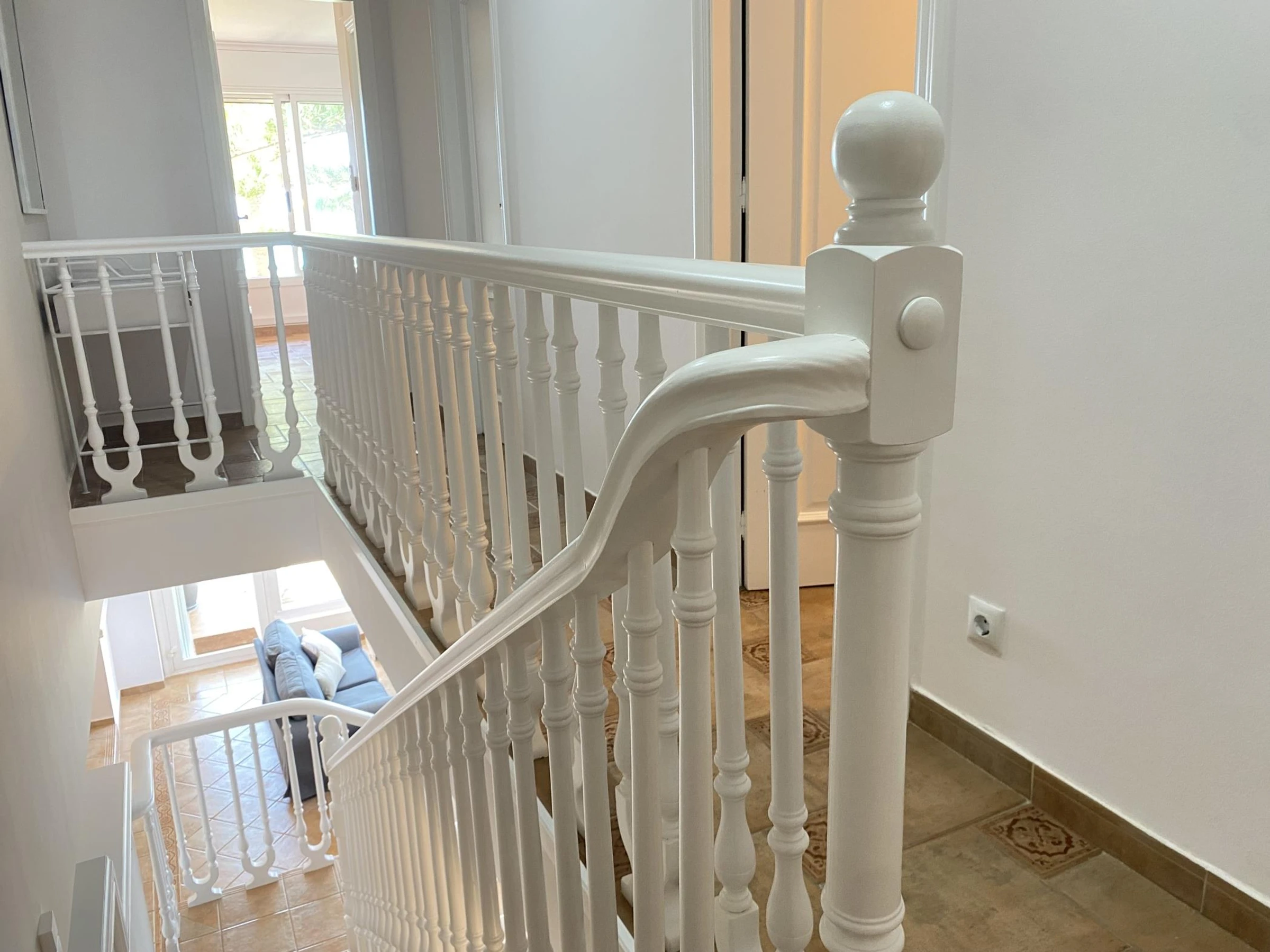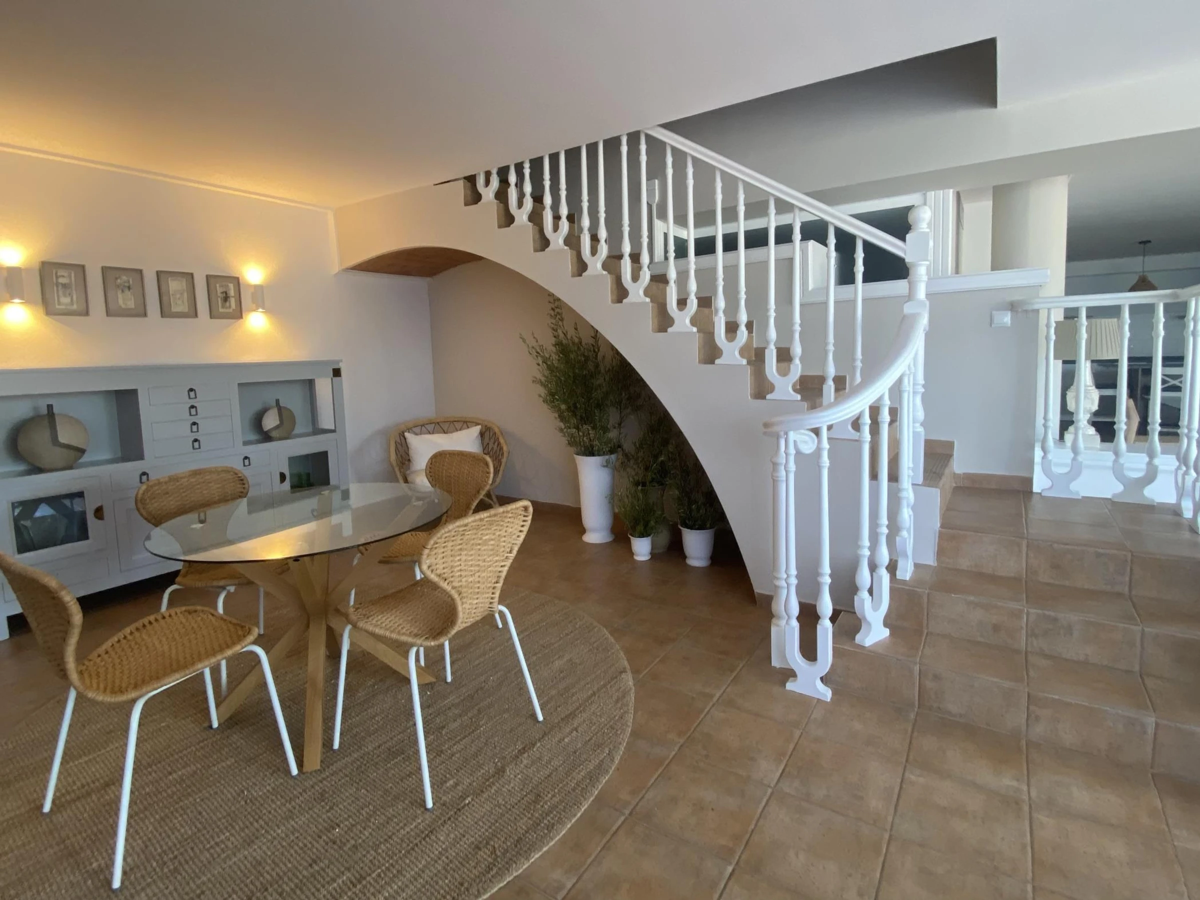 Prächtiges, komplett renoviertes Maisonette-Apartment in Strandlage mit direktem Zugang zum Strand La Mora vom Garten aus. Im Erdgeschoss befindet sich ein geräumiges Wohn-Esszimmer mit Panoramablick auf den Strand und Zugang zu einem privaten Garten mit Essbereich und Grill. Die große, voll ausgestattete offene Küche verfügt über eine Kochinsel für Mahlzeiten oder Frühstück. Ebenfalls im Erdgeschoss befinden sich eine Suite mit großem Badezimmer und ein zusätzliches WC. Im Obergeschoss erwarten Sie drei klimatisierte Schlafzimmer mit jeweils Meer- und Strandblick. Zwei Badezimmer mit Dusche befinden sich ebenfalls auf dieser Etage. Ein geräumiges Wohn-Esszimmer mit bequemen Sofas und Fernseher lädt zum Entspannen nach einem Tag am Strand ein. Das Apartment verfügt über eine große private Terrasse mit Sonnenliegen, Esstisch und Grill. Von hier aus gelangen Sie in den Gemeinschaftsbereich mit Rasenfläche und Swimmingpool. Der direkte Strandzugang macht dieses Apartment einzigartig und erfüllt selbst die höchsten Ansprüche. Zwei private Parkplätze für mittelgroße Autos stehen zur Verfügung. Das Apartment ist mit einer Alarmanlage und Bewegungsmeldern ausgestattet.