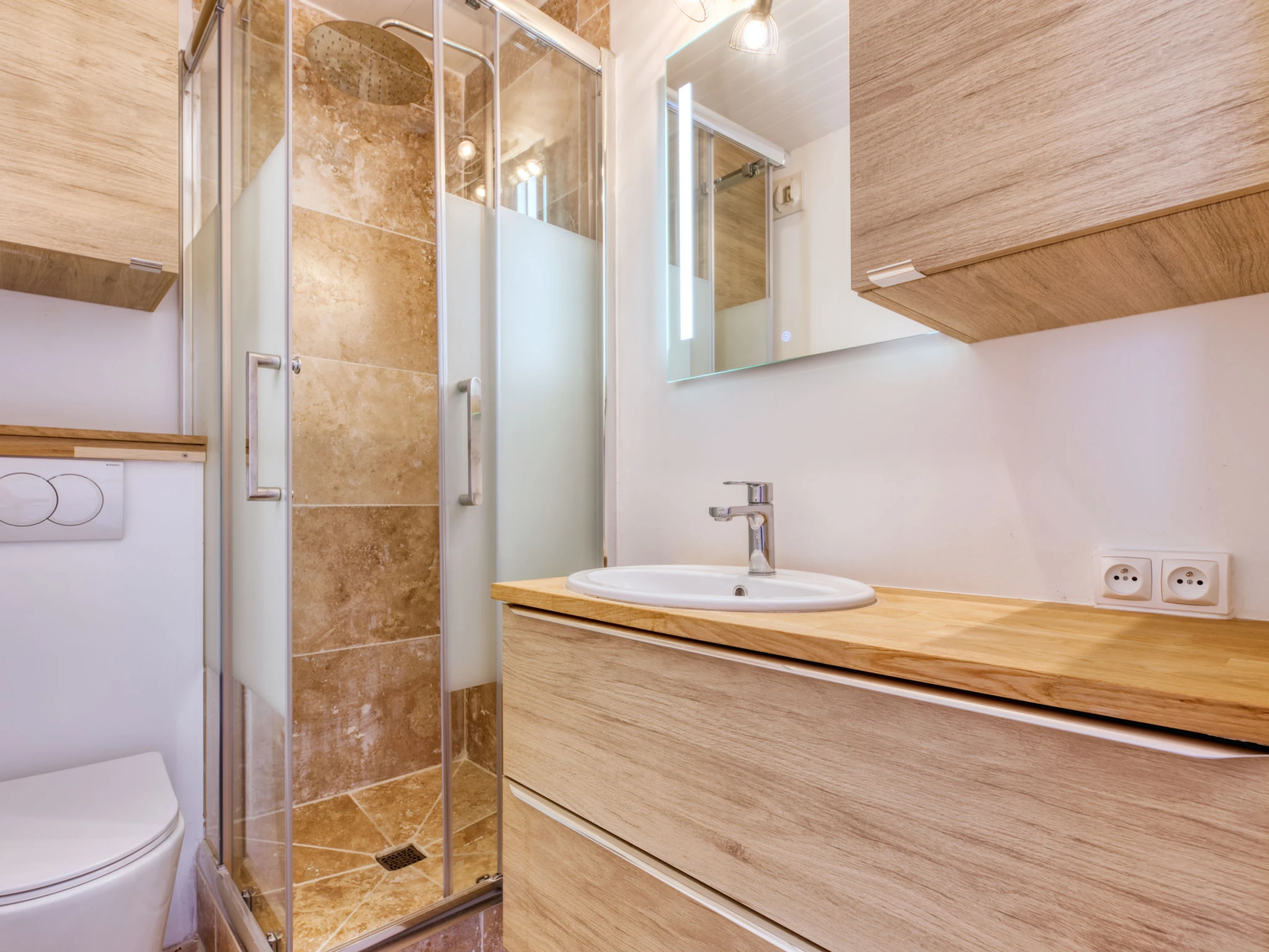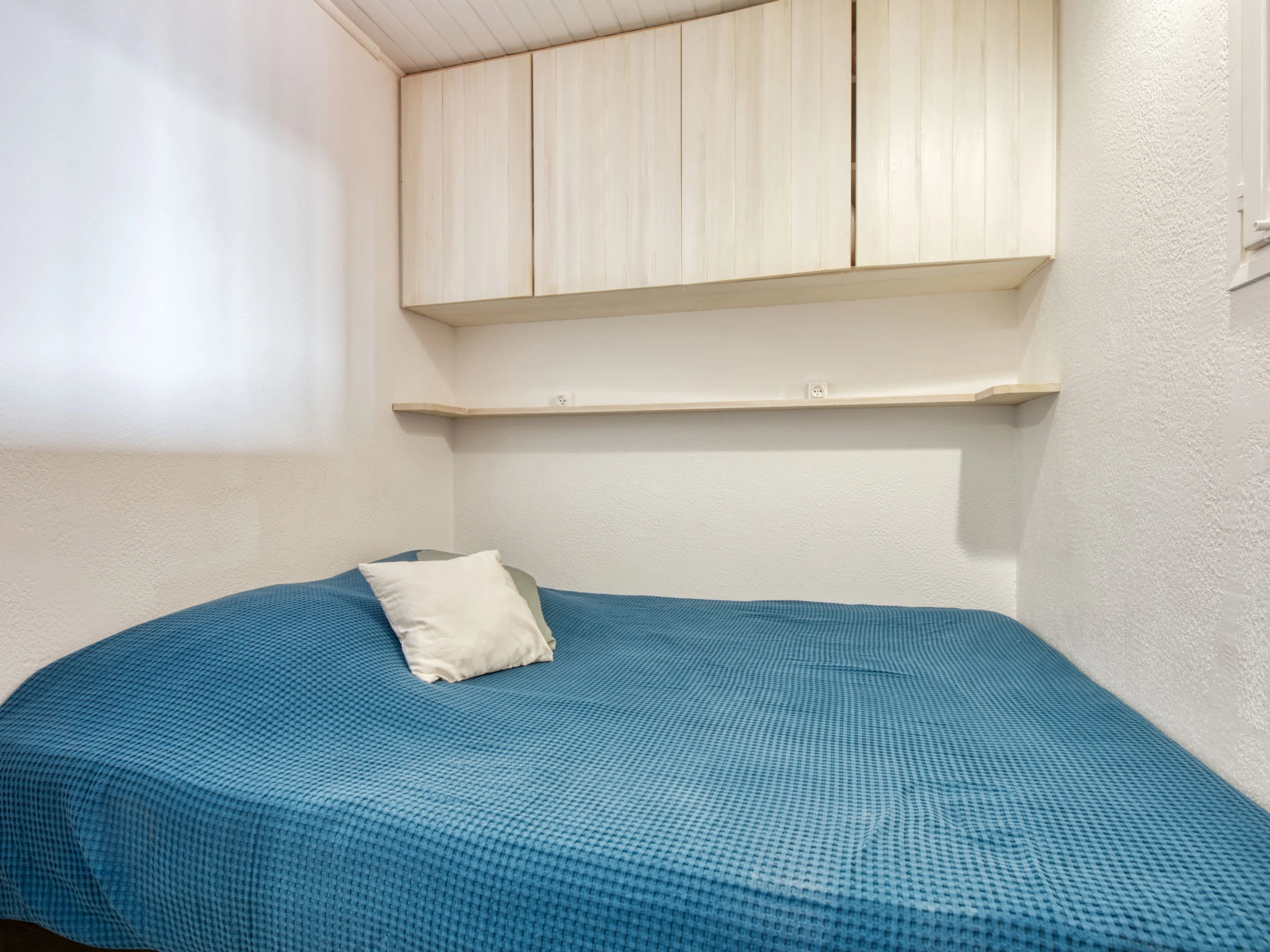 1-Zimmer-Wohnung 24 m2 im 2. Stock. Renoviert im Jahre 2019: Wohn-/Esszimmer mit 1 Doppeldiwanbett (140 cm, Länge 188 cm), TV. Ausgang zum Balkon. Schlafnische mit 1 franz. Bett (160 cm, Länge 200 cm). Kochnische (Geschirrspüler, 2 Glaskeramikplatten, elektrische Kaffeemaschine, Kapseln für die Kaffeemaschine (Nespresso) extra, Kombinationsmikrowelle) mit Bar. Dusche/WC. E-Heizung. Balkon 5 m2, Westlage. Balkonmöbel. Herrliche Sicht auf das Meer. Zur Verfügung: Internet (Wireless LAN, extra). Parkplatz Nr. 24. Bitte beachten: für Kleinkinder nicht geeignet. Nichtraucher-Unterkunft. Rauchmelder. Anstelle eines abgeschlossenen Schlafzimmers befinden sich manche Schlafplätze in einem offenen Bereich (Galerie, Nische etc.).