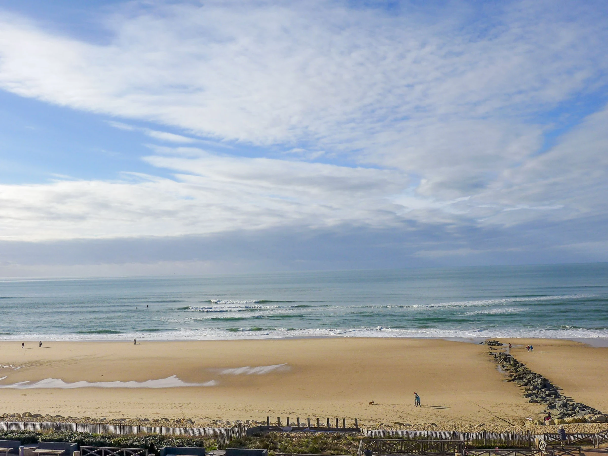 Lacanau Ocean: Residenz "Primavéra", auf 4 Stockwerken. Im Ortszentrum von Lacanau-Océan, zentrale, belebte Lage, 50 m vom Meer, 6 km vom See, 50 m vom Strand, Strasse zu überqueren. In der Anlage: Fahrstuhl. Einkaufsgeschäft, Supermarkt 150 m, Restaurant, Bar 50 m, Zentrum zu Fuss in 1 Minuten erreichbar, Bushaltestelle "Salle l'Escoure Océan" 500 m, Sandstrand 50 m. Golfplatz (18 Loch) 4 km, Surfschule 200 m, Tennis 3 km, Reitstall 4 km, Radweg, Angelmöglichkeit 6 km. Nahe gelegene Sehenswürdigkeiten: Bordeaux 60 km, Saint Emilion 85 km, Dune du Pyla 80 km. Wandergebiete: Vélodyssée 500 m.