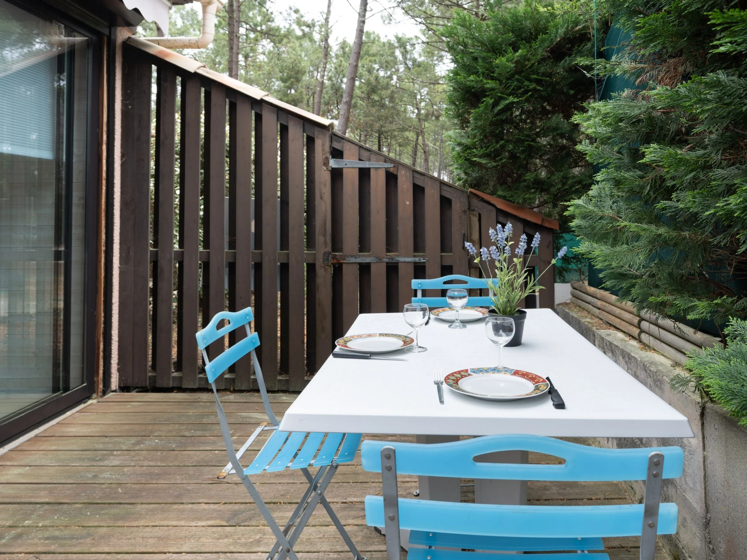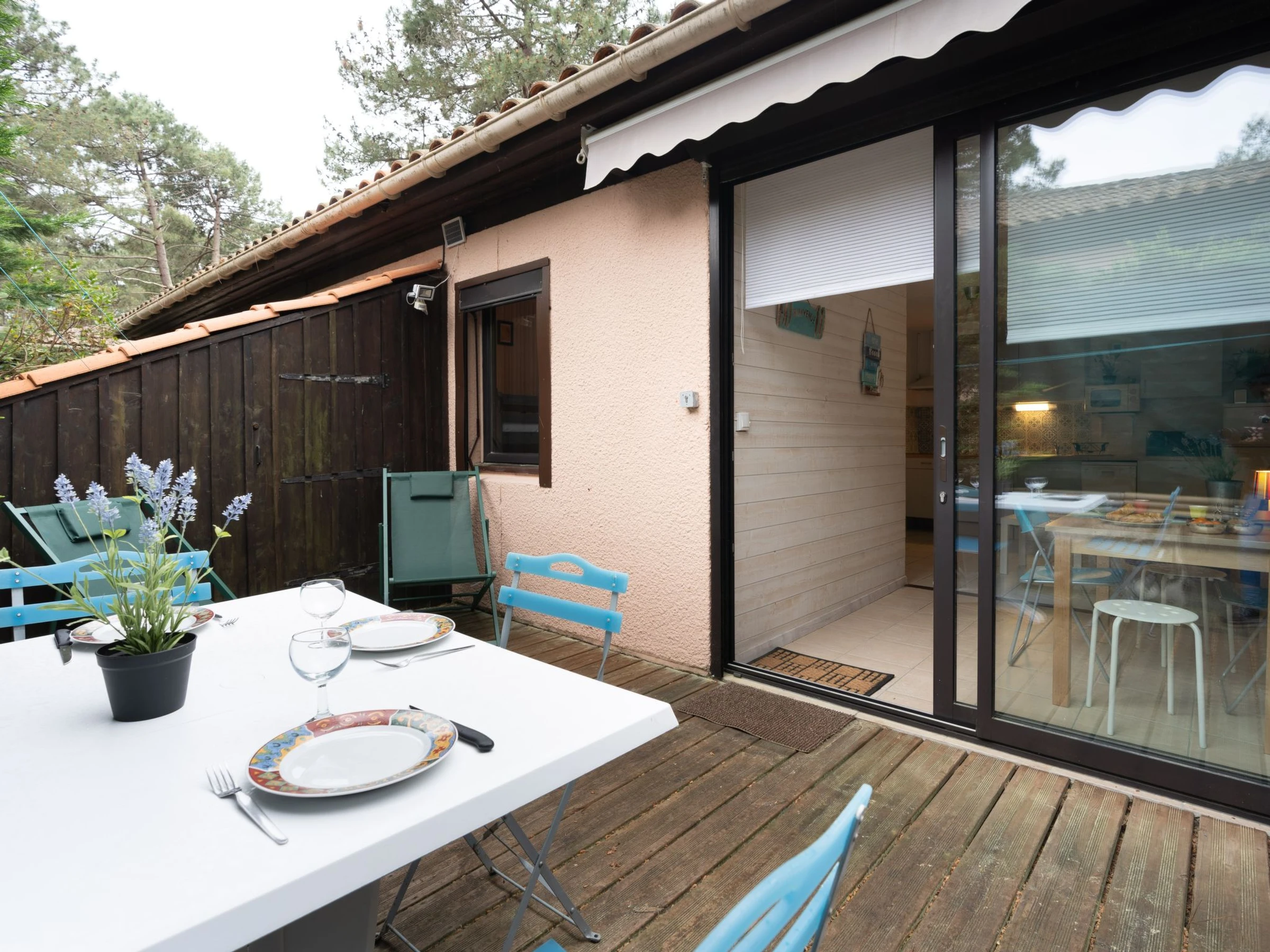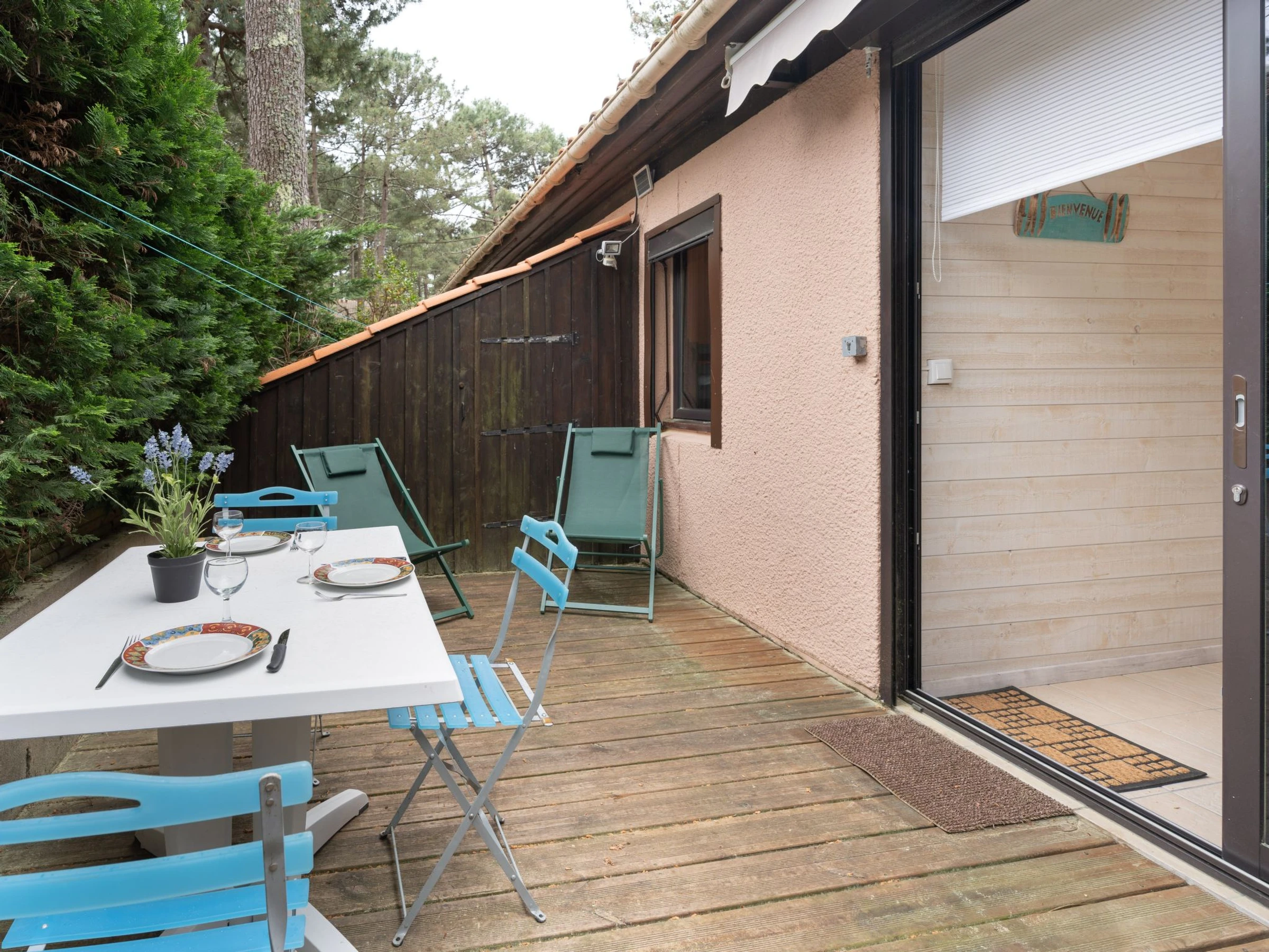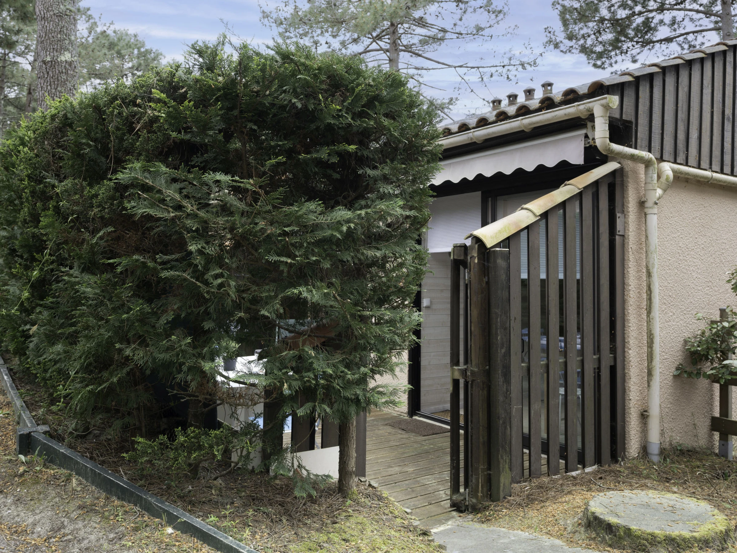Residenz "Les Pins". Im Ortsteil Domaine de l'Aubarède, am Ortsrand, 1.7 km vom Zentrum von de Lacanau Océan, 2 km vom Meer, 6 km vom See, im Wald. Zur Mitbenutzung: Kinderspielplatz, Parkplatz. Einkaufsgeschäft 1.7 km, Restaurant 1.7 km, Zentrum zu Fuss in 12 Minuten erreichbar, Bushaltestelle "Marie Curie" 1.2 km. Golfplatz (18 Loch) 2 km, Tennis 1.5 km, Reitstall 3 km, Radweg 100 m, Kinderspielplatz 20 m. Nahe gelegene Sehenswürdigkeiten: Bordeaux 60 km, Dune du Pyla 70 km, Saint Emilion 70 km.