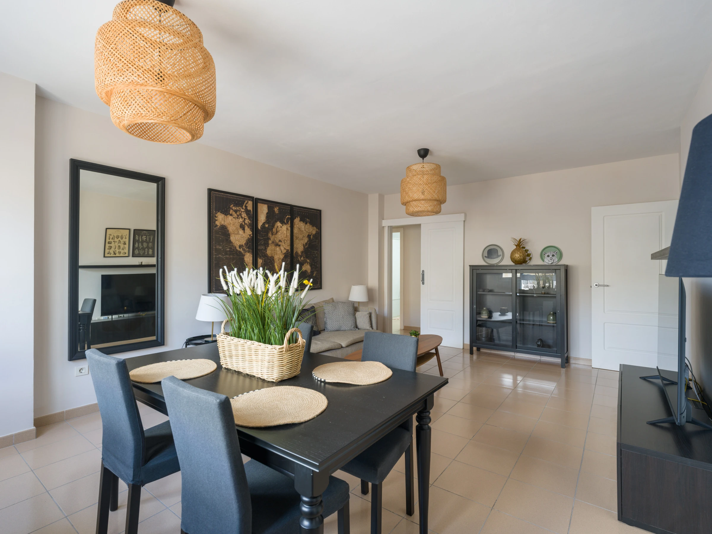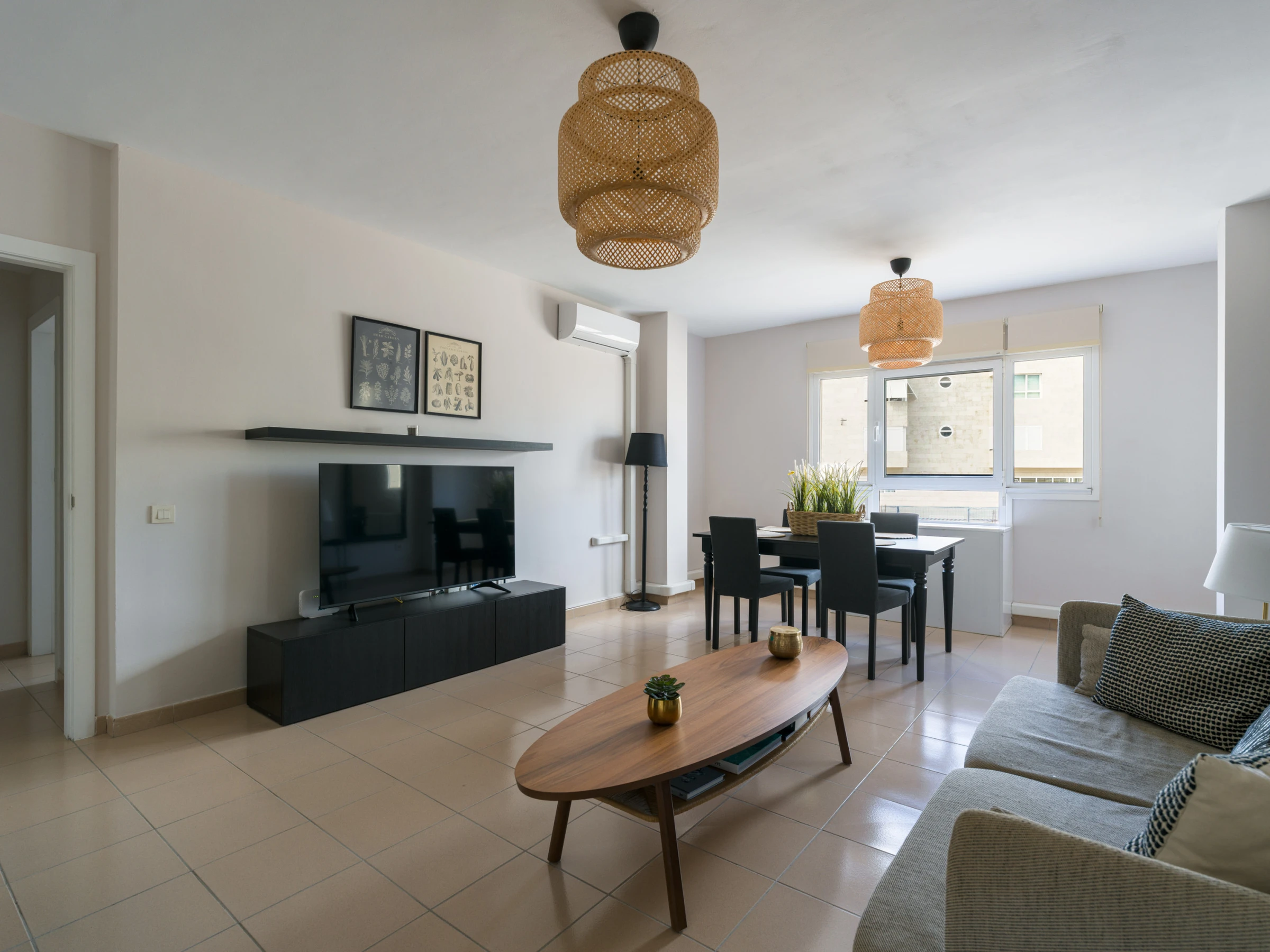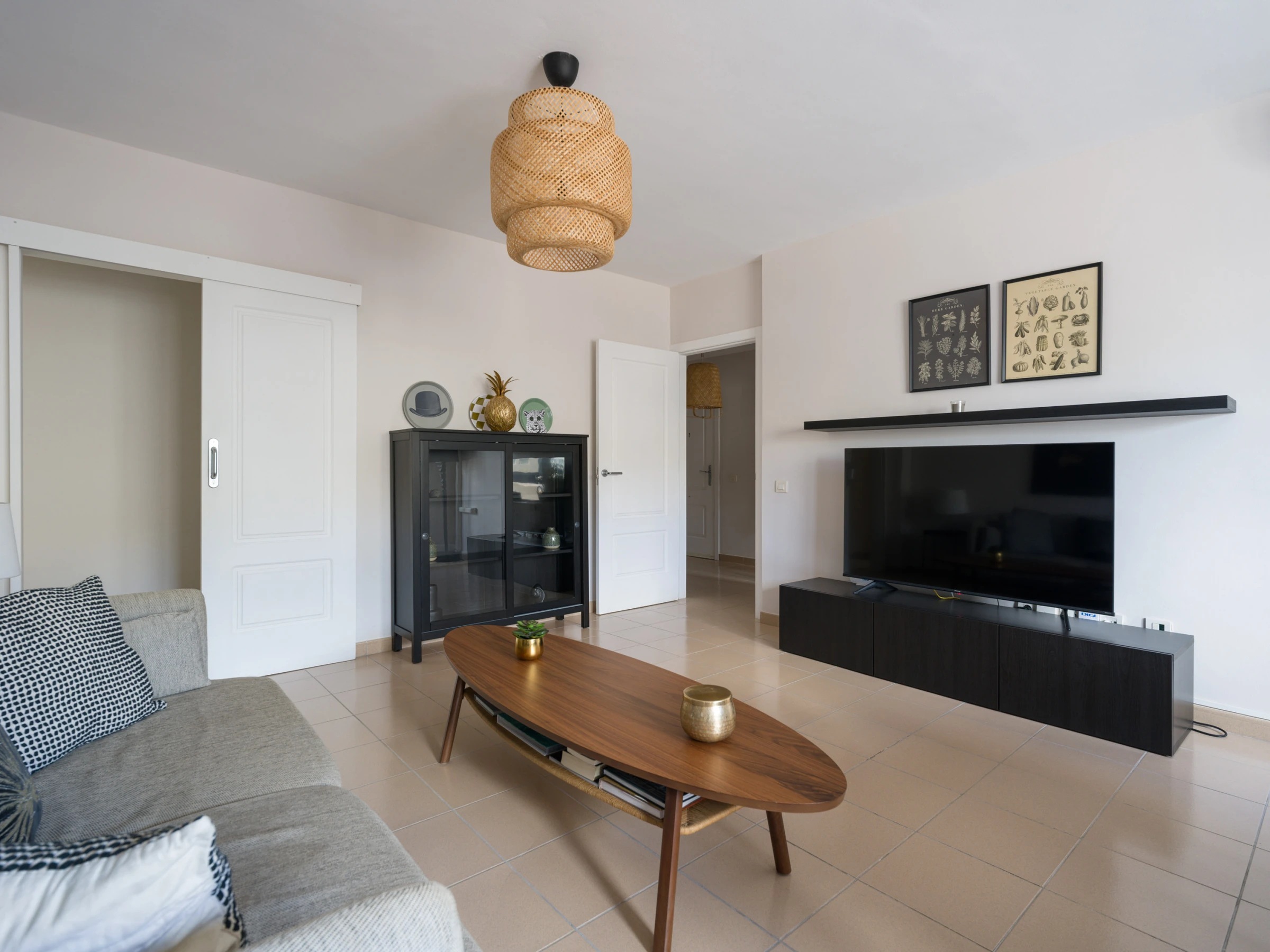 Der Salon ist für Komfort konzipiert, mit einer Sitzecke mit Sofa, HD-Smart-TV und Unterhaltungsbereich. Die Verdunkelungsvorhänge gewährleisten Privatsphäre und optimale Erholung. Die Ferienwohnung bietet zusätzlich Bügeleisen und Radio für mehr Komfort.