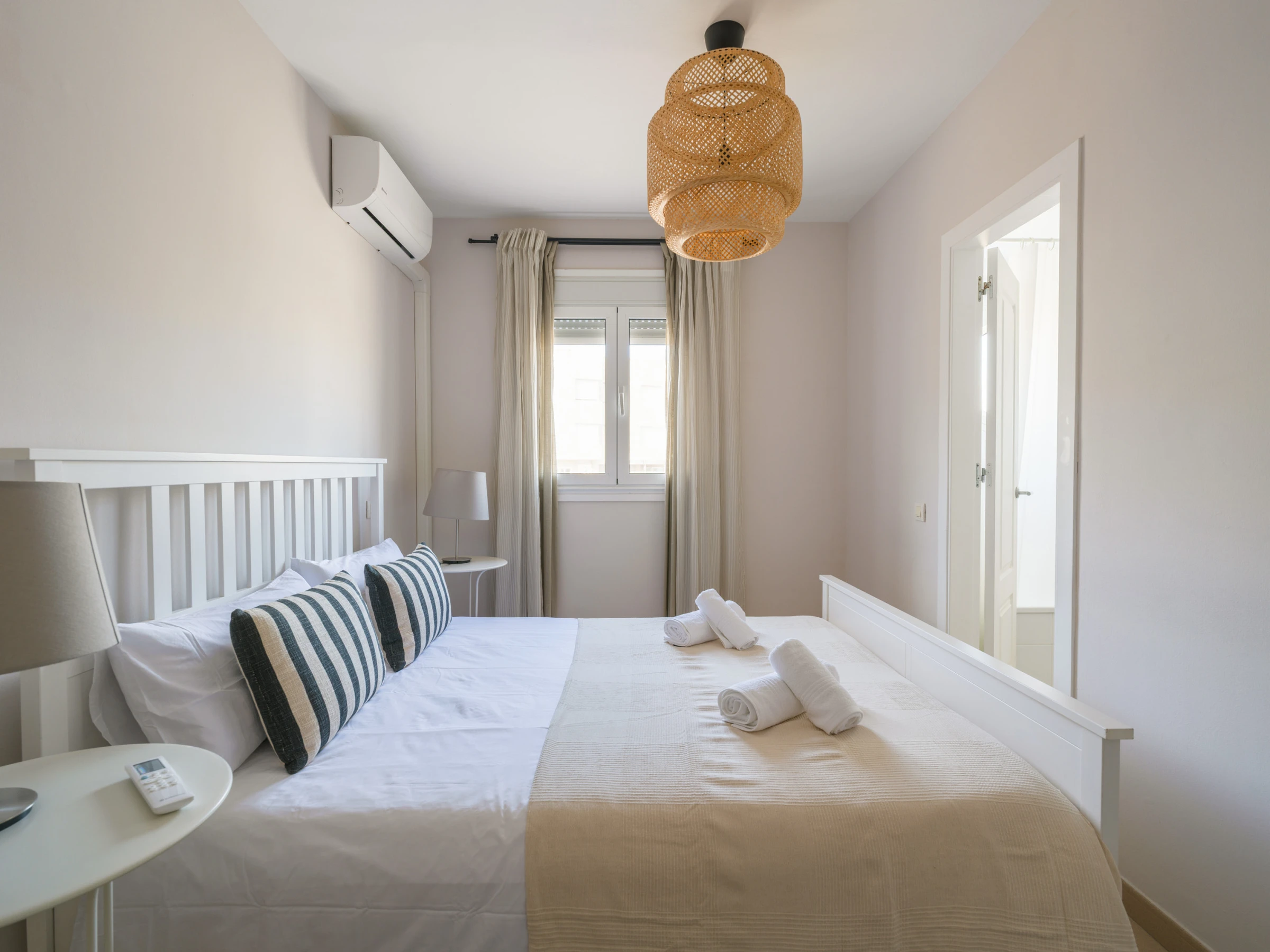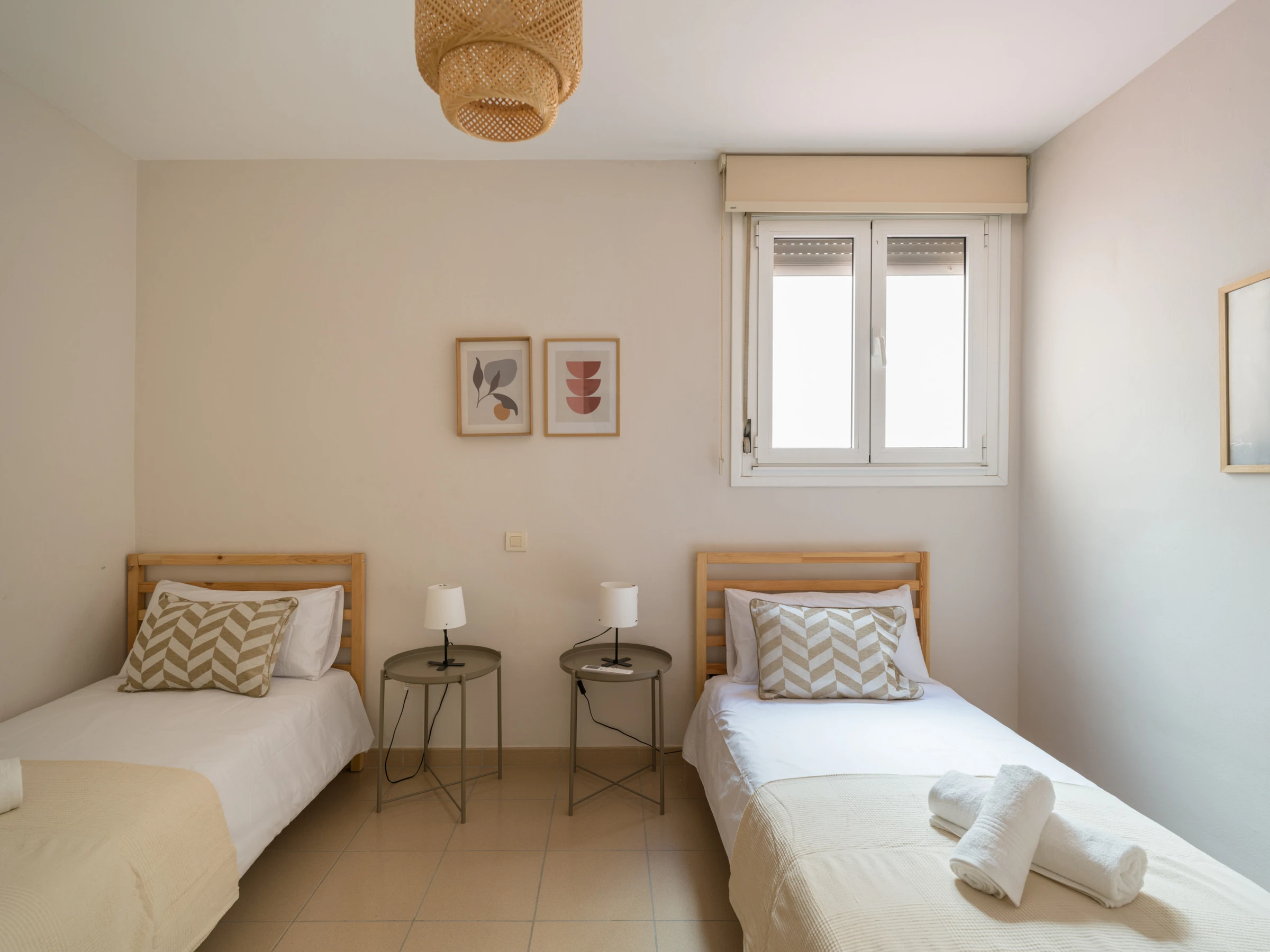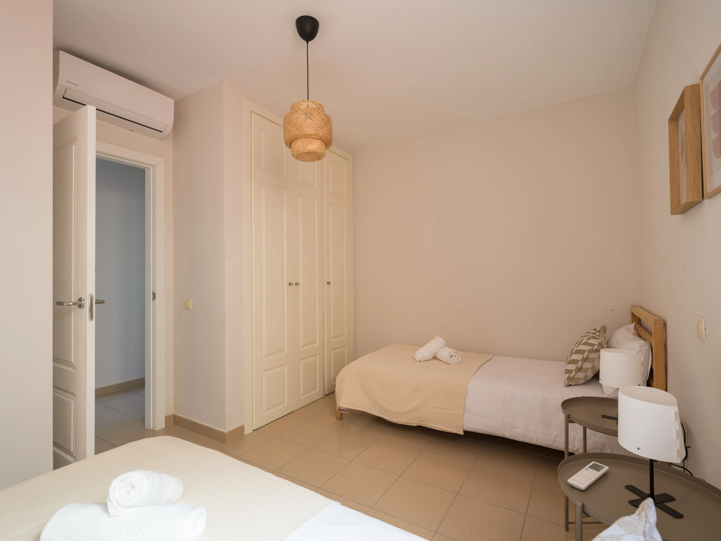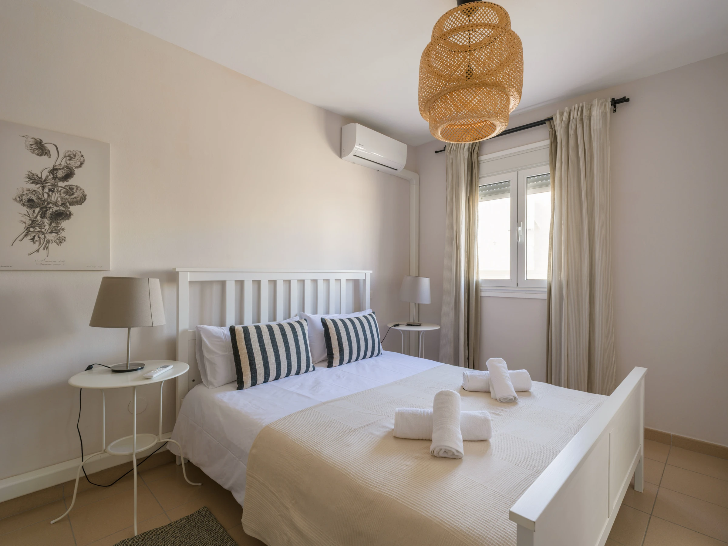 Die Unterkunft verfügt über zwei gut ausgestattete Schlafzimmer: ein Hauptschlafzimmer mit einem Doppelbett und ein weiteres mit zwei Einzelbetten, die einen komfortablen Schlaf für alle Gäste gewährleisten. Die Aufteilung ermöglicht einen flexiblen und angenehmen Aufenthalt.