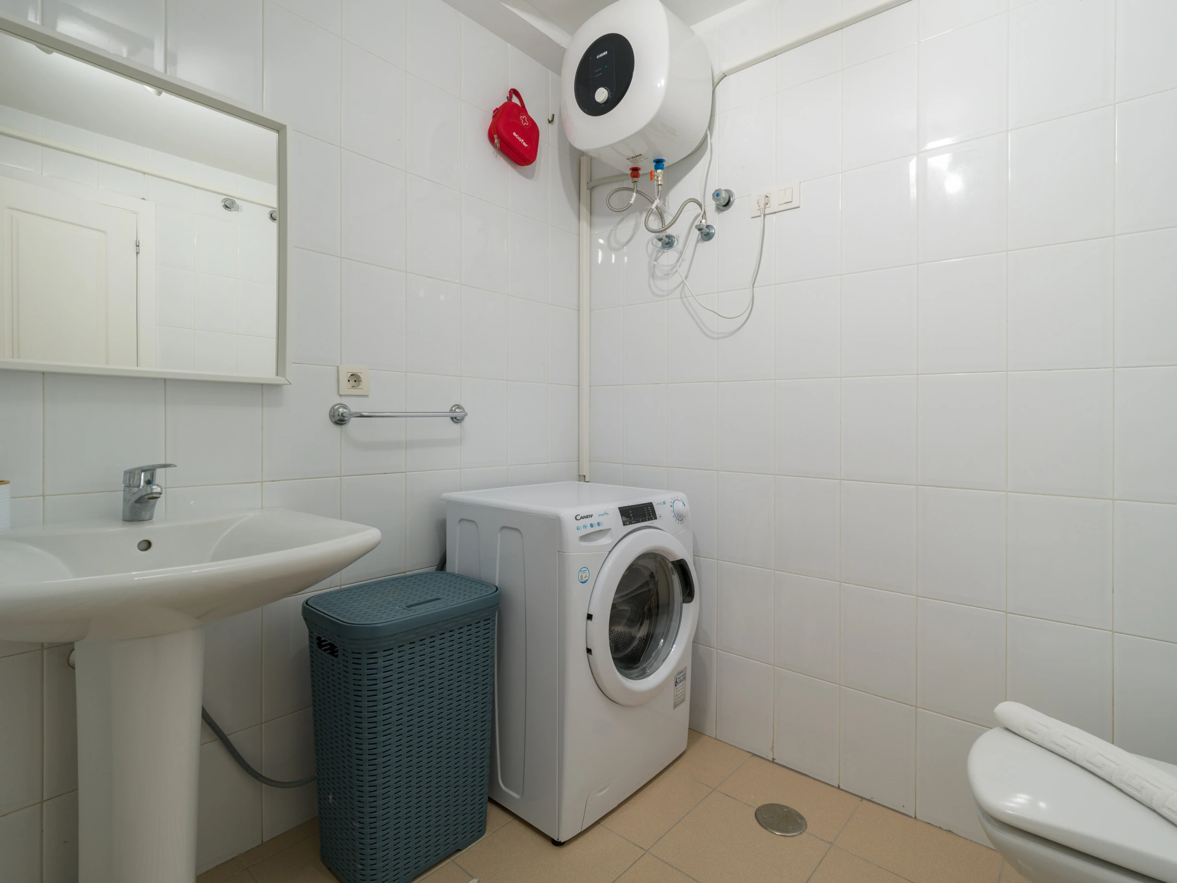 Die Küche ist komplett mit modernen Haushaltsgeräten ausgestattet, einschließlich Kühlschrank, Gefrierschrank, Waschmaschine, Backofen, Mikrowelle, Kaffeemaschine, Toaster und Wasserkocher. Darüber hinaus verfügt sie über alle notwendigen Küchenutensilien, um während Ihres Aufenthalts köstliche Mahlzeiten zuzubereiten.
