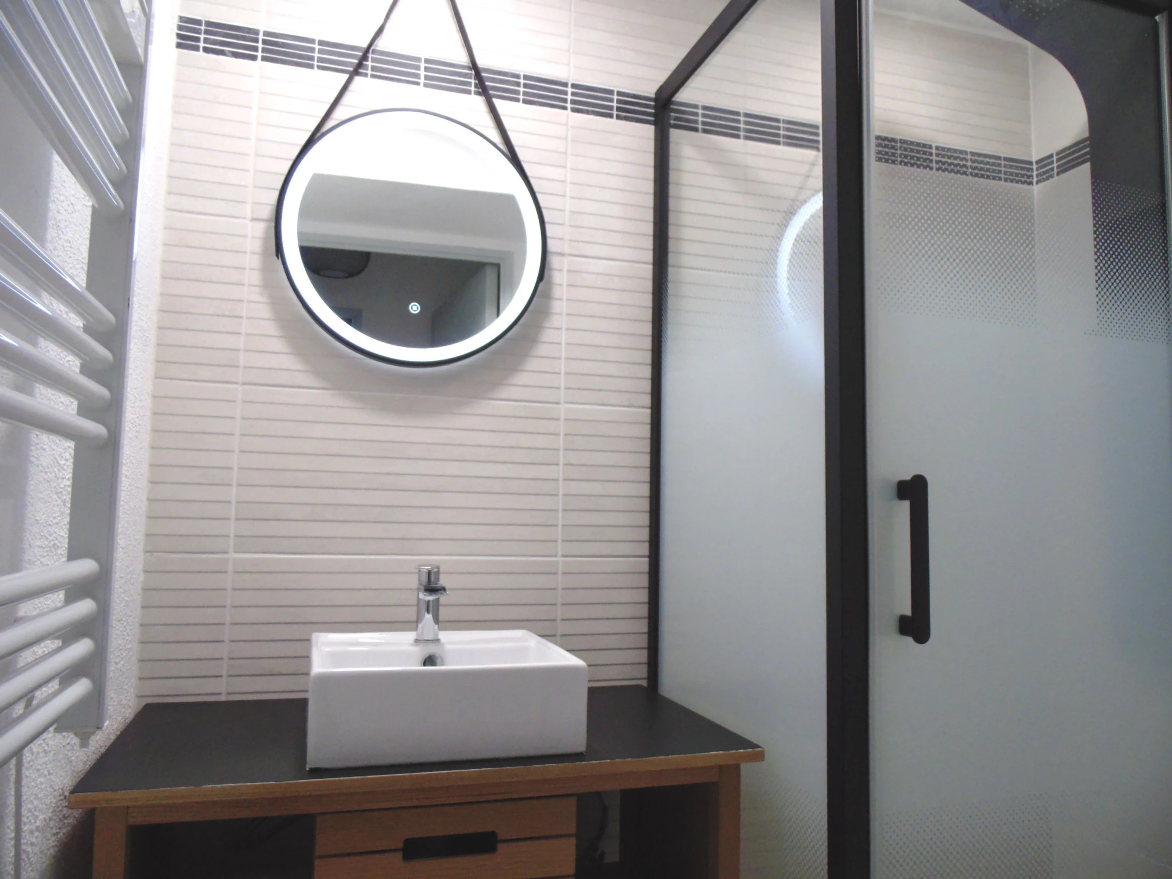 2-Zimmer-Wohnung 35 m2 im 1. Stock, Ostlage. Komfortabel und schön eingerichtet: Wohn-/Esszimmer mit 1 Ausziehbett (2 Pers. 2 x 80 cm, Länge 200 cm), TV (Flachbildschirm). Ausgang zur Terrasse. 1 Zimmer mit 1 franz. Bett (1 x 140 cm, Länge 200 cm). Kochnische (2 Glaskeramikplatten, Toaster, Wasserkocher, Mikrowelle, elektrische Kaffeemaschine). Dusche, sep. WC. E-Heizung. Terrasse 8 m2. Terrassenmöbel. Sicht auf das Schwimmbad und die Landschaft. Zur Verfügung: Waschmaschine, Bügeleisen, Haartrockner. Internet (Wireless LAN, extra). Bitte beachten: Nichtraucher-Unterkunft. Rauchmelder.