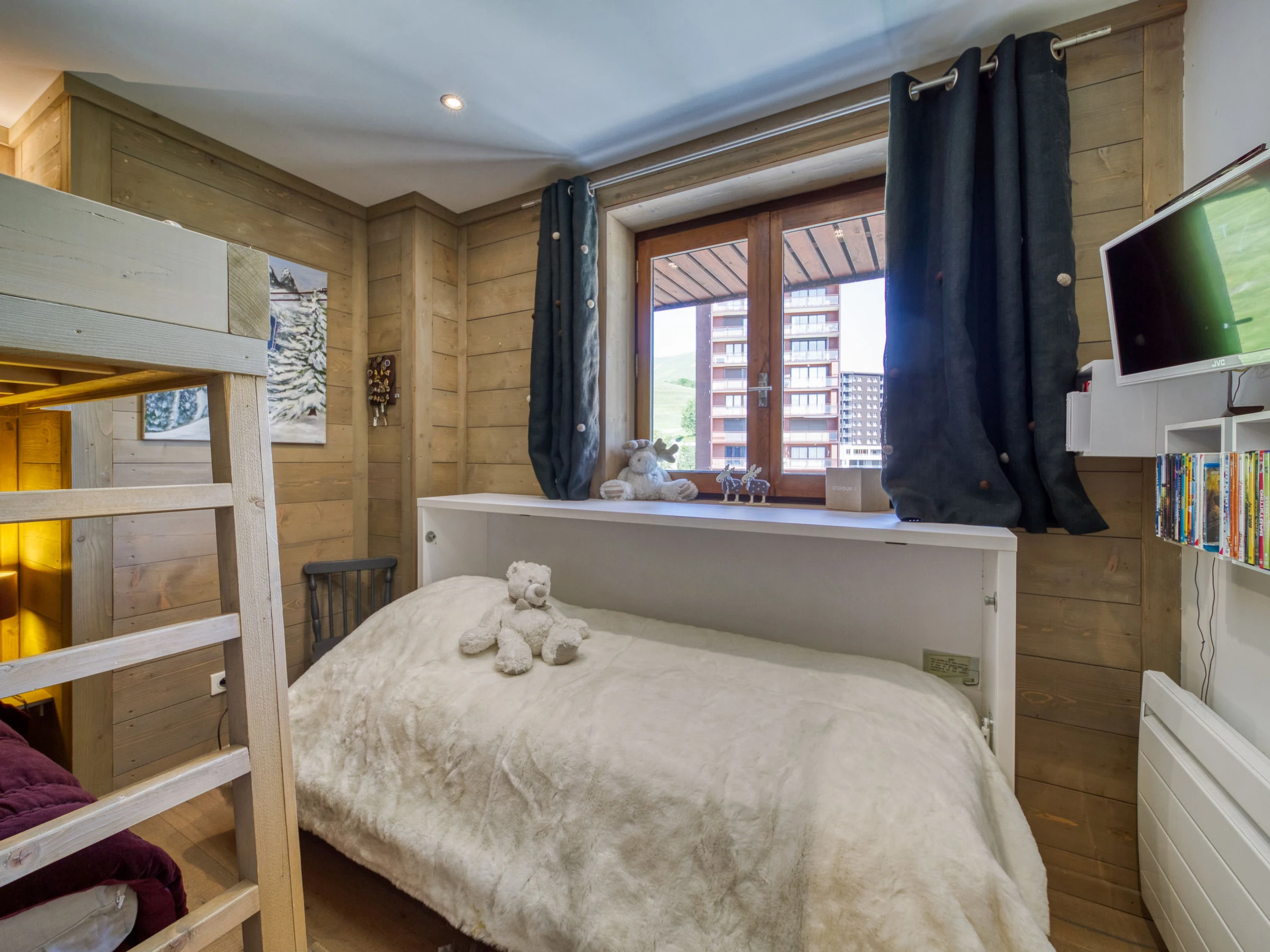 4-Zimmer-Wohnung 100 m2 im 3. Stock, Südlage. Vollständig renoviert im Jahre 2013, sehr schön und geschmackvoll eingerichtet: grosses Wohn-/Esszimmer mit TV (Flachbildschirm), DVD und DVD Sammlung vorhanden. 1 Zimmer mit 1 x 1 Etagenbetten (80 cm), 1 franz. Bett (1 x 160 cm, Länge 200 cm), Waschbecken, Dusche und TV (Flachbildschirm). 1 Zimmer mit 1 x 2 Etagenbetten (90 cm, Länge 190 cm), 1 Wandklappbett (80 cm, Länge 190 cm), TV (Flachbildschirm). 1 Zimmer mit 1 franz. Bett (1 x 160 cm, Länge 200 cm), TV (Flachbildschirm). Offene Küche (Backofen, Geschirrspüler, 4 Induktionskochplatten, Mikrowelle, Tiefkühler, elektrische Kaffeemaschine, Kapseln für die Kaffeemaschine (Nespresso) extra) mit Bar, TV (Flachbildschirm). Dusche/WC, sep. WC. E-Heizung. Parkettboden. 2 Balkone, Südlage. Sehr schöne Sicht auf die Skipiste. Zur Verfügung: Waschmaschine, Wäschetrockner, Safe, Bügeleisen, Haartrockner. Internet (WLAN, extra). Bitte beachten: Nichtraucher-Unterkunft. Rauchmelder. Der Ofen ist nicht nutzbar. Inserat einer Privatperson nach Artikel 155, IV, CGI.