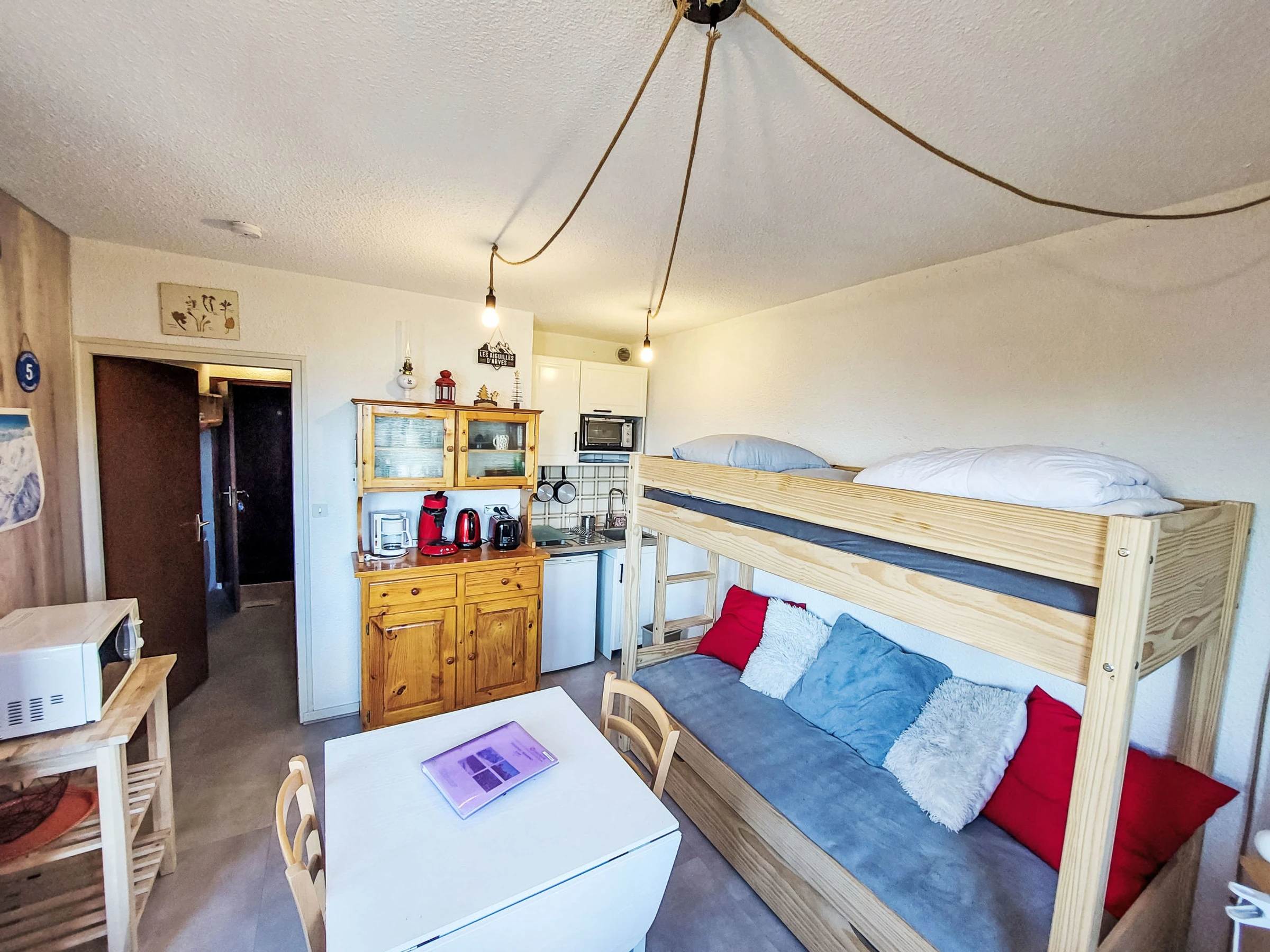 1-Zimmer-Studio 20 m2 im 2. Stock, Nordlage. Schön eingerichtet: Wohn-/Schlafzimmer mit 1 x 1 Etagenbetten (80 cm, Länge 190 cm), 1 Ausziehbett (2 Pers. 2 x 80 cm, Länge 190 cm), TV (Flachbildschirm), DVD. Ausgang zum Balkon, Richtung Norden. Kleine Kochnische (2 Kochplatten, Mini-Backofen, Toaster, Wasserkocher, Mikrowelle, elektrische Kaffeemaschine, Kapseln für die Kaffeemaschine (SENSEO) extra, Racletteofen, Fondue Set (Käse)). Bad, sep. WC. E-Heizung. Parkettboden. Kleiner Balkon, Nordlage. Schöne Sicht auf die Berge und das Tal. Zur Verfügung: Bügeleisen, Haartrockner. Internet (Wireless LAN, extra). Bitte beachten: Nichtraucher-Unterkunft. Rauchmelder. Inserat einer Privatperson nach Artikel 155, IV, CGI.