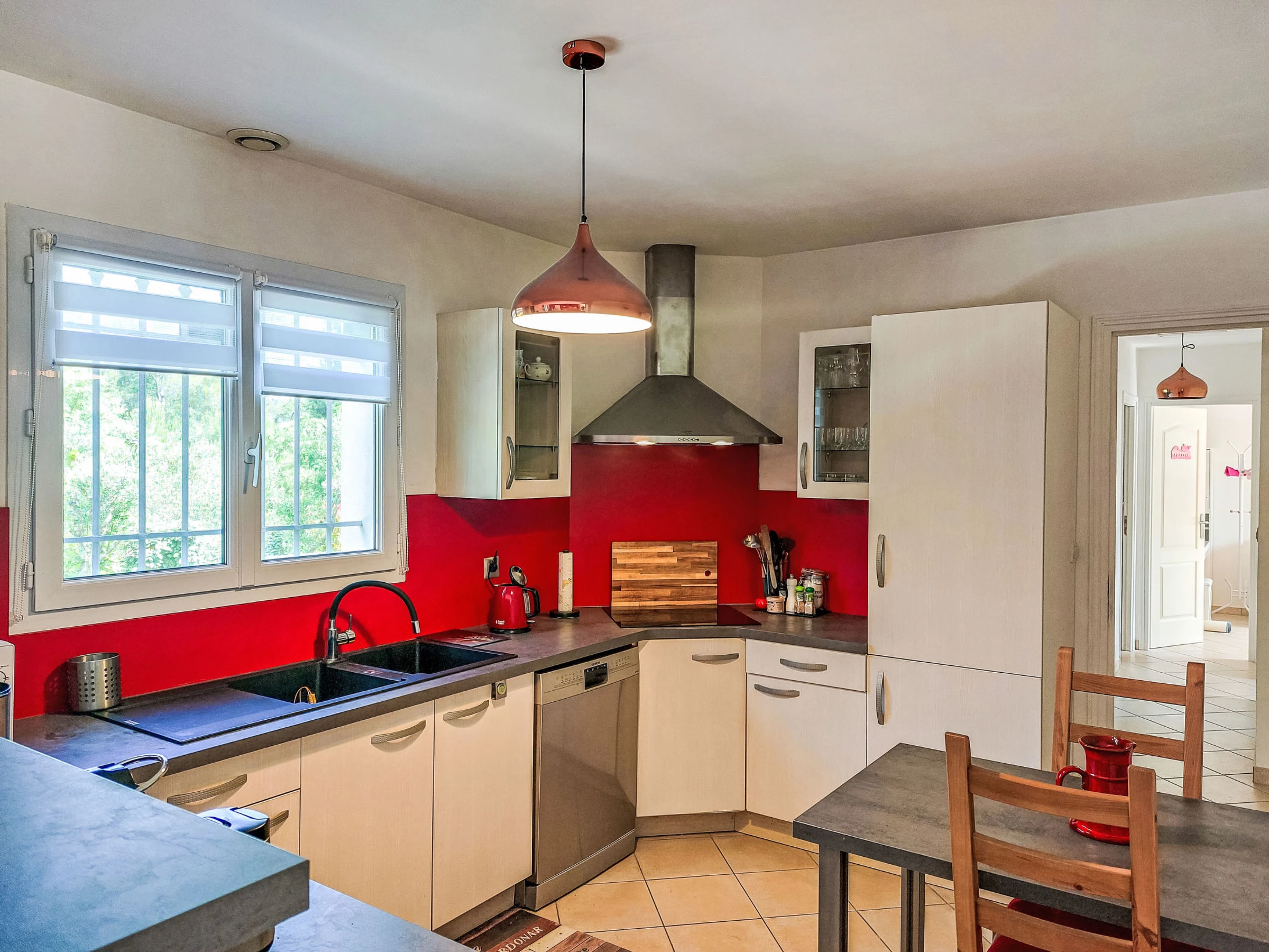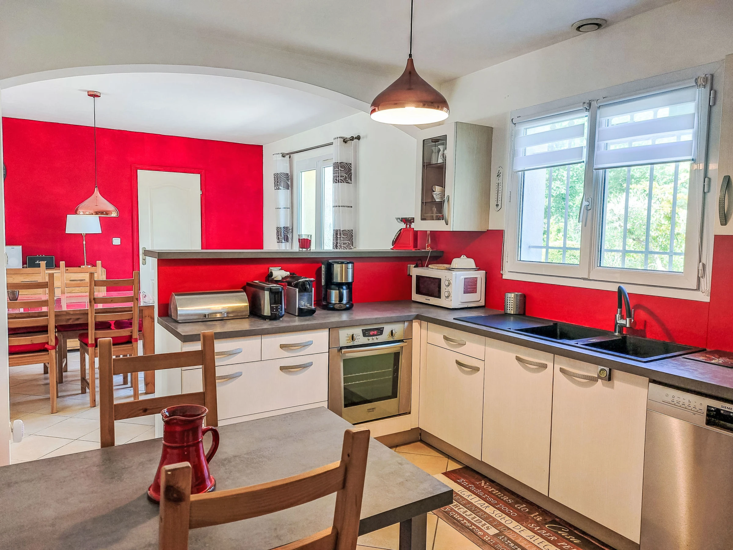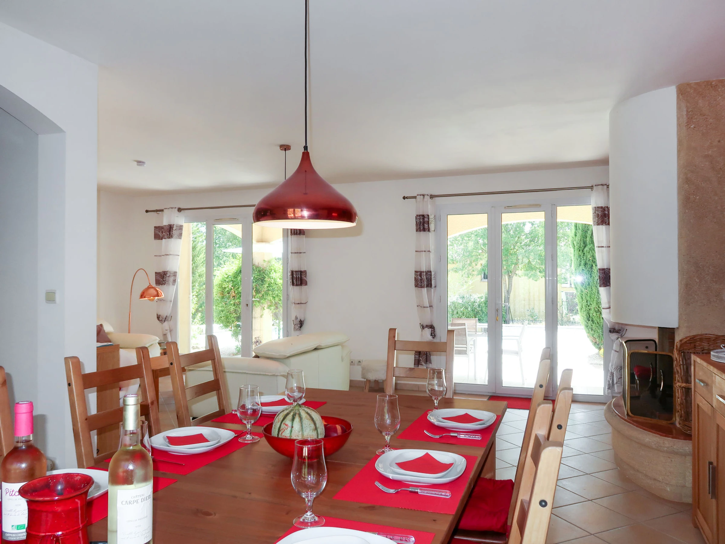 "Allegra", 4-Zimmer-Haus 100 m2. Komfortabel und schön eingerichtet: Wohn-/Esszimmer mit offenem Kamin (nur Deko), Esstisch, TV, Flachbildschirm und Stereoanlage. Ausgang zur Terrasse. 2 Zimmer, jedes Zimmer mit 1 franz. Bett (160 cm, Länge 200 cm). 1 Zimmer mit 1 Ausziehbett (2 x 80 cm, Länge 200 cm). Offene Küche (Backofen, Geschirrspüler, 3 Induktionskochplatten, Toaster, Wasserkocher, Mikrowelle, elektrische Kaffeemaschine). Dusche, sep. WC, Doppelwaschbecken. E-Heizung. Terrasse 20 m2, überdacht Terrasse 15 m2. Terrassenmöbel, Gartengrill. Zur Verfügung: Waschmaschine, Kinderhochstuhl, Babybett. Internet (WLAN, gratis). Bitte beachten: Nichtraucher-Haus. Rauchmelder. [hidden]