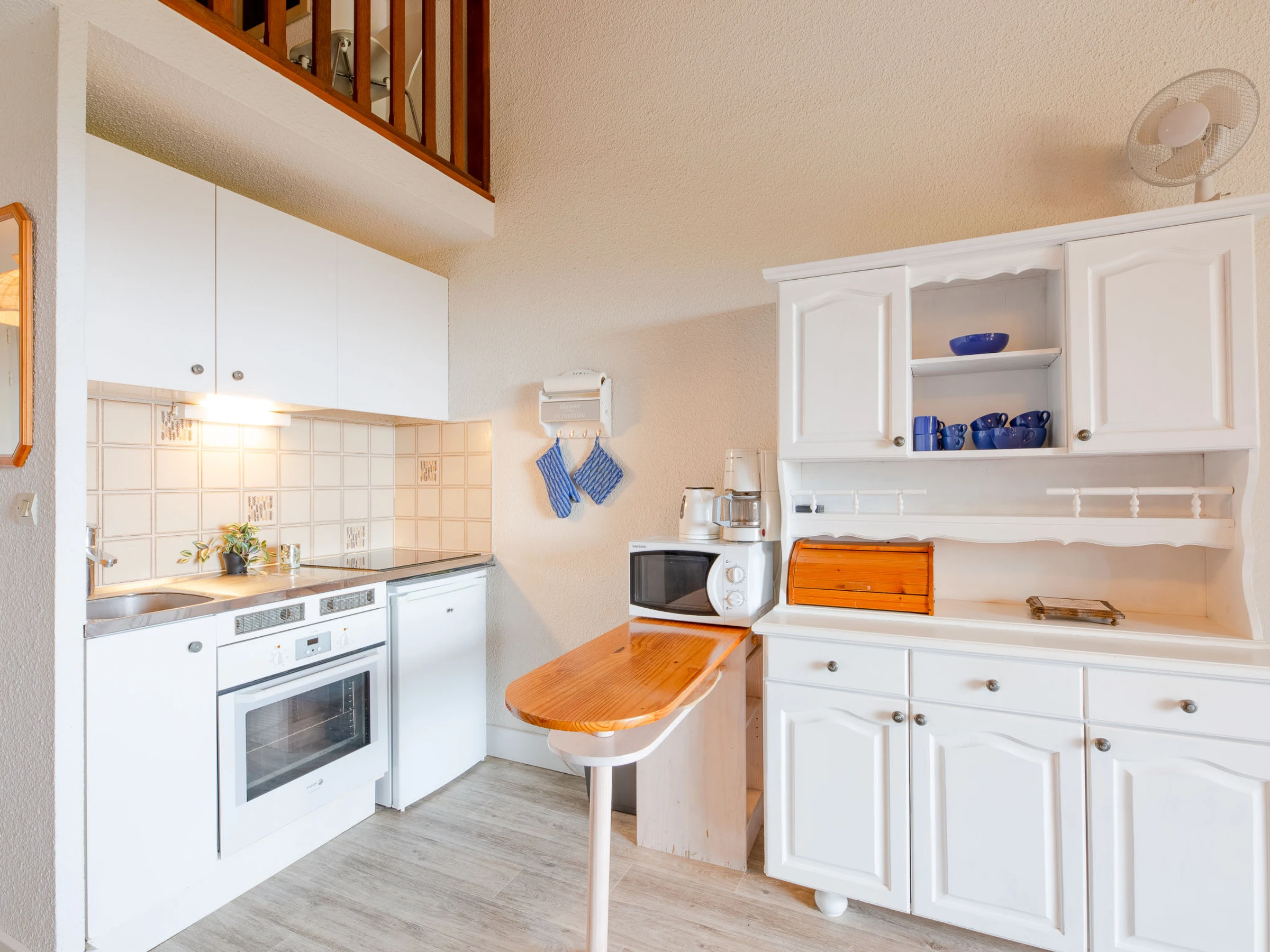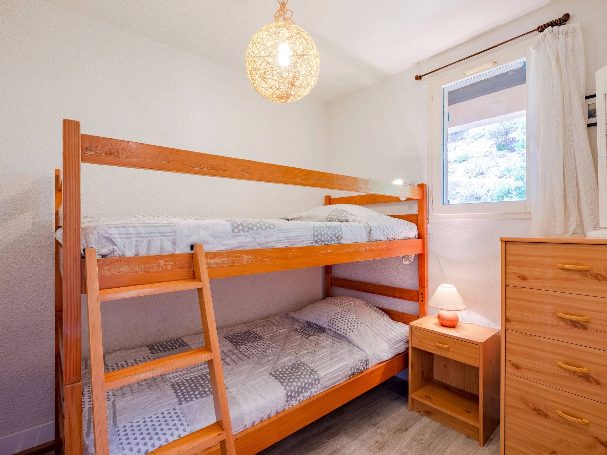 2-Zimmer-Wohnung 46 m2 auf 2 Stockwerken im 1. Stock. Einfach und zweckmässig eingerichtet: Wohn-/Esszimmer mit TV. 1 Zimmer mit 1 x 2 Etagenbetten (90 cm, Länge 190 cm). Kochnische (4 Kochplatten, Backofen, Toaster, Wasserkocher, Mikrowelle, elektrische Kaffeemaschine). Bad/WC. E-Heizung. Obergeschoss: offene Galerie mit 1 franz. Bett (140 cm, Länge 190 cm). Terrasse 8 m2, überdacht, Südlage. Terrassenmöbel. Sicht auf das Meer. Zur Verfügung: Internet (Wireless LAN, extra). Parkplatz. Bitte beachten: Nichtraucher-Unterkunft. Maximal 1 Haustier/Hund erlaubt. Rauchmelder. Anstelle eines abgeschlossenen Schlafzimmers befinden sich manche Schlafplätze in einem offenen Bereich (Galerie, Nische etc.). [hidden]