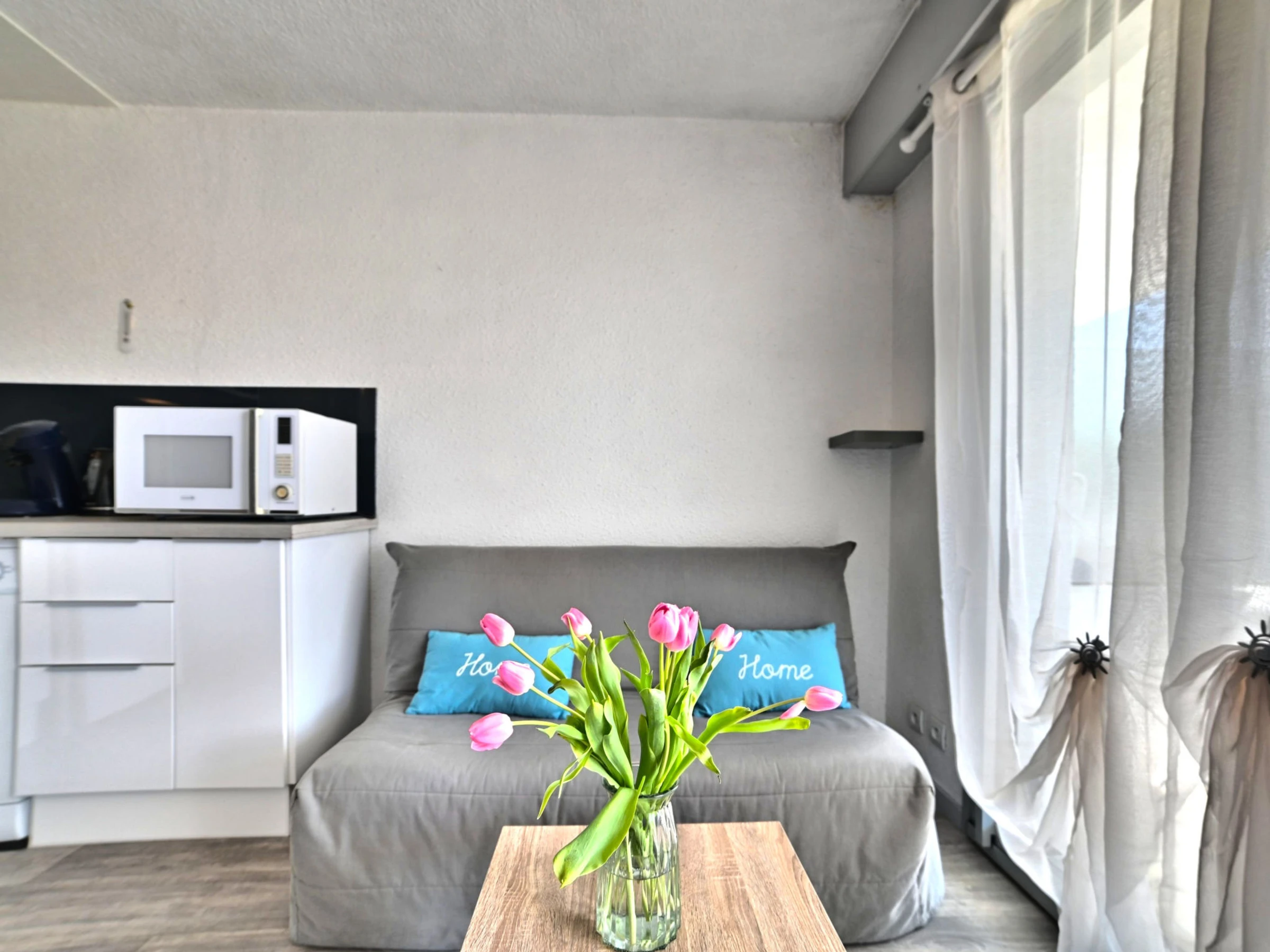 2-Zimmer-Wohnung 26 m2 im 1. Stock, Westlage. Wohn-/Esszimmer mit 1 Diwanbett (140 cm, Länge 190 cm), TV (Flachbildschirm). Ausgang zum Balkon. Durchgangszimmer mit 1 franz. Bett (140 cm, Länge 190 cm). Kochnische (2 Glaskeramikplatten, Toaster, Wasserkocher, Tiefkühler, elektrische Kaffeemaschine, Kombinationsmikrowelle). Dusche, sep. WC. E-Heizung. Balkon 5 m2. Balkonmöbel. Zur Verfügung: Waschmaschine. Internet (WLAN, extra). Bitte beachten: Rauchmelder. Inserat einer Privatperson nach Artikel 155, IV, CGI.