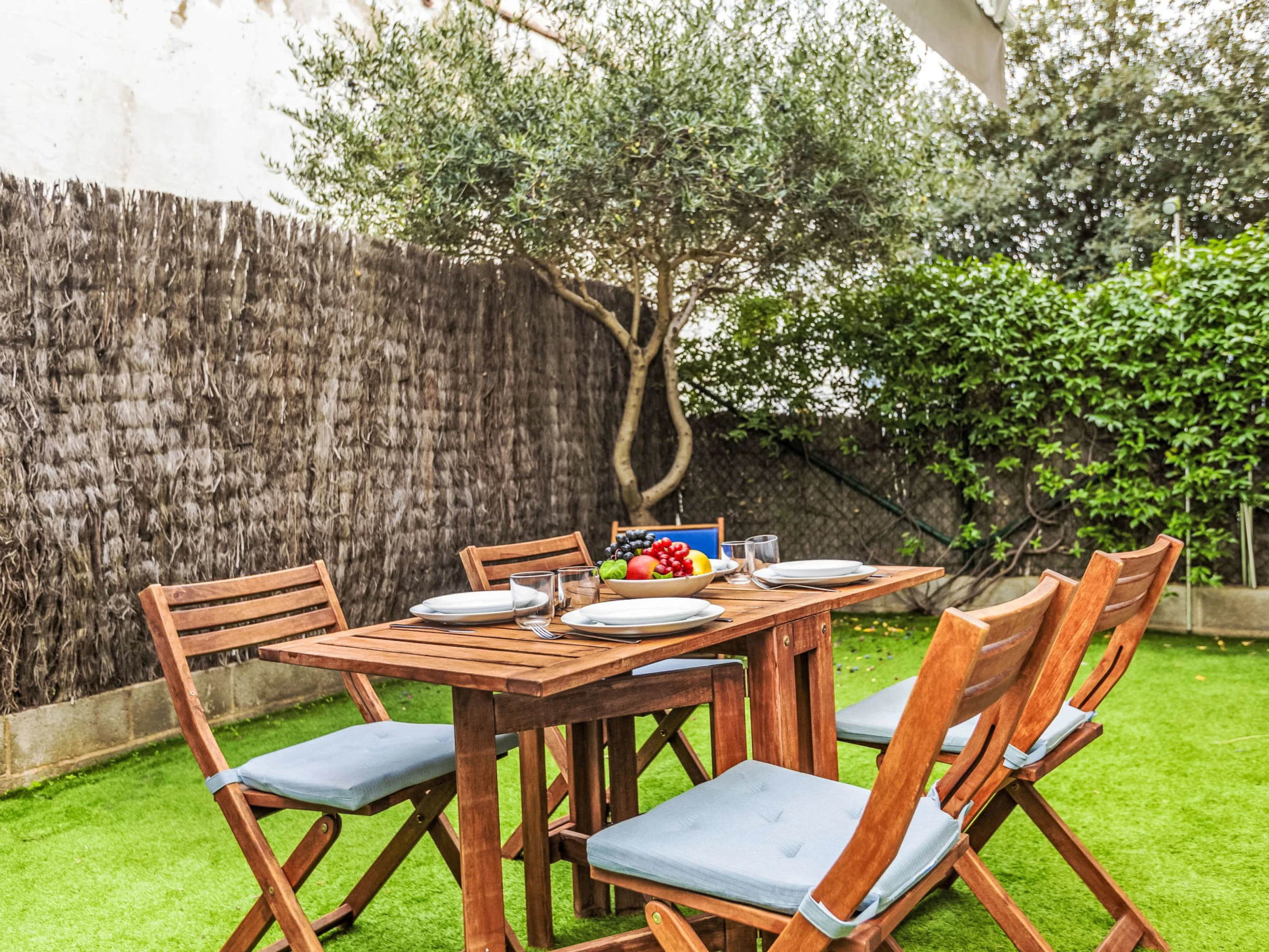 "Les Aigües", 2-Zimmer-Wohnung 50 m2, im Erdgeschoss. Zweckmässig und gemütlich eingerichtet: Wohn-/Esszimmer mit 1 Diwanbett, TV und Digital-TV (Flachbildschirm). Ausgang zum Gartensitzplatz. 1 Zimmer mit 1 franz. Bett (1 x 135 cm), E-Heizung. Offene Küche (Backofen, Geschirrspüler, 4 Glaskeramikplatten, Mikrowelle, elektrische Kaffeemaschine). Dusche/WC. Klimaanlage. Gartensitzplatz 40 m2. Keine Sicht. Zur Verfügung: Waschmaschine, Bügeleisen, Haartrockner. Internet (WLAN, gratis). Parkplatz Nr. 1. Bitte beachten: TV nur ES. Kein Fahrstuhl. [hidden] // Reg. Nr.: ESFCTU00001702000032926000000000000000000HUTG-[hidden]