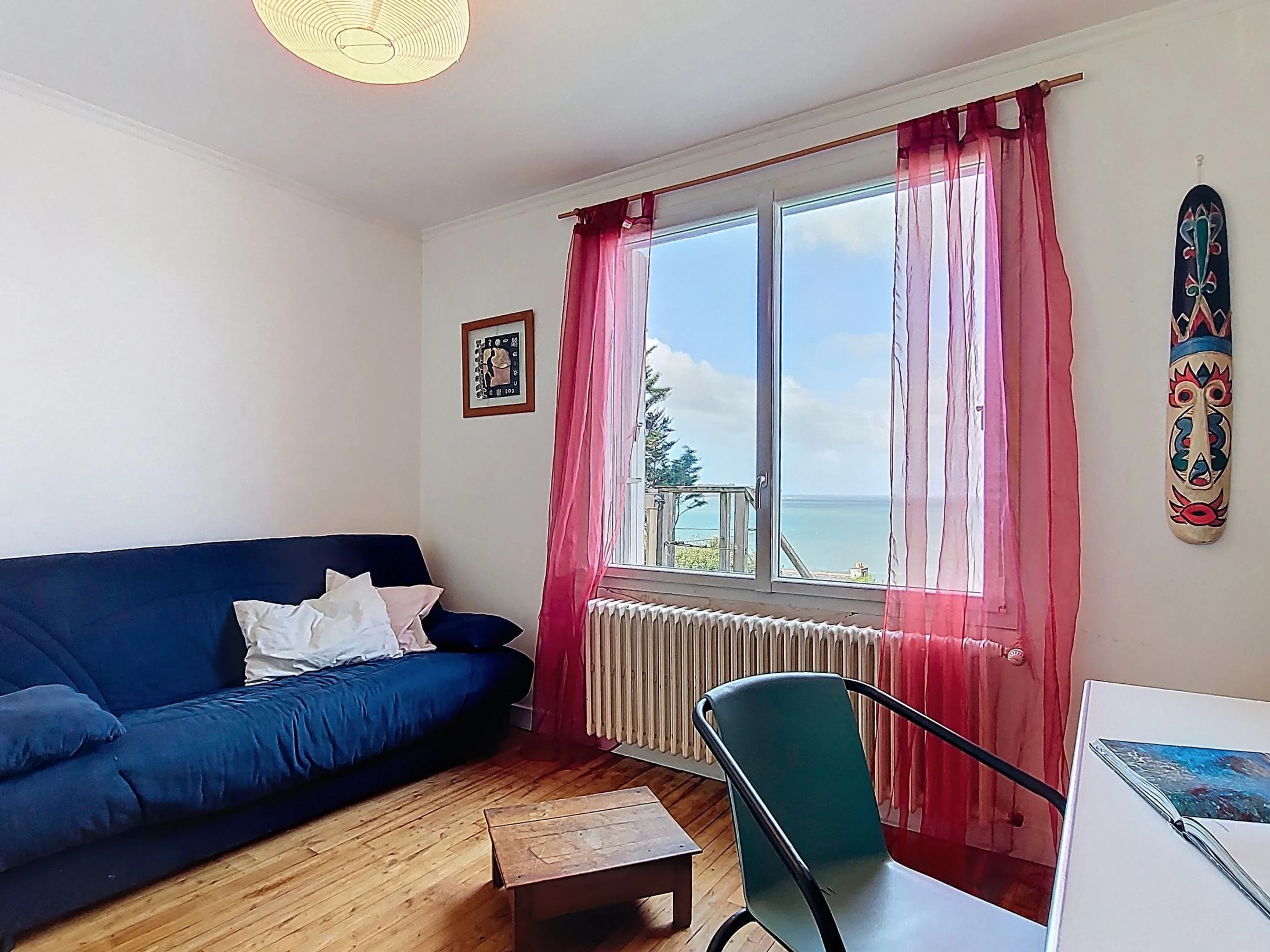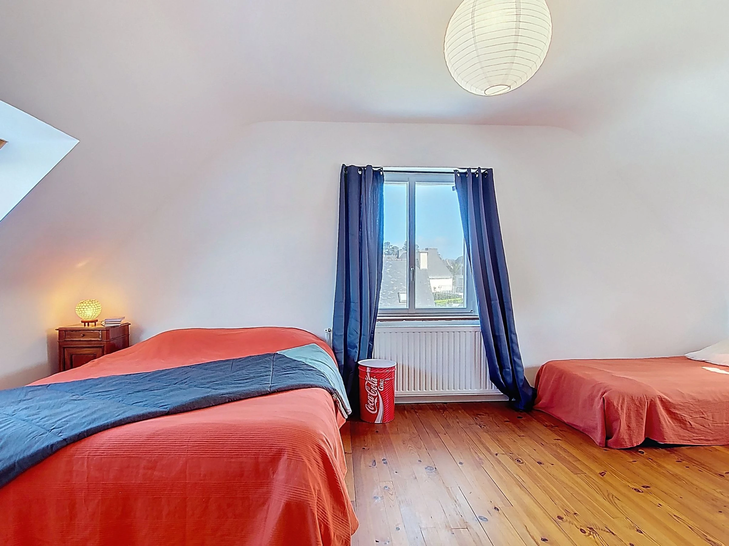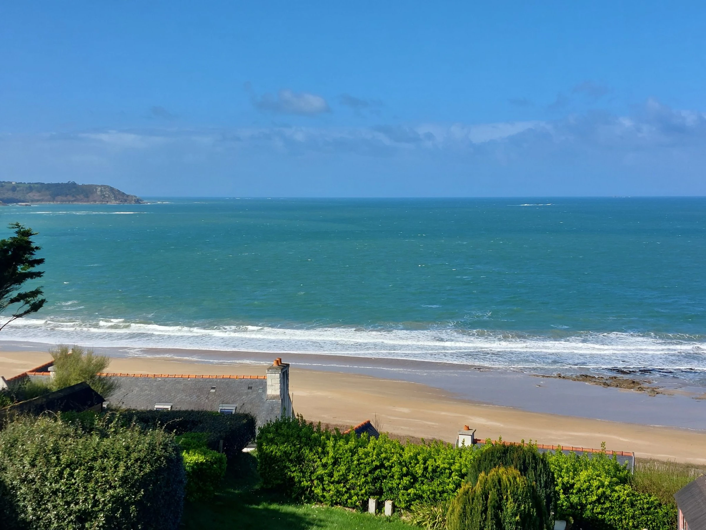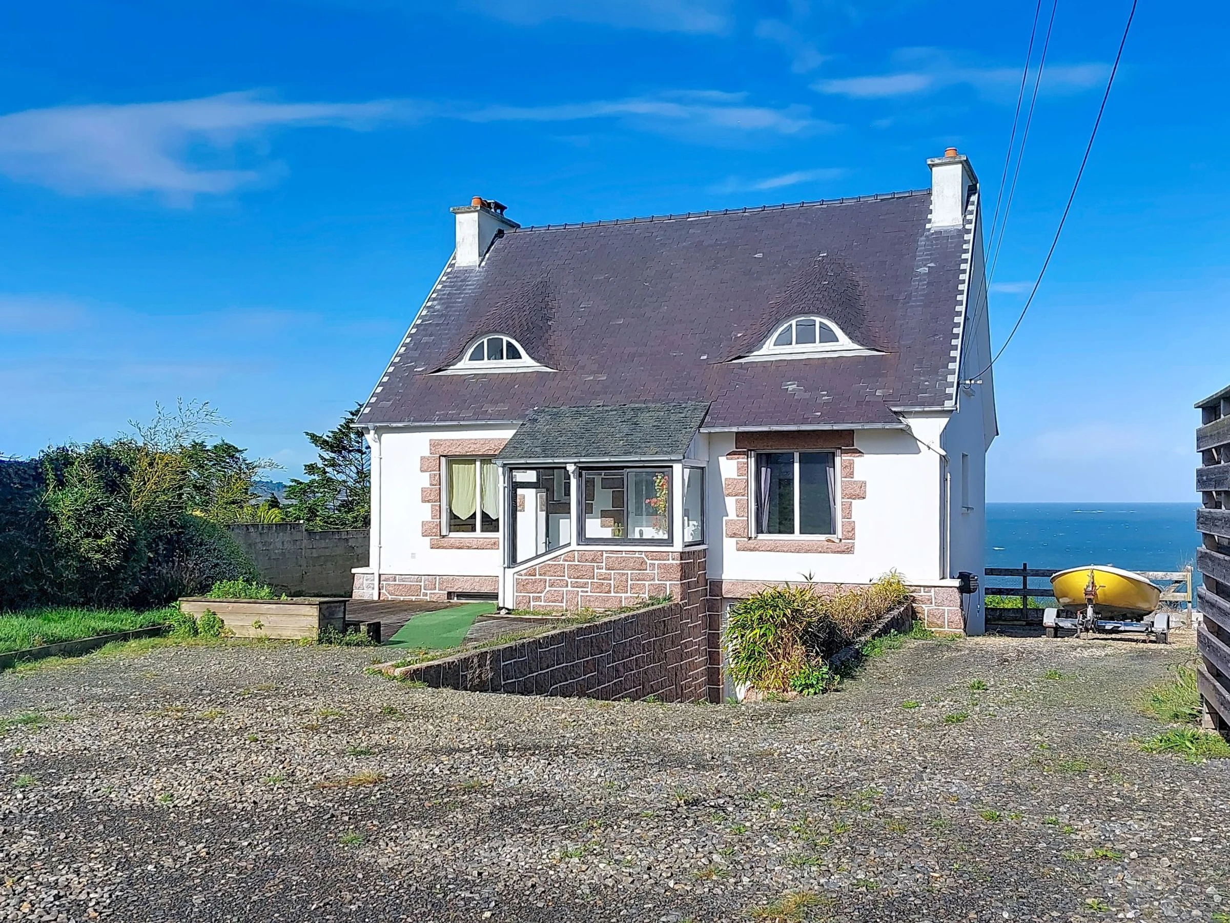 "Ty Kérael", 6-Zimmer-Haus 120 m2 auf 2 Stockwerken. Hell, schön und gemütlich eingerichtet: offenes Wohn-/Esszimmer 20 m2 mit offenem Kamin, Digital-TV und Flachbildschirm. Ausgang zur Terrasse. Büro 12 m2. 1 Zimmer 12 m2 mit 1 franz. Bett (140 cm, Länge 190 cm). Offene Küche 12 m2 (Mini-Backofen, Backofen, Geschirrspüler, 4 Flammen, Toaster, Wasserkocher, Mikrowelle, elektrische Kaffeemaschine). Bad, sep. WC. (unteres Geschoss: Tiefkühler). Obergeschoss: 1 Zimmer 16 m2 mit 1 Bett (90 cm, Länge 190 cm), 1 franz. Bett (160 cm, Länge 200 cm). 1 Zimmer 12 m2 mit 1 franz. Bett (140 cm, Länge 190 cm). Bad. E-Heizung. Grosse Terrasse 21 m2. Terrassenmöbel, Gartengrill (mobil), Liegestühle (3). Schöne Panoramasicht auf das Meer. Zur Verfügung: Waschmaschine, Babybett bis 2 Jahre, Haartrockner. Internet (WLAN). Memory Stick (gratis). Bitte beachten: Nichtraucher-Haus. Maximal 1 kleines Haustier/Hund erlaubt. Rauchmelder. Inserat einer Privatperson nach Artikel 155, IV, CGI.