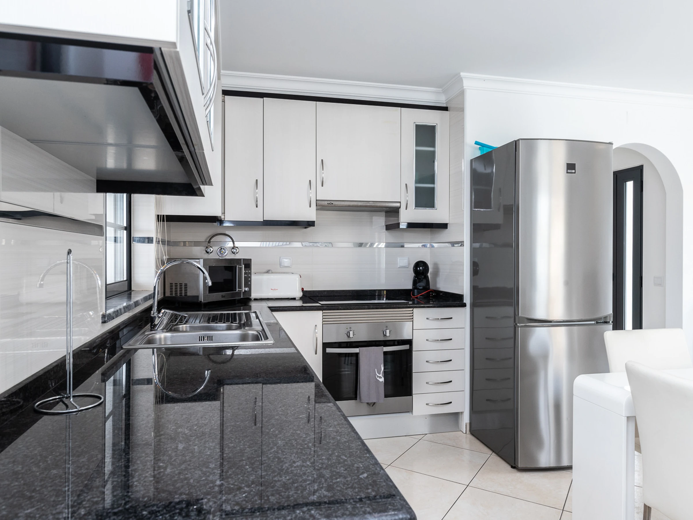 Die amerikanische Küche ist ein echter Blickfang der Wohnung, ausgestattet mit modernsten Haushaltsgeräten, einschließlich Kühl-Gefrier-Kombination, Induktionsherd, Backofen, Mikrowelle, Toaster, Kapselkaffeemaschine DOLCE GUSTO, elektrischer Wasserkocher, Geschirrspülmaschine und Waschmaschine. Alle notwendigen Utensilien sind vorhanden, um während des Aufenthalts köstliche Mahlzeiten zuzubereiten.