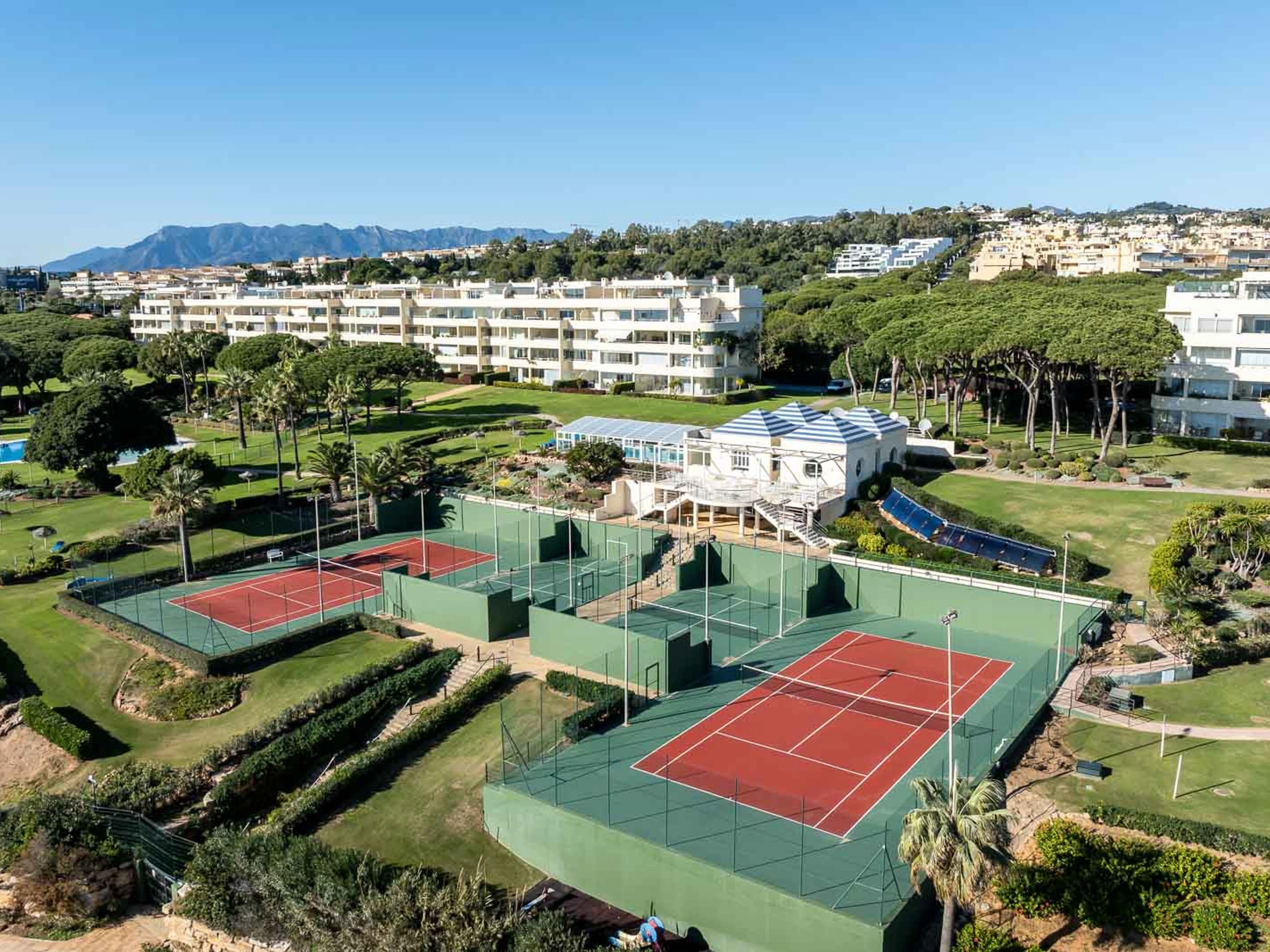 Die Unterkunft verfügt über aufzug, garten, gartenmöbel, umzäuntes grundstück, 16 m² terrasse, waschmaschine, trockner, bügeleisen/-brett, safe, internet (WLAN), haartrockner, kinderbereich, tennisplatz, tischtennisplatte, fitnessraum, alarm, sauna, heizung, klimaanlage, swimming-pool gemeinschaftlicher swimming pool + kinderbecken, klimatisierter pool gemeinschaftlicher swimming-pool, parkplatz im freien in auf dem grundstück, 1 Fernseher.
