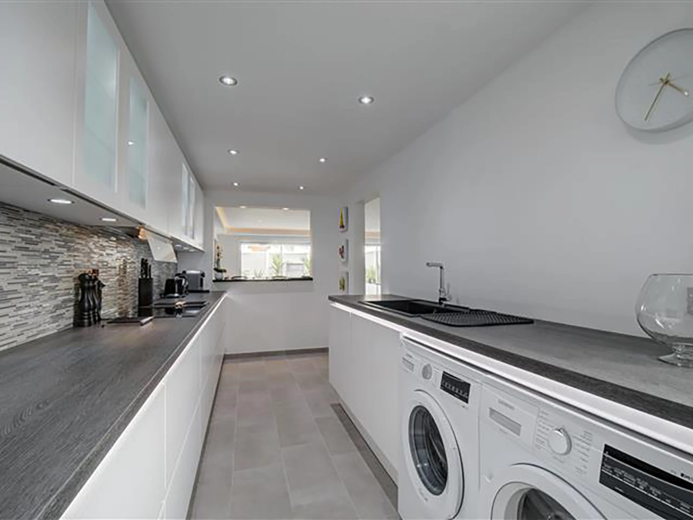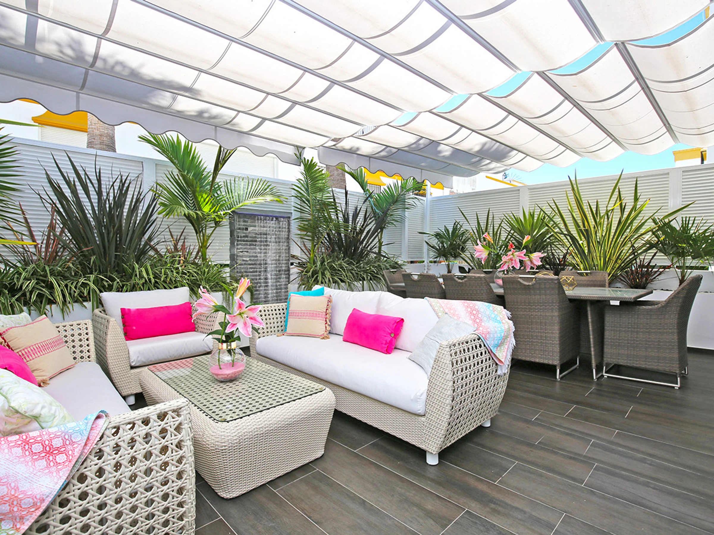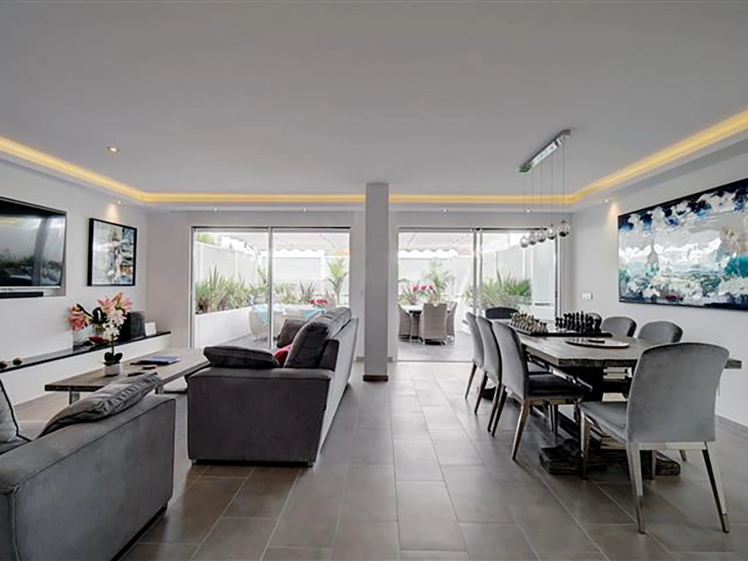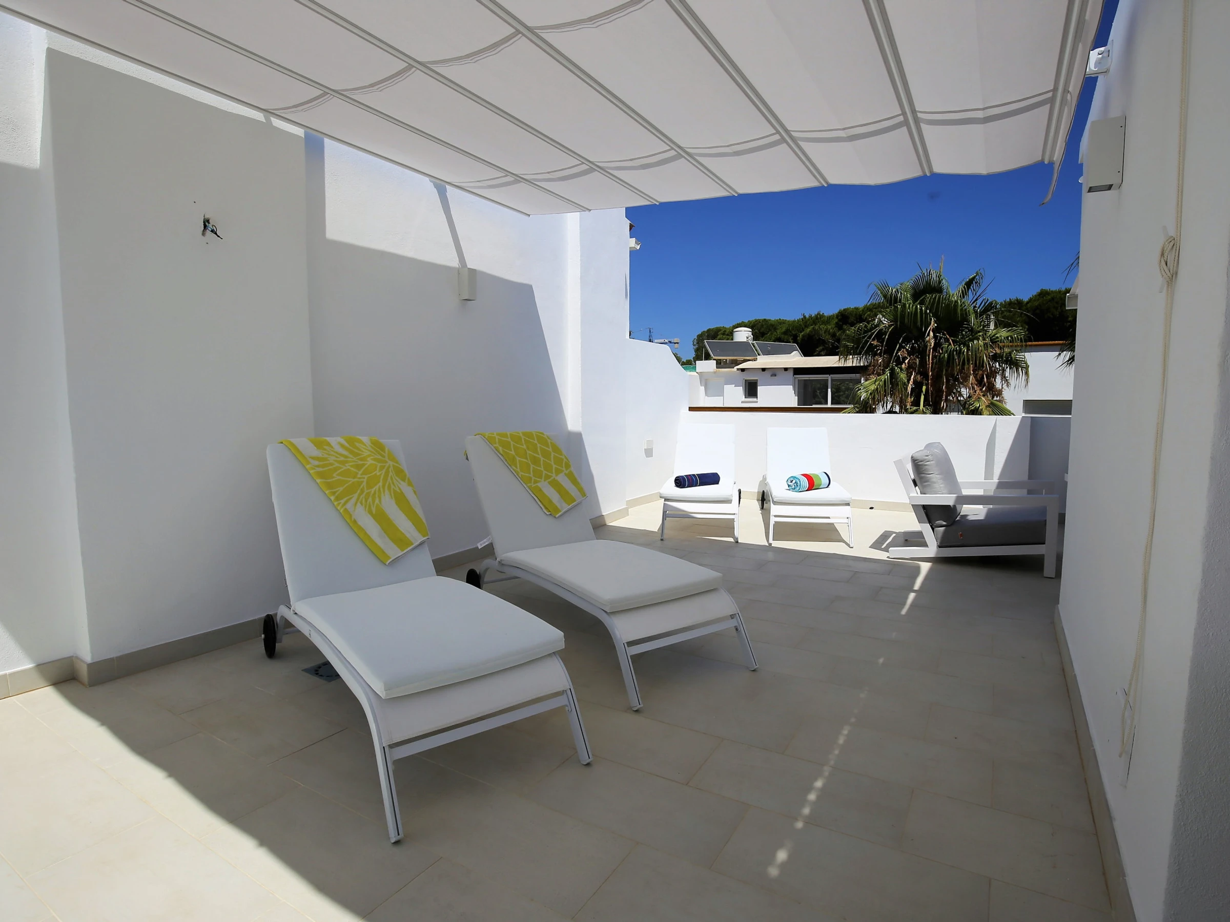 Die obere Ebene ist ein Highlight von Casa Luna — eine prächtige 70 m² große Dachterrasse, die einen Panoramablick auf Berge, Gärten und Meer bietet. Dieser beeindruckende Außenbereich umfasst eine gemütliche Lounge-Ecke, eine Nassbar, eine Sommerküche und einen hohen Cocktailtisch, was ihn ideal für Unterhaltung oder zum Genießen von Abend-Sundowners macht. Die Terrasse erhält den ganzen Tag Sonne, mit Sonnenliegen zum Sonnenbaden und elektrisch einziehbaren Sonnenschutz für diejenigen, die es lieber in Komfort genießen möchten. Gäste können sich auch in der neuen hochmodernen Jacuzzi entspannen und dabei die atemberaubenden Sonnenuntergänge über den Bergen bewundern (Jacuzzi-Nutzung ist gegen eine zusätzliche Gebühr von 25 € pro Tag, zahlbar bei der Anreise, verfügbar).