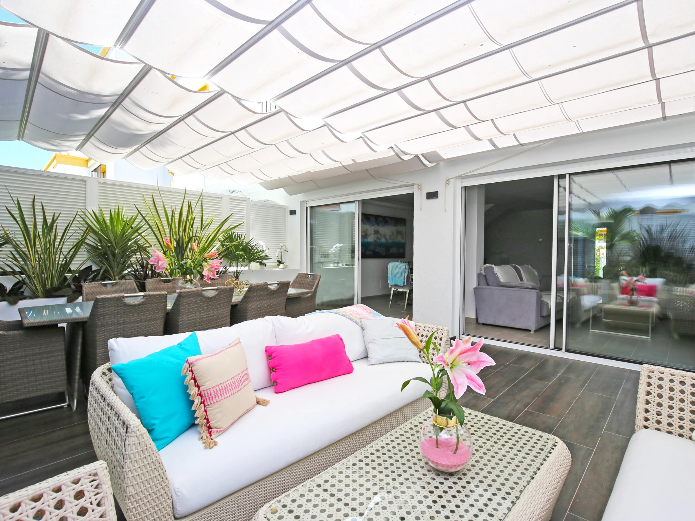 Absolut atemberaubend, geräumig und hervorragend ausgestattet, befindet sich dieses dreistöckige Reihenhaus mit vier Schlafzimmern in der exklusiven 5-Sterne-Strandgemeinschaft von Marbellamar — nur wenige Schritte von den goldenen Sandstränden von Casablanca Beach entfernt, einem der schönsten Abschnitte an Marbellas prestigeträchtigem Golden Mile, einer der begehrtesten Adressen Europas.