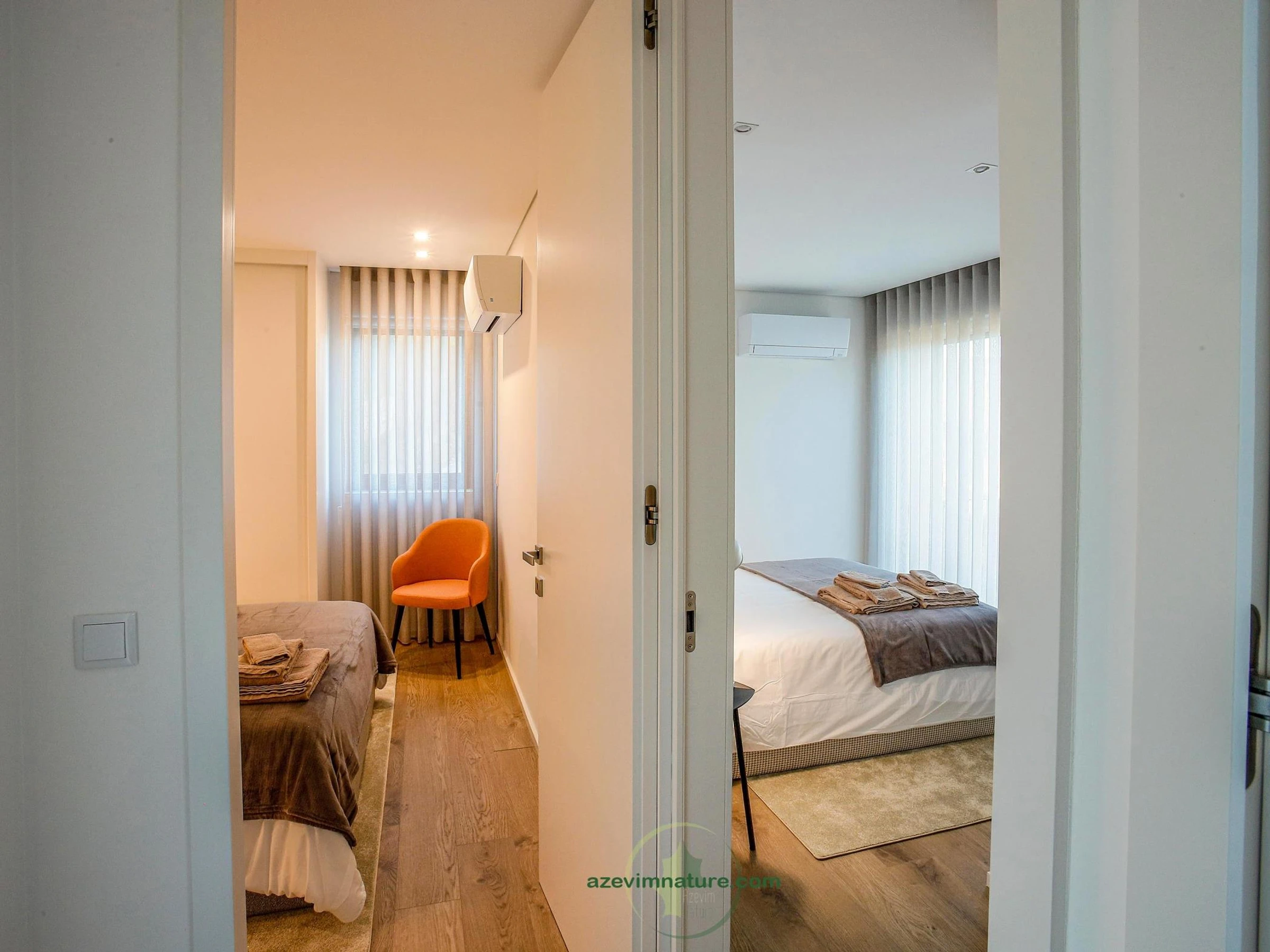 Casa do Barbeiro, Quinta da Pigarra, bietet einen Ort der Ruhe und Entspannung sowie ein umfassendes Eintauchen in die Weinkultur der Region. Mit atemberaubendem Blick auf den Fluss Minho und Galicien (Spanien) verzaubert dieses Anwesen Besucher mit seiner natürlichen Schönheit und bietet ein bereicherndes Erlebnis, das Tradition und Komfort vereint. Casa do Barbeiro öffnet sich zu einer voll ausgestatteten Küche. Es verfügt über zwei Schlafzimmer mit Doppelbetten und eine Suite. Genießen Sie den außergewöhnlichen Ausblick aus den großen Fenstern des Hauses oder vom privaten Pool aus und bewundern Sie die Schönheit der Weinberge, die sich bis zum Fluss und den Hügel hinauf erstrecken. Das Erlebnis im Casa do Barbeiro geht über den Komfort der Unterkunft hinaus. Die Nähe zum Fluss Minho bietet die Möglichkeit, Outdoor-Aktivitäten zu unternehmen und die Natur zu genießen. Auch die lokale Gastronomie ist ein Muss und bietet köstliche und traditionelle Gerichte!
