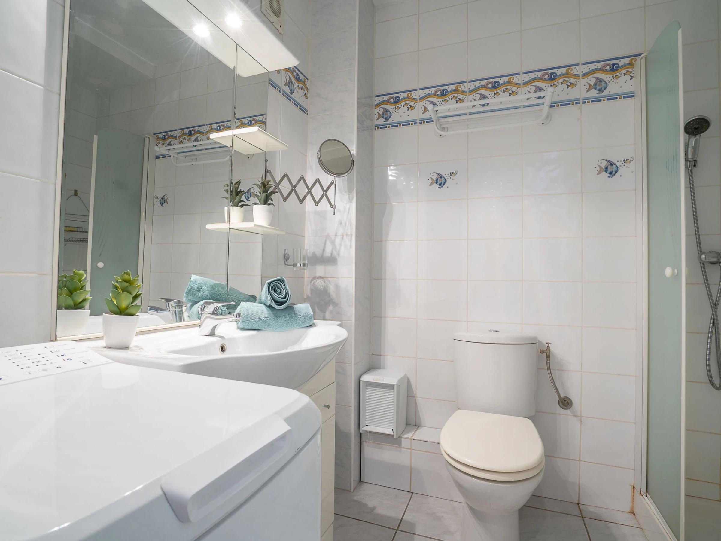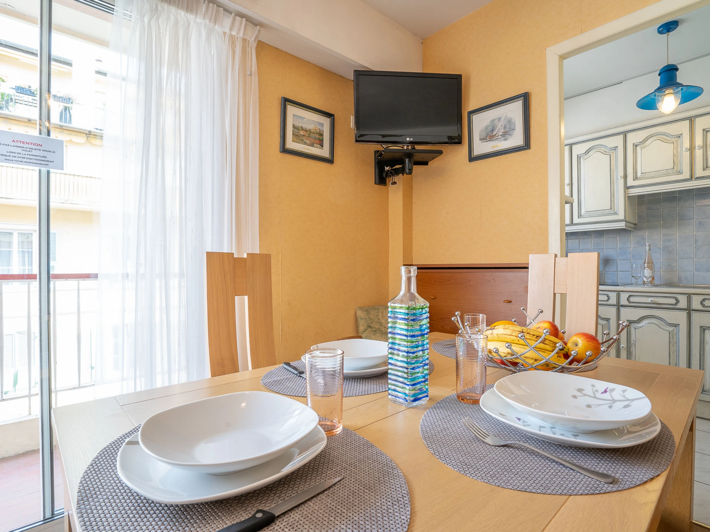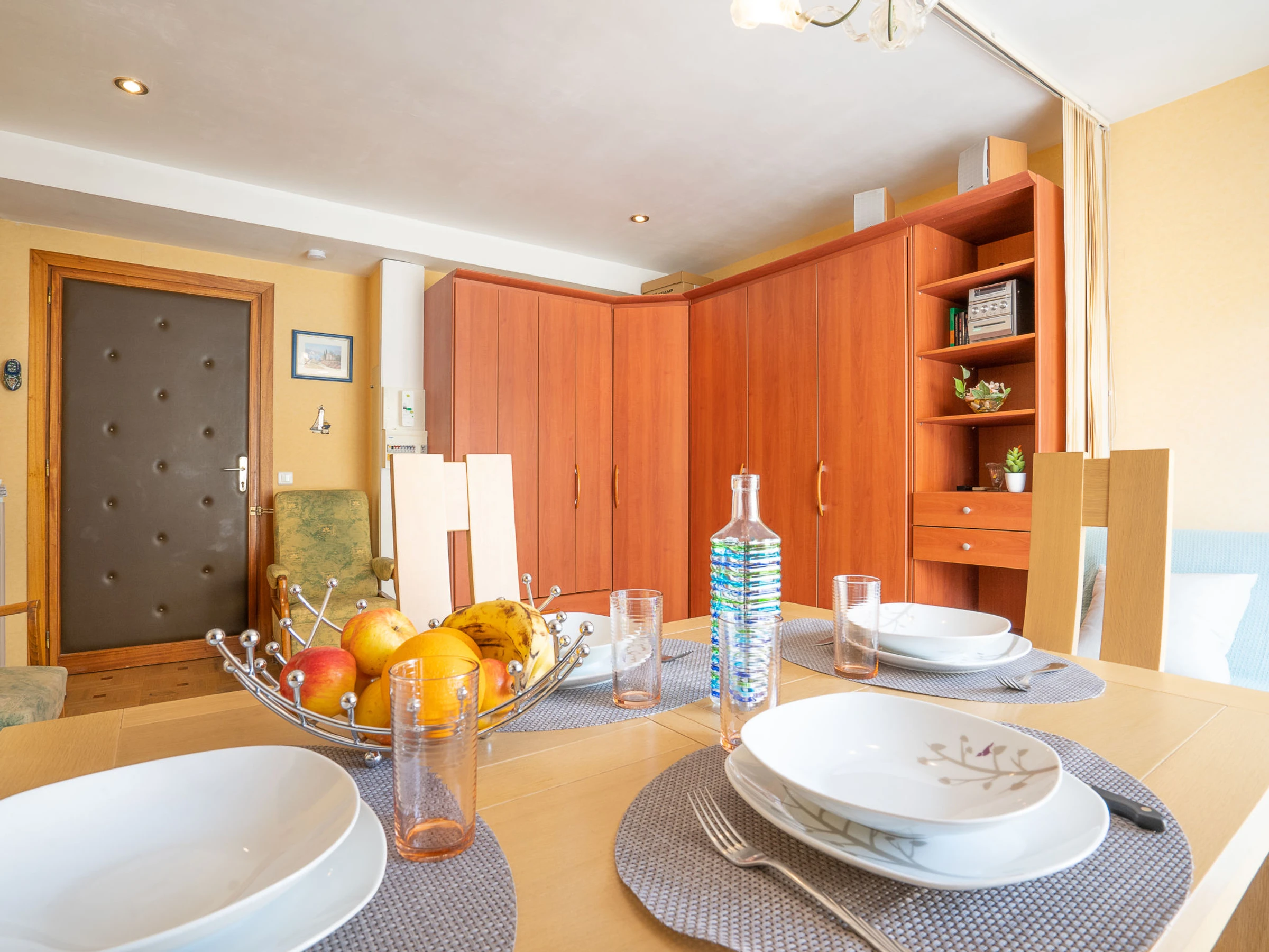 1-Zimmer-Wohnung 32 m2 im 4. Stock. Schön eingerichtet: Wohn-/Esszimmer mit 1 franz. Wandschrankbett (1 x 140 cm), TV und Stereoanlage. Ausgang zum Balkon. Küche (2 Kochplatten, Backofen, Mikrowelle, Tiefkühler). Dusche/WC. Klimaanlage. Balkon 6 m2. Zur Verfügung: Waschmaschine. [hidden]