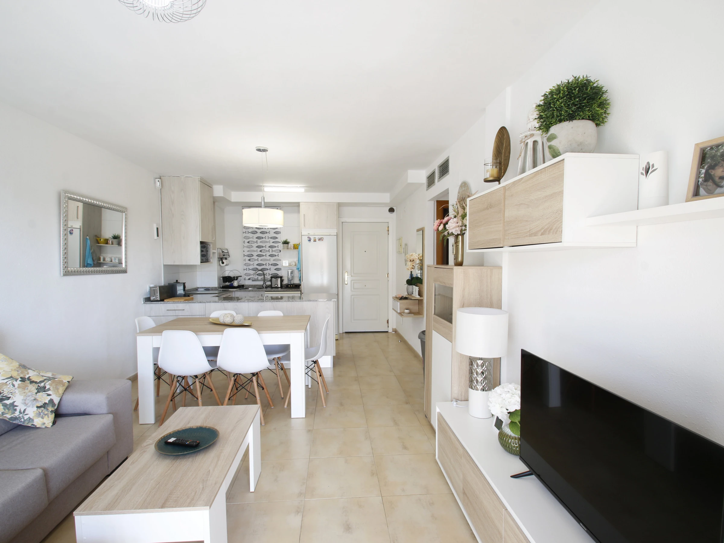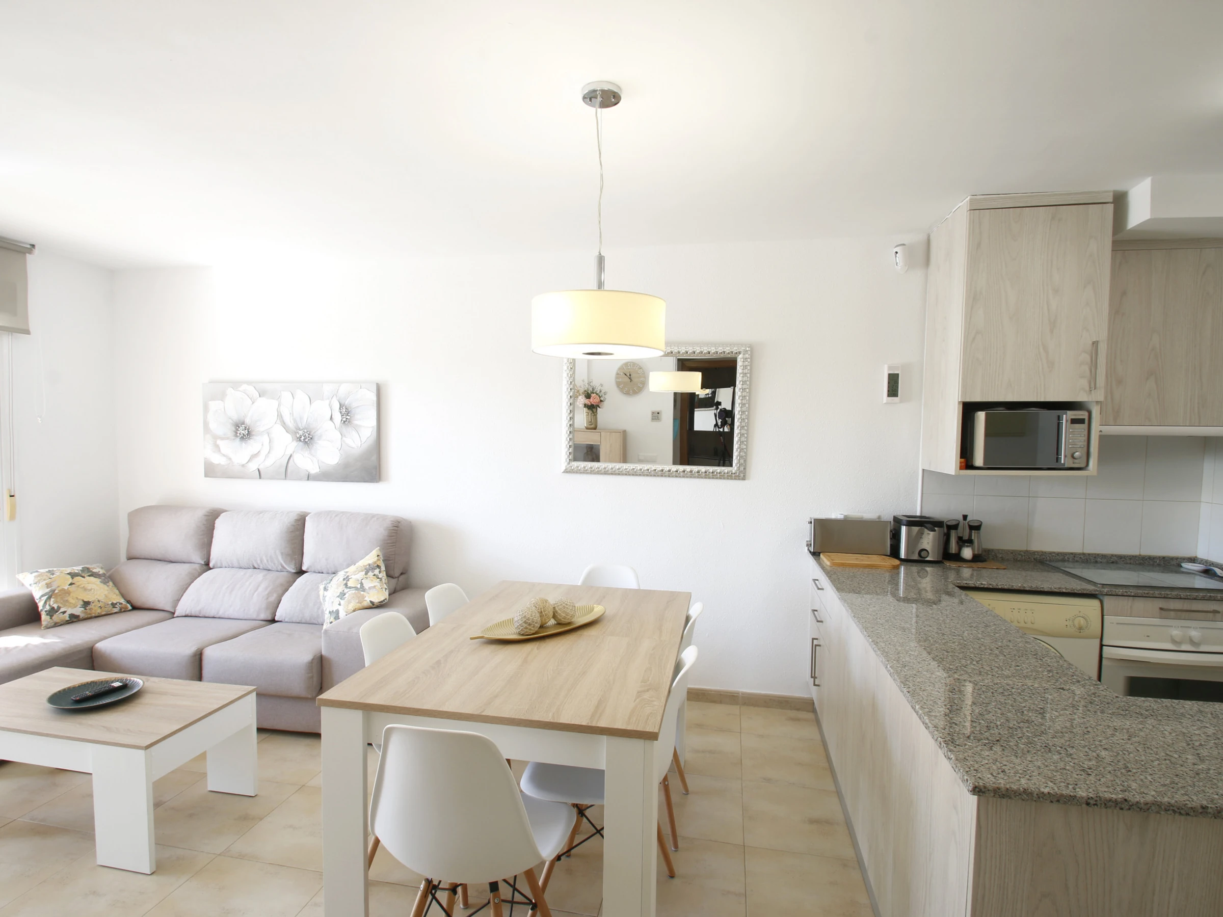 Ferienwohnung in Miami Playa mit 2 Schlafzimmern und Platz für 5 Personen. Die 55 m² große Unterkunft ist komfortabel und modern, ideal für einen Urlaub am Meer. Sie befindet sich nur 100 Meter vom Sandstrand, die gleiche Entfernung von Restaurants und 500 Meter vom Zentrum von Miami Platja, wo Sie alles finden, was Sie für Ihren Aufenthalt benötigen.