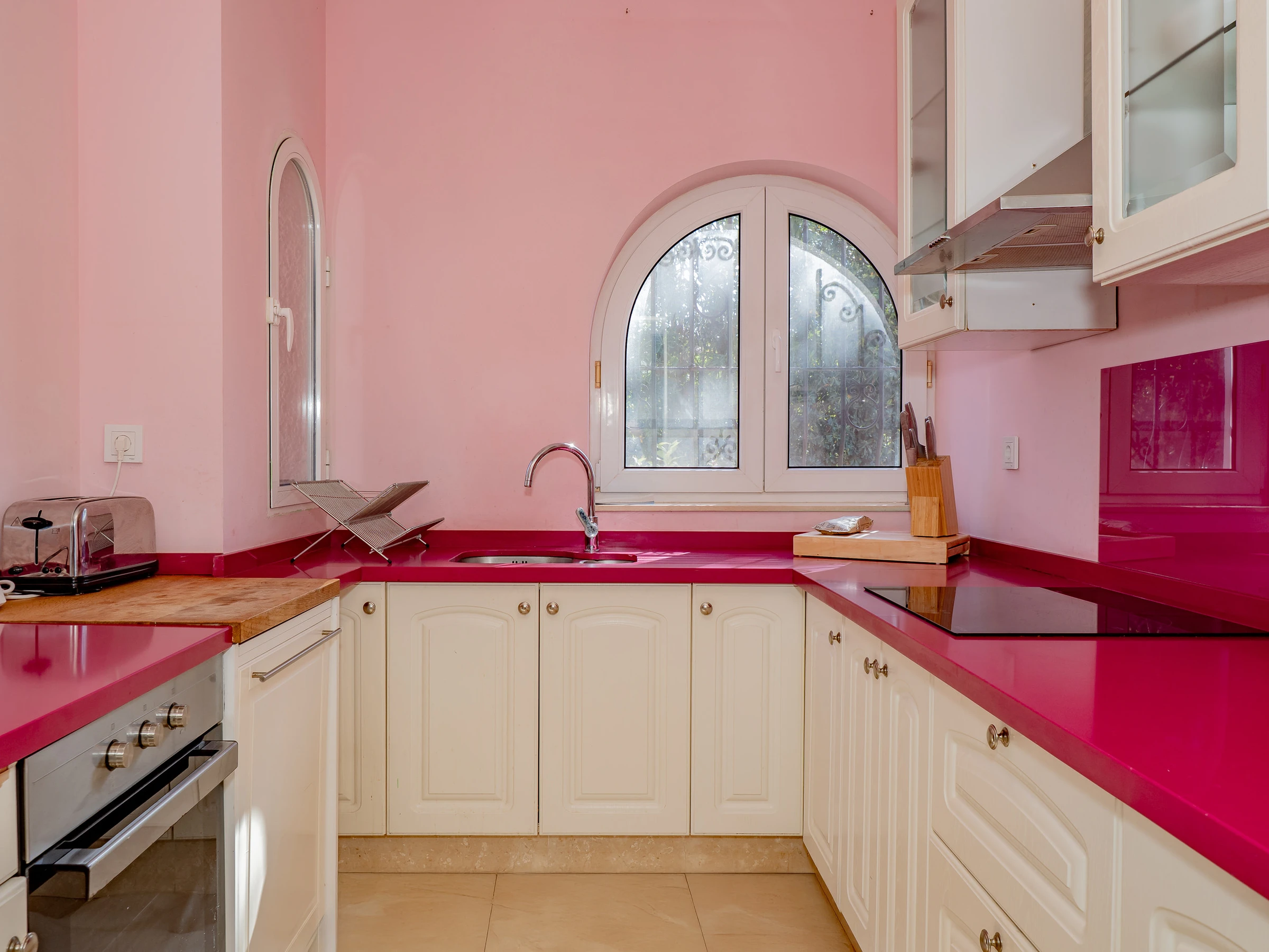 Die Erdgeschossetage, die einzige für Gäste verfügbare Zone, verfügt über einen Empfangsbereich, der zu zwei Schlafzimmern führt: eines mit zwei Einzelbetten und ein anderes mit einem Einzelbett, beide mit Außenfenstern und ausreichend Platz für Gepäck. Weiter gehend, findest du ein Badezimmer mit Dusche und eine separate Küche, ausgestattet mit modernen Haushaltsgeräten wie Kühlschrank, Mikrowelle, Ofen, Geschirrspüler, Kaffeemaschine und mehr, um deine Mahlzeiten mit vollem Komfort zuzubereiten.