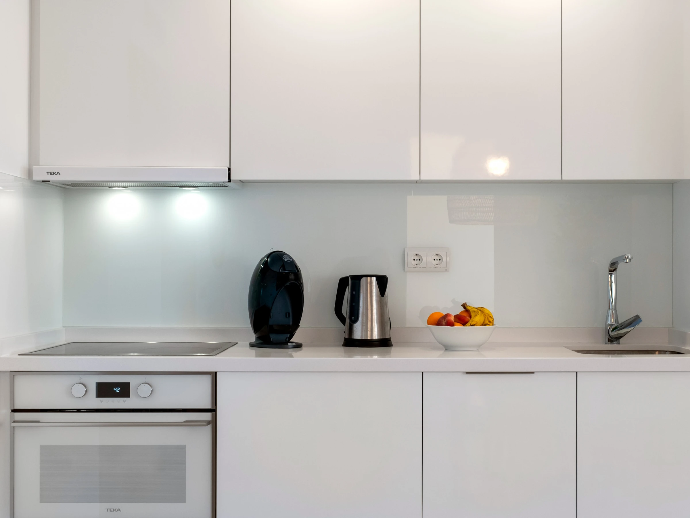 Dieses offene küche, mit ceranfeld, ist ausgestattet in kühlschrank, mikrowelle, backofen, gefrierschrank, spülmaschine, geschirr/besteck, kochutensilien, kaffeemaschine, toaster, wasserkocher und saftpresse.