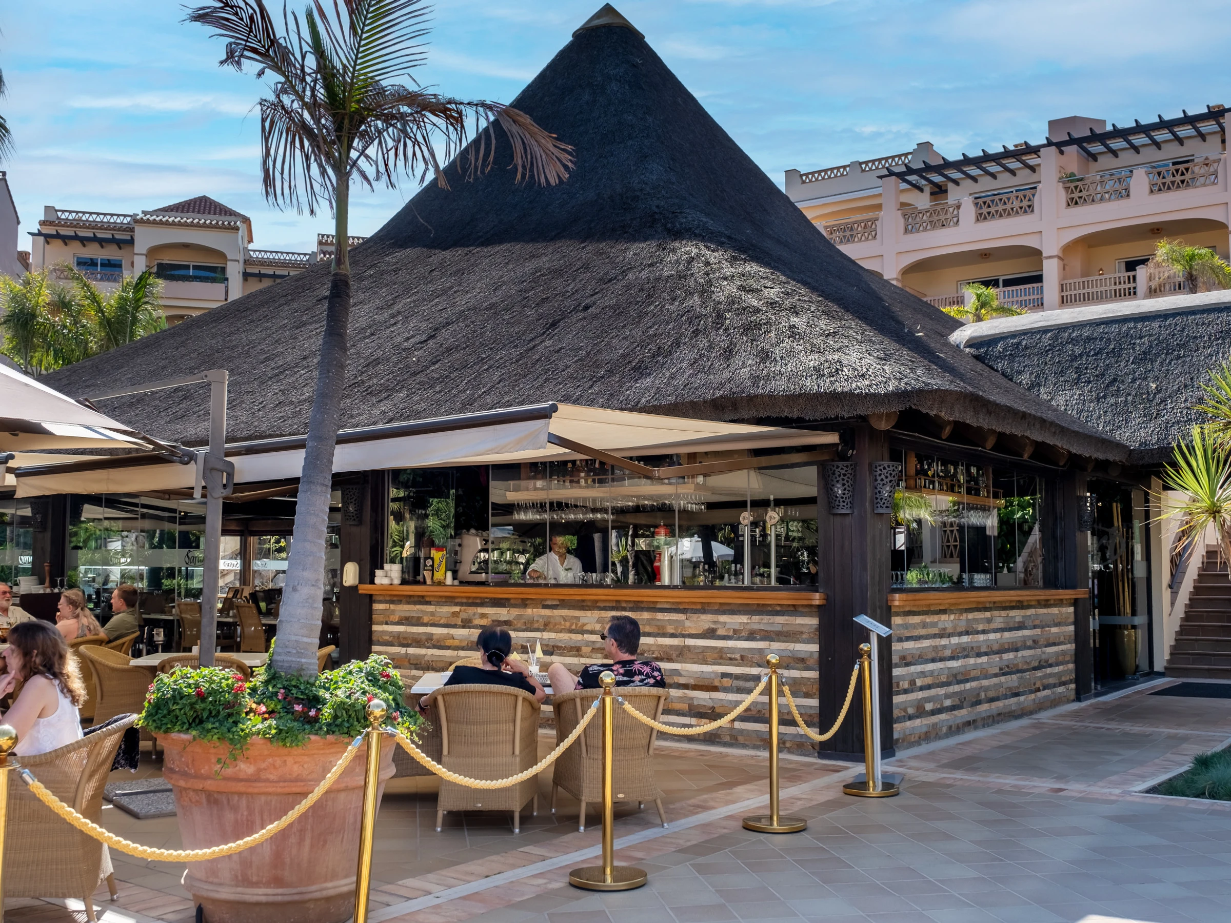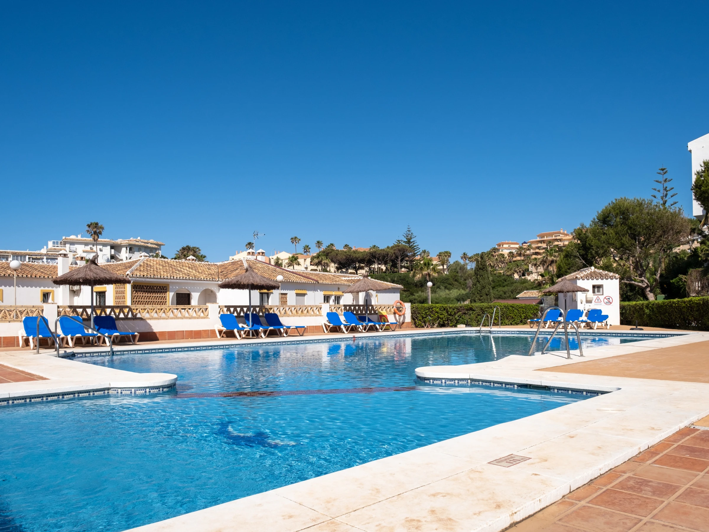 Die Unterkunft verfügt über gartenmöbel, 10 m² terrasse, waschmaschine, trockner, bügeleisen/-brett, safe, internet (WLAN), haartrockner, kinderbereich, tennisplatz, tischtennisplatte, alarm, heizung, klimaanlage, swimming-pool gemeinschaftlicher swimming pool + kinderbecken, klimatisierter pool gemeinschaftlicher swimming-pool, überdachter parkplatz in auf dem grundstück, 1 Fernseher, sat-tv (Sprachen: Spanisch), radio.
