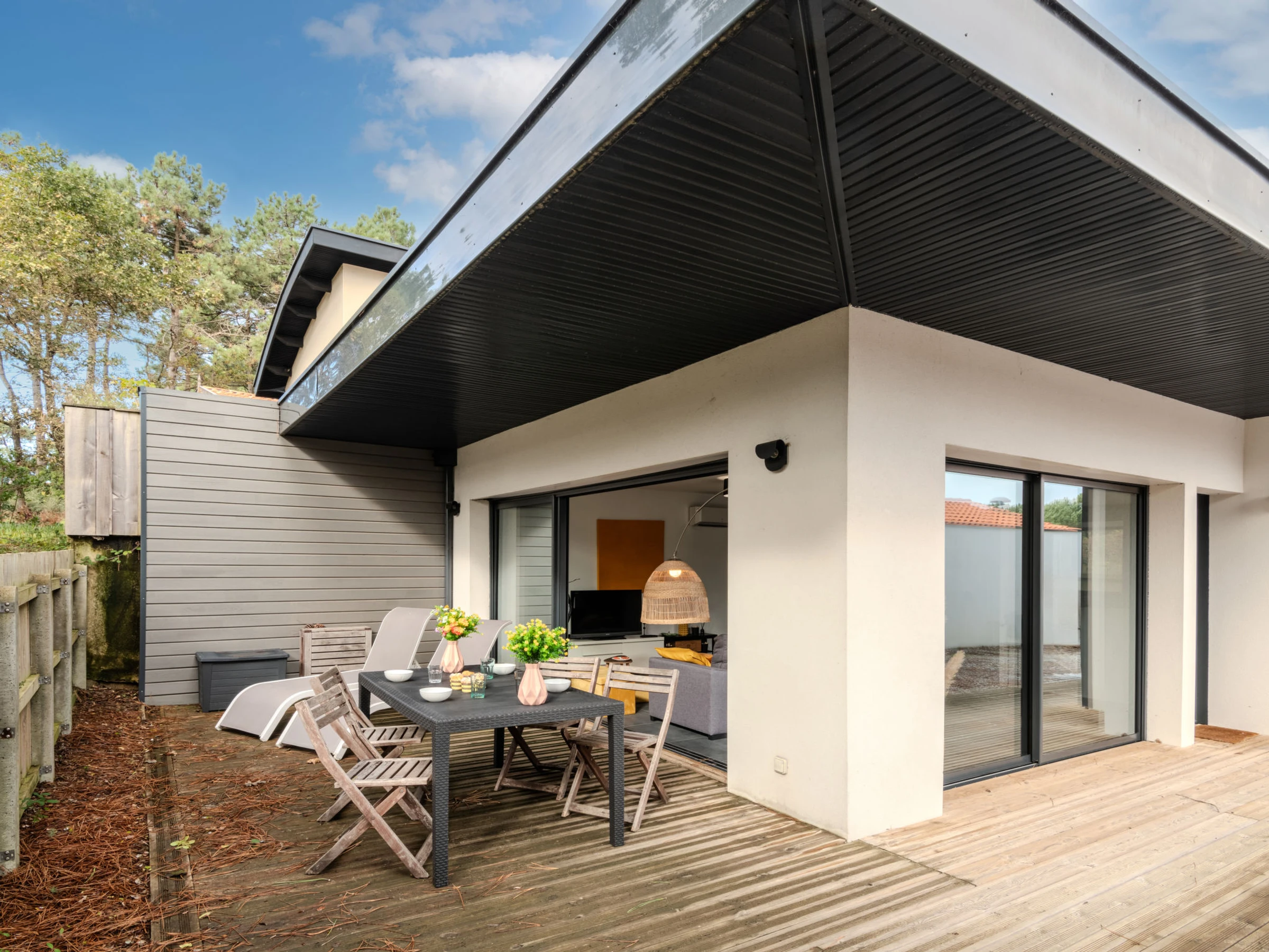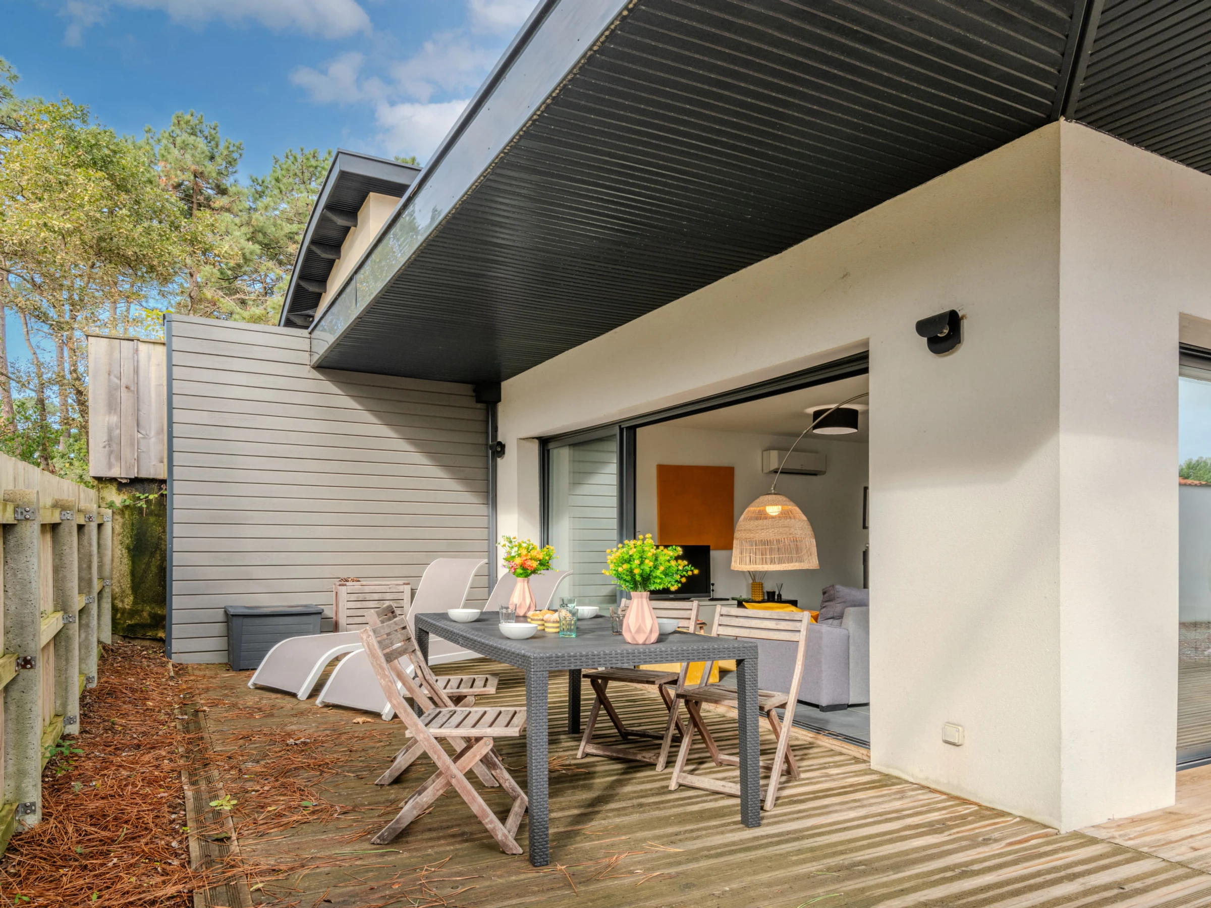 Mimizan Plage 1 km von Mimizan Plage: Einfamilienhaus "palot 17", Baujahr 2019. Im Ort, 700 m vom Zentrum von Mimizan Plage, verkehrsberuhigte Zone, 1 km vom Meer, 8 km vom See, 1 km vom Strand. Zur Alleinbenutzung: naturbelassenes Grundstück 150 m2. Terrasse (12 m2), Gartenmöbel, Grill. Im Hause: Wireless LAN, Klimaanlage, Waschmaschine, Wäschetrockner. Parkplatz. Einkaufsgeschäft, Lebensmittelgeschäft 700 m, Einkaufszentrum 6 km, Restaurant, Fahrradverleih 700 m, Bushaltestelle 600 m, Sandstrand "La Garluche" 1 km, Hallenbad 7 km, Badesee "Aureilhan" 9 km. Golfplatz (9 Loch) 10 km, Surfschule 1 km, Reitstall 10 km, Radweg 100 m. Nahe gelegene Sehenswürdigkeiten: skate parc 200 m, Au Paradis Du Papillon 48 km, Eco Musée de la Marquèze 47 km, Parc Aventure Accrobranche 7 km.