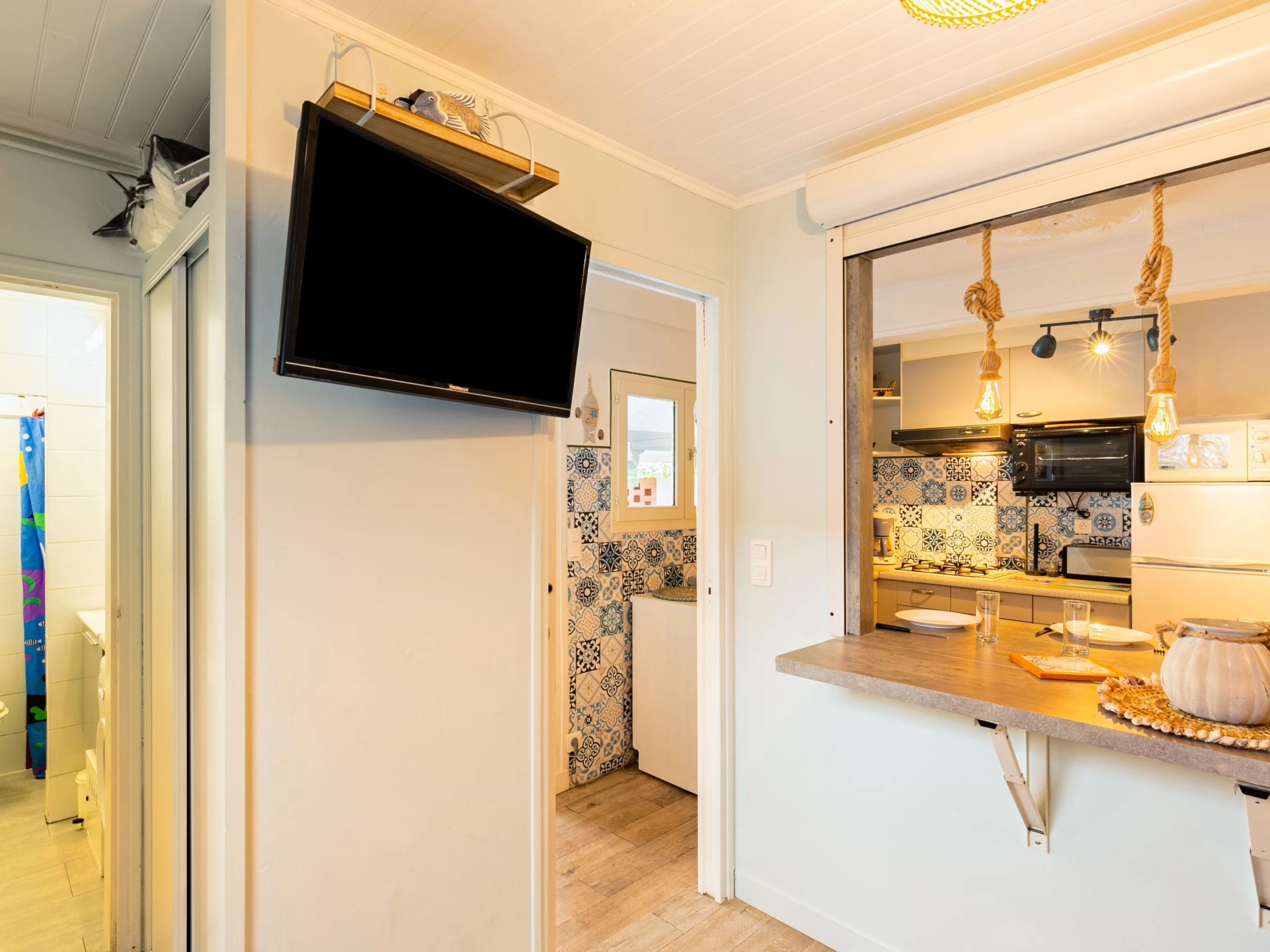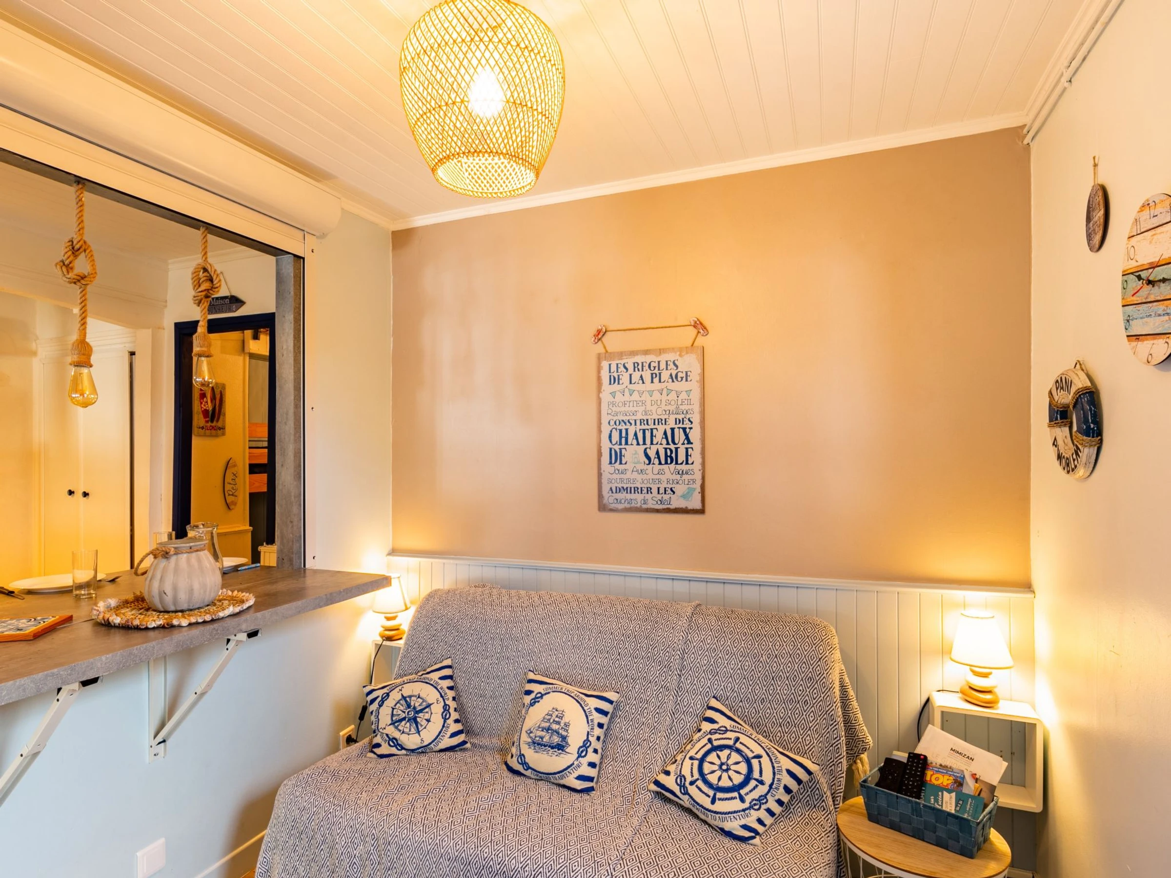 "Agur", 3-Zimmer-Reihenhaus 37 m2, im Erdgeschoss. Komfortabel und schön eingerichtet: Salon mit 1 Doppeldiwanbett (1 x 140 cm, Länge 190 cm), TV und Internationale TV-Sender (Flachbildschirm). 1 Zimmer mit 1 franz. Bett (160 cm, Länge 200 cm), TV (Flachbildschirm). Kabine mit 1 x 2 Etagenbetten (90 cm, Länge 190 cm). Offene Küche (Geschirrspüler, 1 Induktionskochplatten, 3 Flammen, Toaster, Wasserkocher, Mikrowelle, elektrische Kaffeemaschine) mit Durchreiche. 2 Duschen/WC. E-Heizung. Terrassenmöbel. Zur Verfügung: Waschmaschine, Bügeleisen, Kinderhochstuhl, Babybett. Internet (WLAN). Parkplatz Nr. 10 accès délicat (1 Auto). Bitte beachten: Nichtraucher-Haus. Maximal 1 kleines Haustier/Hund erlaubt. Anstelle eines abgeschlossenen Schlafzimmers befinden sich manche Schlafplätze in einem offenen Bereich (Galerie, Nische etc.).