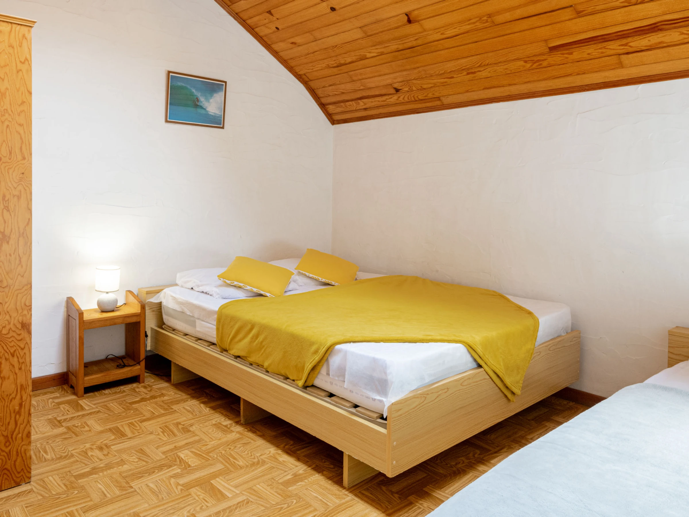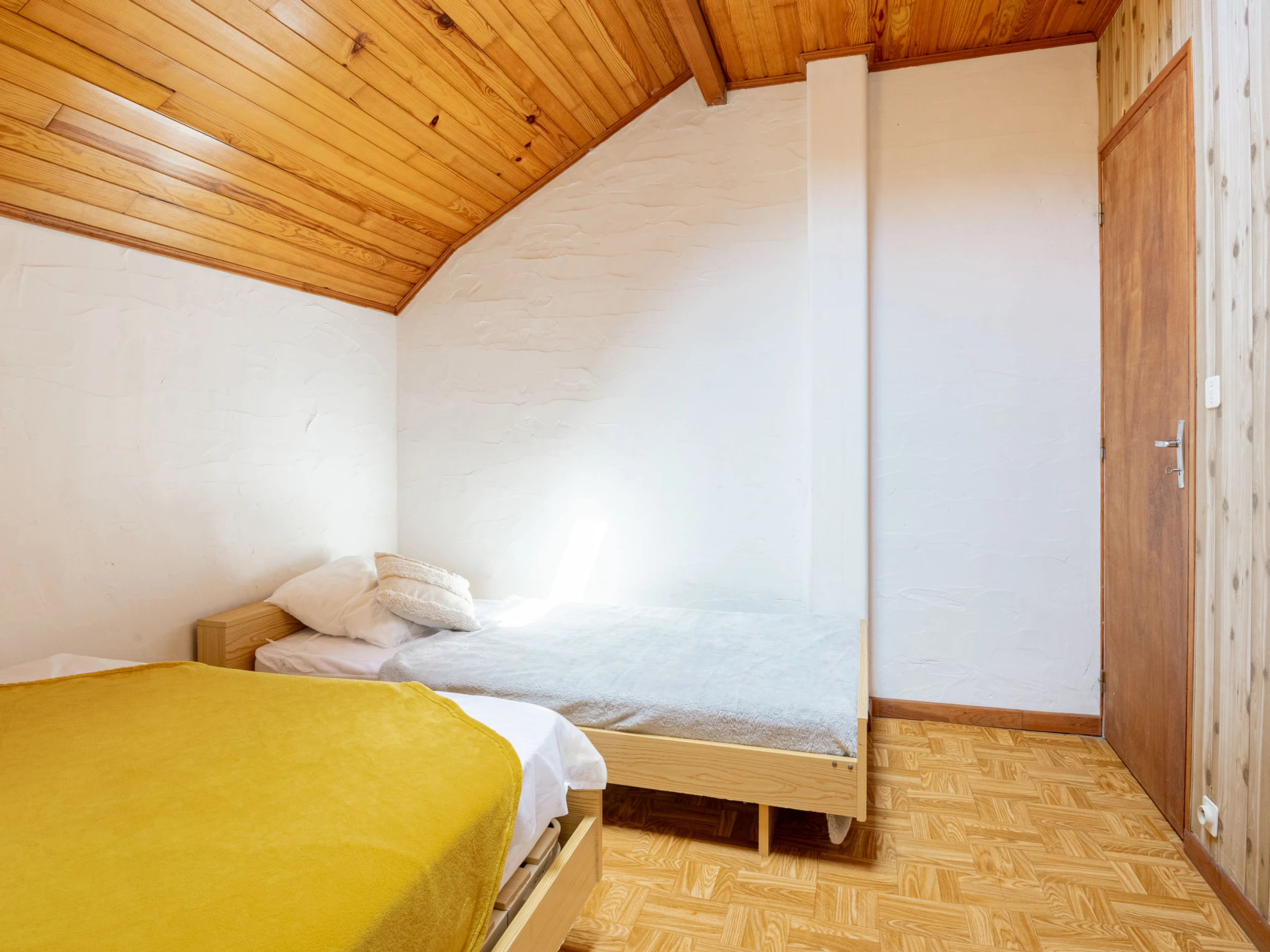 3-Zimmer-Reihenhaus 50 m2 auf 2 Stockwerken. Einfach eingerichtet: Wohn-/Esszimmer mit TV und Internationale TV-Sender (Flachbildschirm). Ausgang zur Terrasse. Kochnische (1 Kochplatte, Mini-Backofen, 4 Flammen, Wasserkocher, Mikrowelle, elektrische Kaffeemaschine, Kapseln für die Kaffeemaschine (filtre) extra). Dusche, sep. WC. Heizung nicht in allen Räumen. Obergeschoss: 1 abgeschrägtes Zimmer mit 1 franz. Bett (1 x 140 cm, Länge 190 cm). 1 abgeschrägtes Zimmer mit 1 Bett (90 cm, Länge 190 cm), 1 franz. Bett (1 x 140 cm, Länge 190 cm). Terrasse. Terrassenmöbel, Liegestühle (1). Zur Verfügung: Internet (WLAN, gratis). Bitte beachten: Maximal 1 Haustier/Hund erlaubt. Rauchmelder.