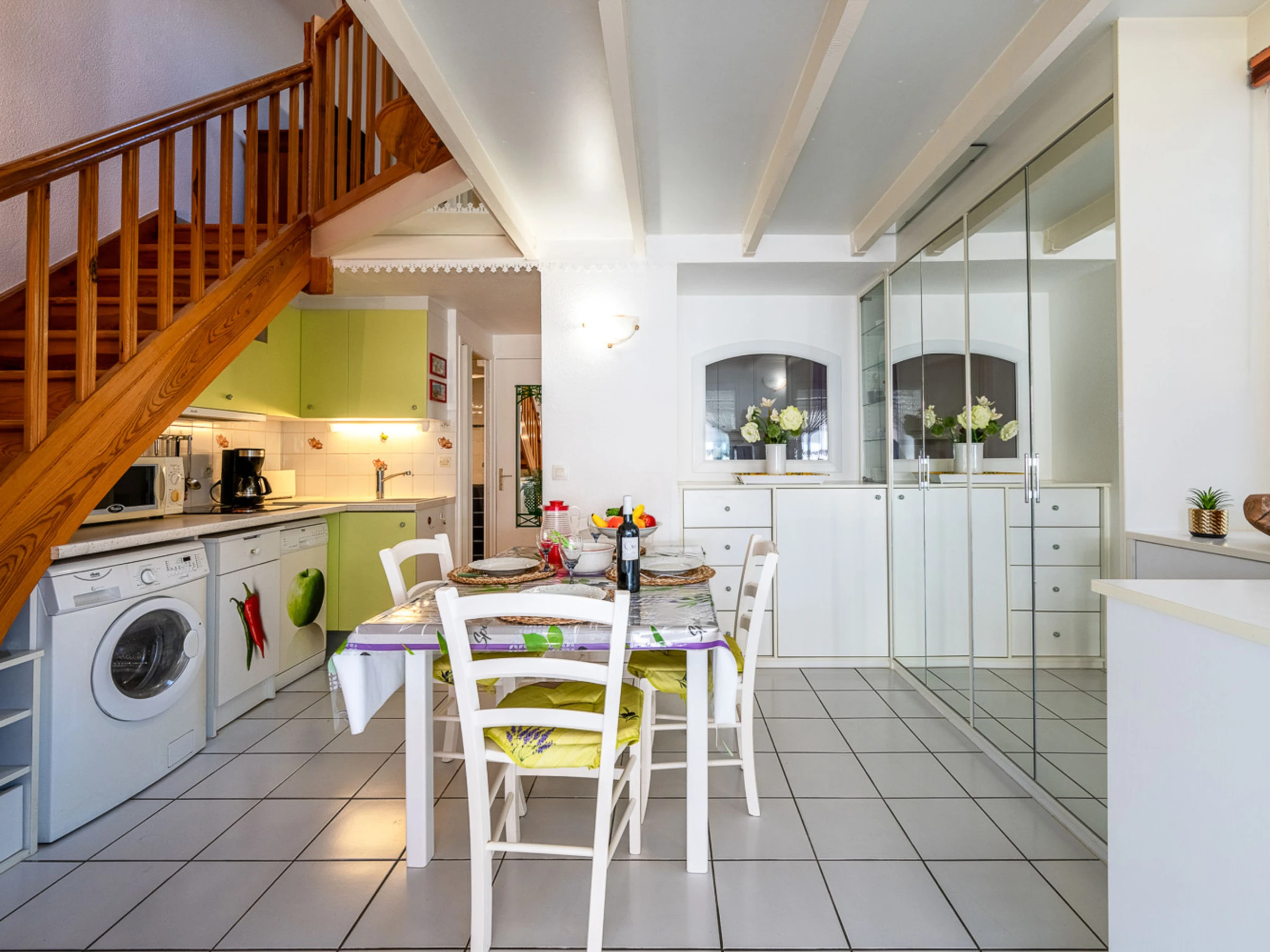 2-Zimmer-Reihenhaus 35 m2 auf 2 Stockwerken, Nordlage. Komfortabel und schön eingerichtet: Wohn-/Esszimmer mit Veranda mit TV (Flachbildschirm). Ausgang zur Terrasse. 1 Zimmer mit 1 franz. Bett (140 cm, Länge 190 cm). Offene Küche (Mini-Backofen, Geschirrspüler, 4 Glaskeramikplatten, Toaster, Wasserkocher, Mikrowelle, Tiefkühler, elektrische Kaffeemaschine). Dusche, sep. WC. E-Heizung, Klimaanlage. Obergeschoss: Galerie mit 2 Betten (90 cm, Länge 190 cm). Terrasse 15 m2. Terrassenmöbel, Elektrogrill. Zur Verfügung: Waschmaschine. Internet (Wireless LAN, extra). Parkplatz. Bitte beachten: Rauchmelder. Inserat einer Privatperson nach Artikel 155, IV, CGI.
