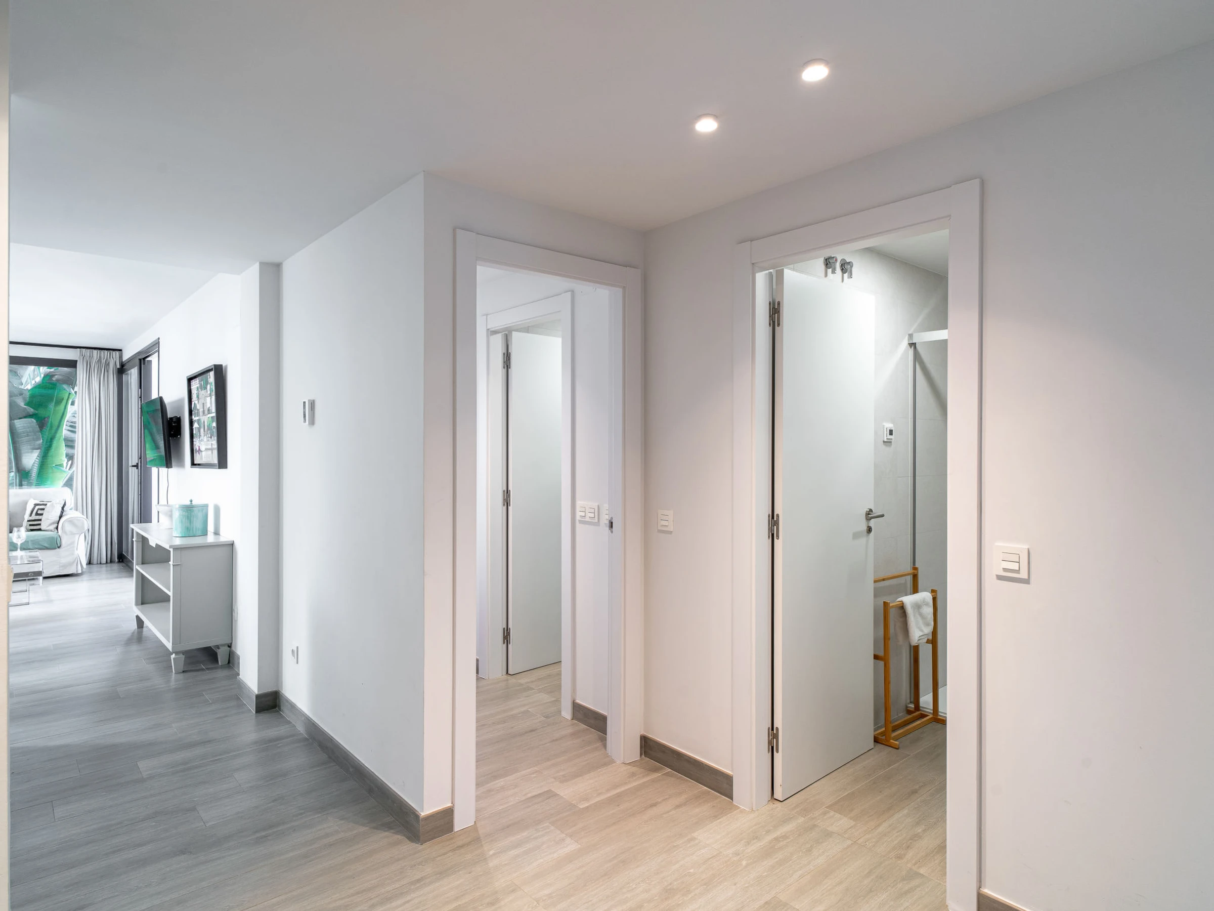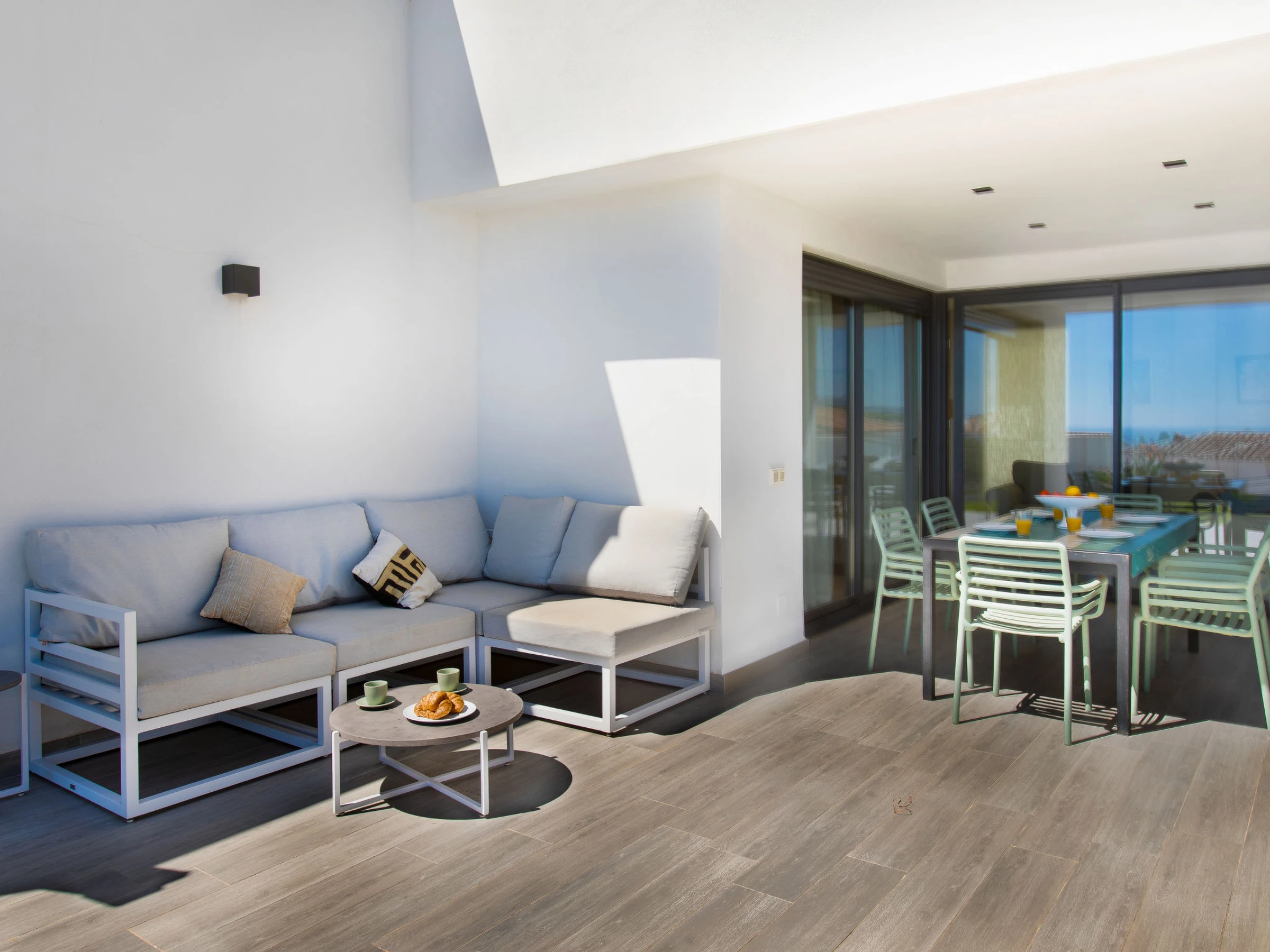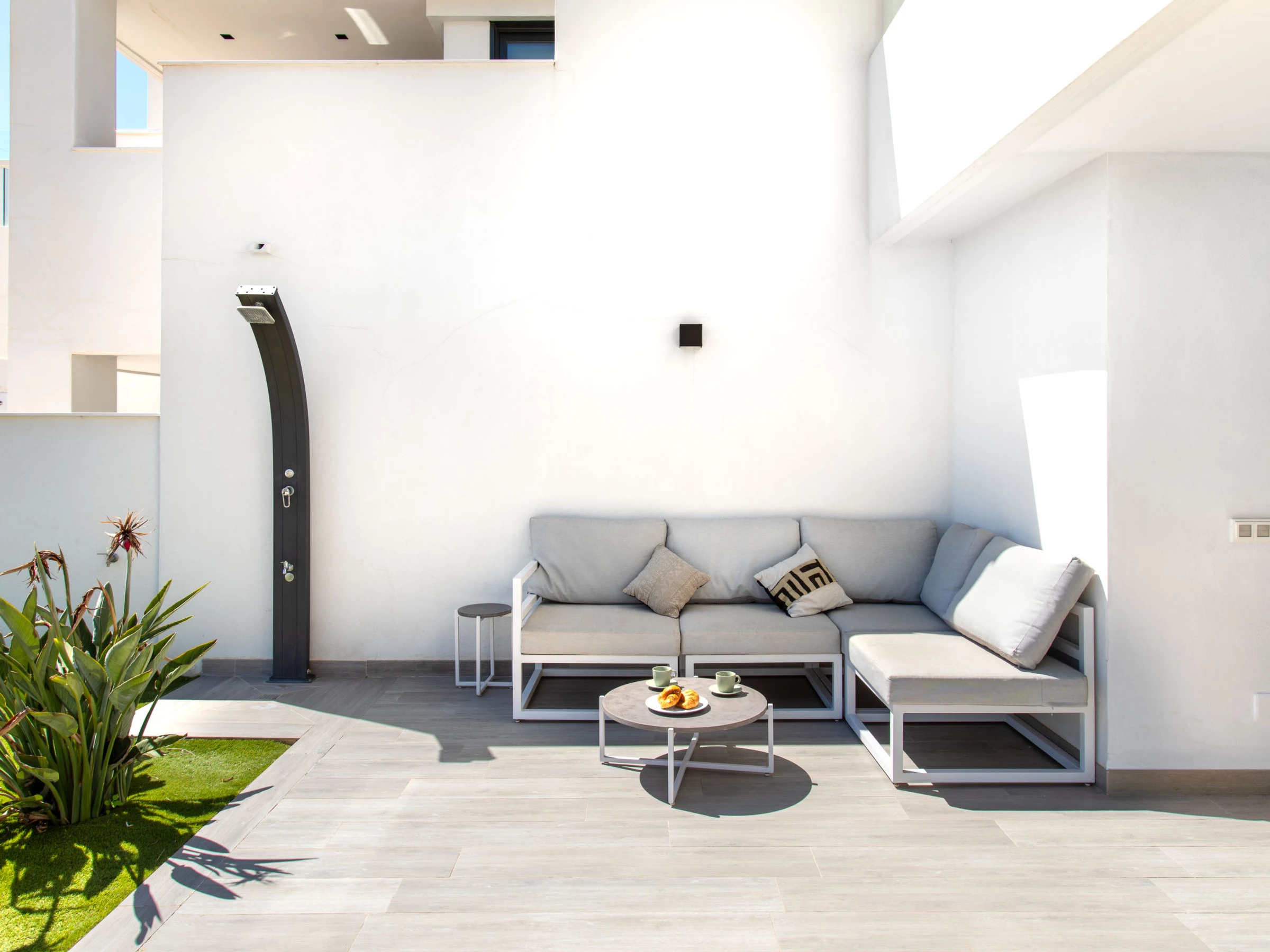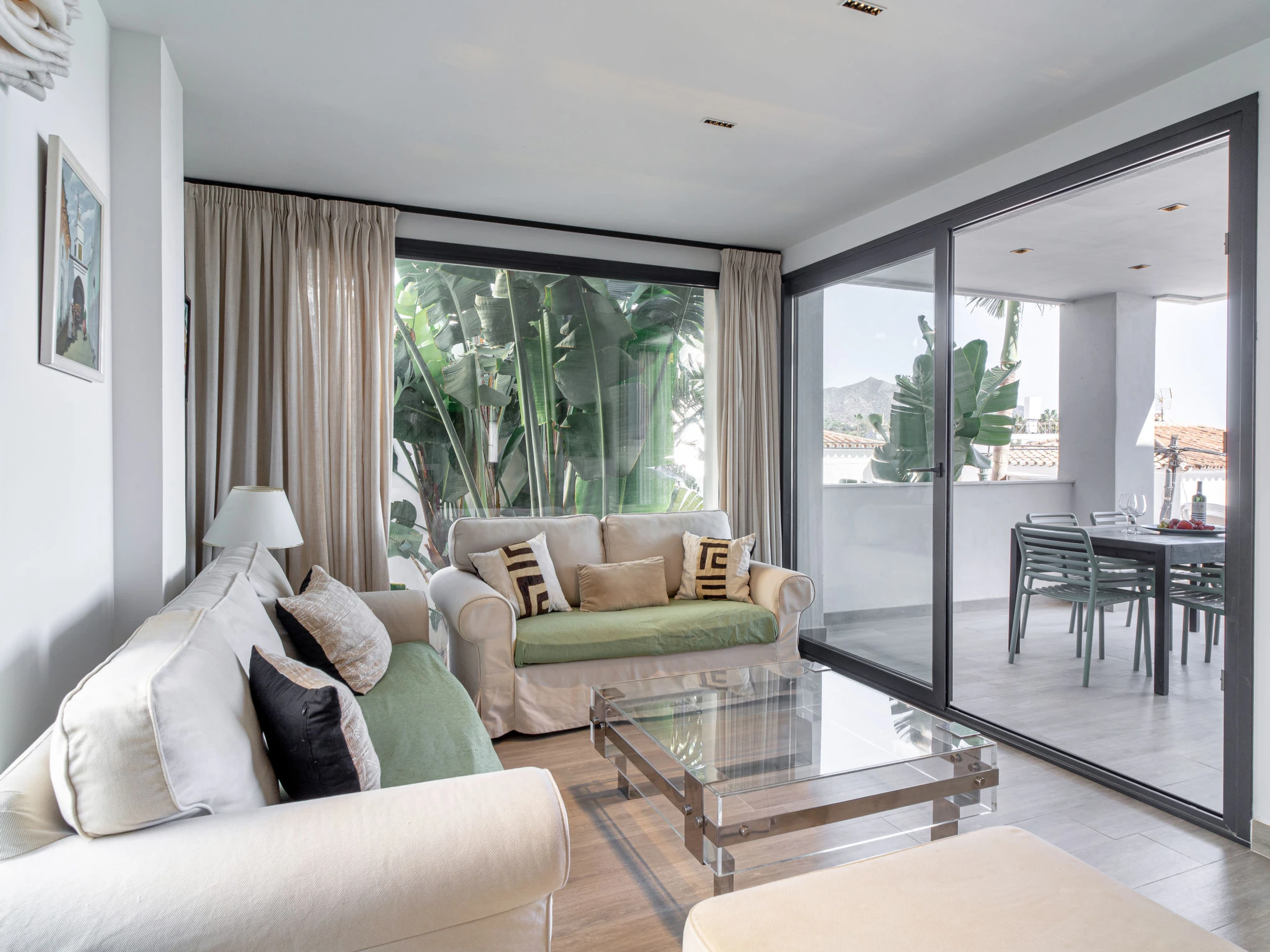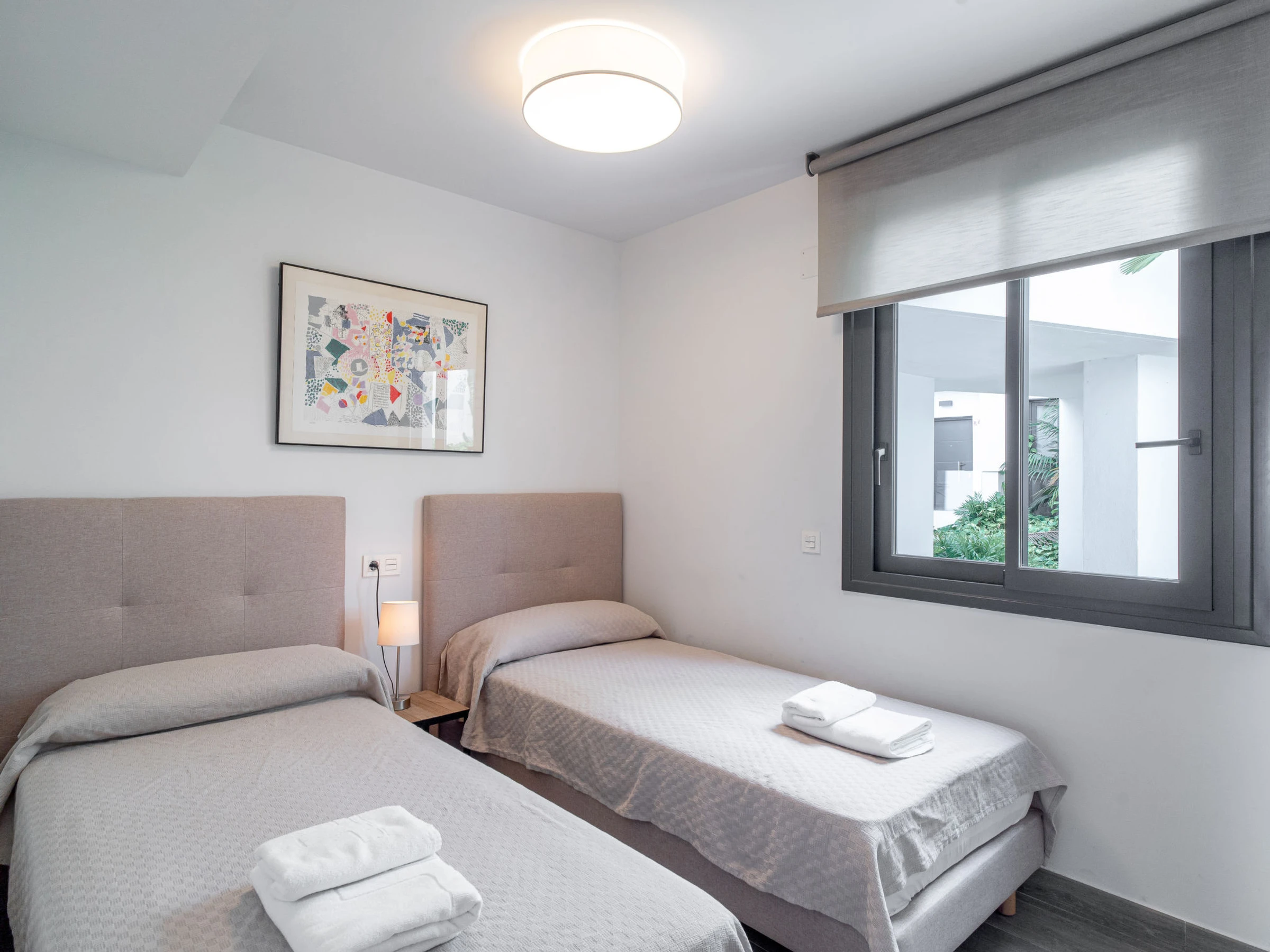 "Royal Beach Nerja", 4-Zimmer-Doppelhaushälfte 120 m2, Südlage. Hell, komfortabel und modern eingerichtet: Wohn-/Esszimmer mit Esstisch, TV, Internationale TV-Sender, Klimaanlage und Warmluftheizung. Ausgang zum Gartensitzplatz. 1 Zimmer mit 2 Betten (90 cm, Länge 190 cm), Klimaanlage und Warmluftheizung. 1 Zimmer mit 2 Betten (90 cm, Länge 190 cm), Klimaanlage und Warmluftheizung. 1 Zimmer mit 1 franz. Bett (150 cm, Länge 190 cm), Dusche/WC (privat) Klimaanlage, Warmluftheizung und elektrischem Rollladen. Ausgang zum Gartensitzplatz. Offene Küche (Backofen, Geschirrspüler, 3 Induktionskochplatten, Toaster, Wasserkocher, Mikrowelle, Tiefkühler, elektrische Kaffeemaschine) mit Bar. Dusche/WC. E-Heizung. Parkettboden. Grosse Terrasse. Terrassenmöbel, Gartengrill, Liegestühle. Seitliche Sicht auf das Meer und die Berge. Zur Verfügung: Waschmaschine, Bügeleisen, Kinderhochstuhl, Babybett bis 3 Jahre, Haartrockner. Internet (WLAN, gratis). Geeignet für Familien. [hidden] // Reg. Nr.: ESFCTU0000290130010852540000000000000000VFT/MA/510758