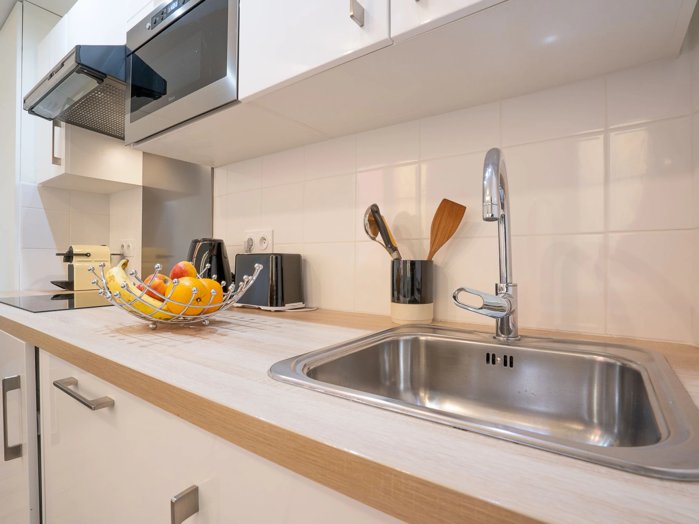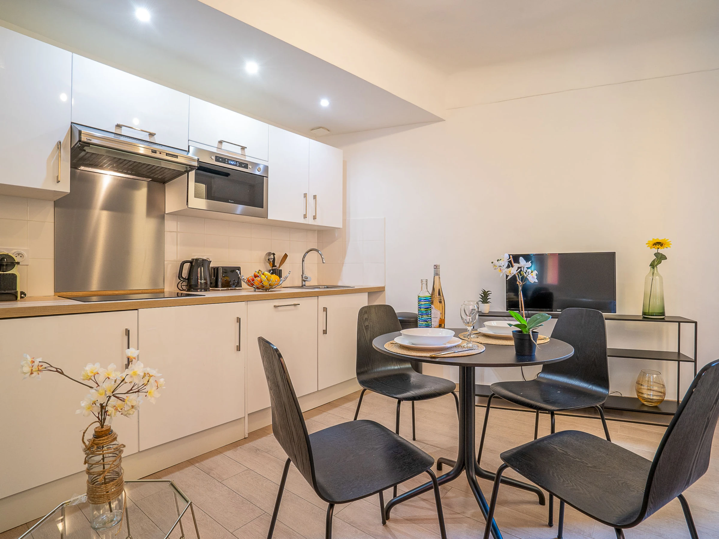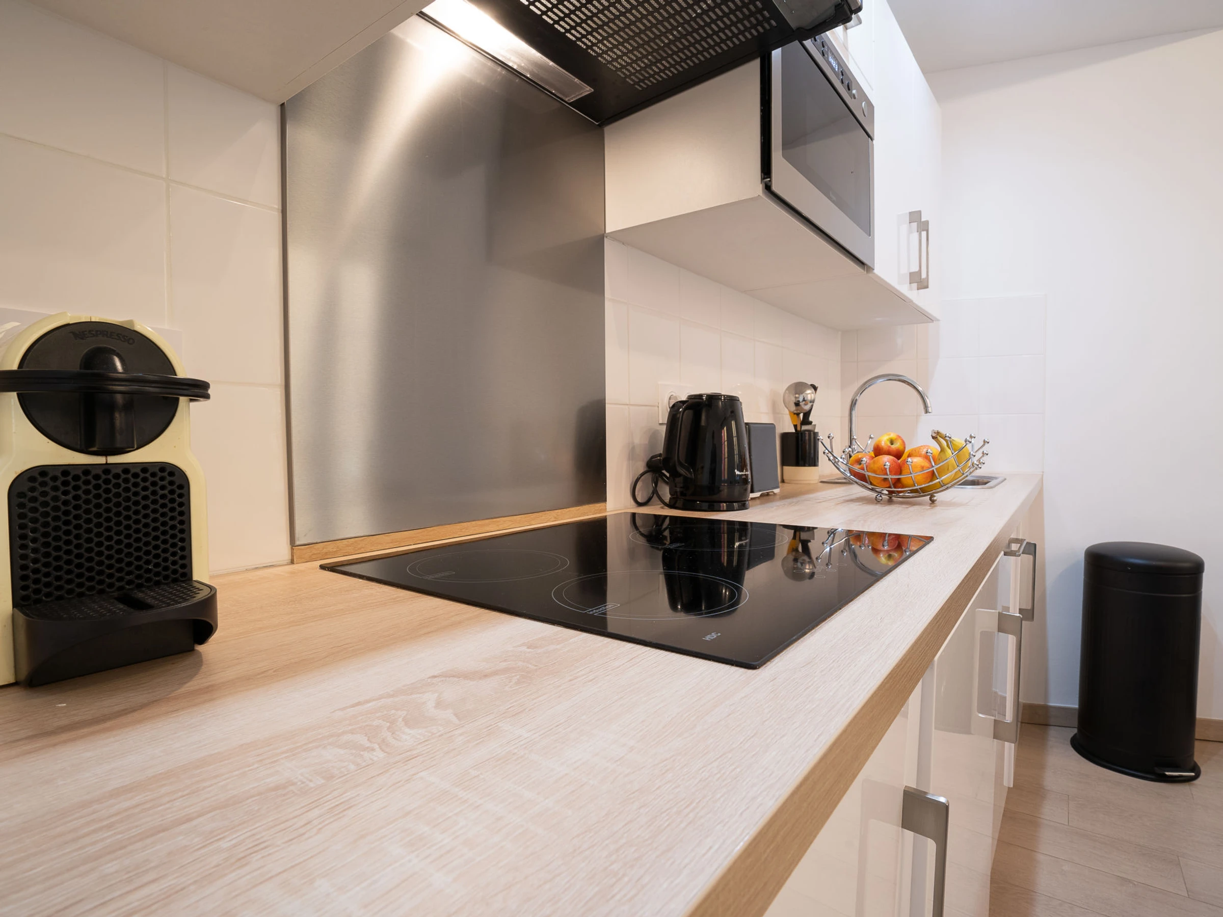 2-Zimmer-Wohnung 37 m2, im erhöhten Erdgeschoss. Geräumig und hell, vollständig renoviert im Jahre 2021, schön und modern eingerichtet: Wohn-/Esszimmer mit TV (Flachbildschirm), Klimaanlage. 1 grosses Zimmer mit 1 franz. Bett (140 cm, Länge 190 cm), Dusche. Offene Küche (Backofen, Geschirrspüler, Toaster, Wasserkocher, Mikrowelle, elektrische Kaffeemaschine, Kapseln für die Kaffeemaschine (Nespresso) extra). Sep. WC. Heizung, Klimaanlage. Parkettboden. Zur Verfügung: Waschmaschine, Bügeleisen, Haartrockner. Internet (Wireless LAN, gratis). Bitte beachten: Nichtraucher-Unterkunft. Rauchmelder. [hidden]