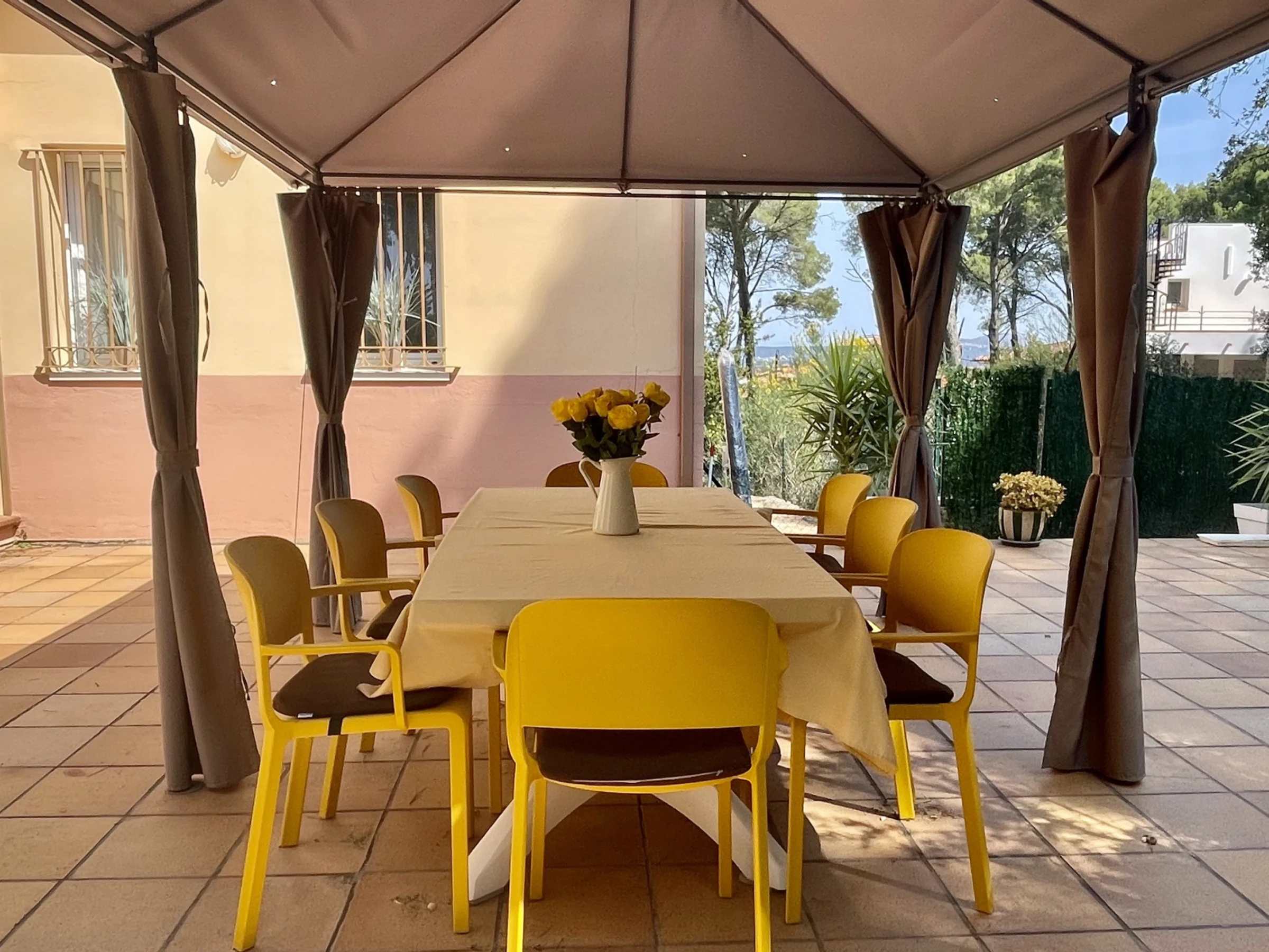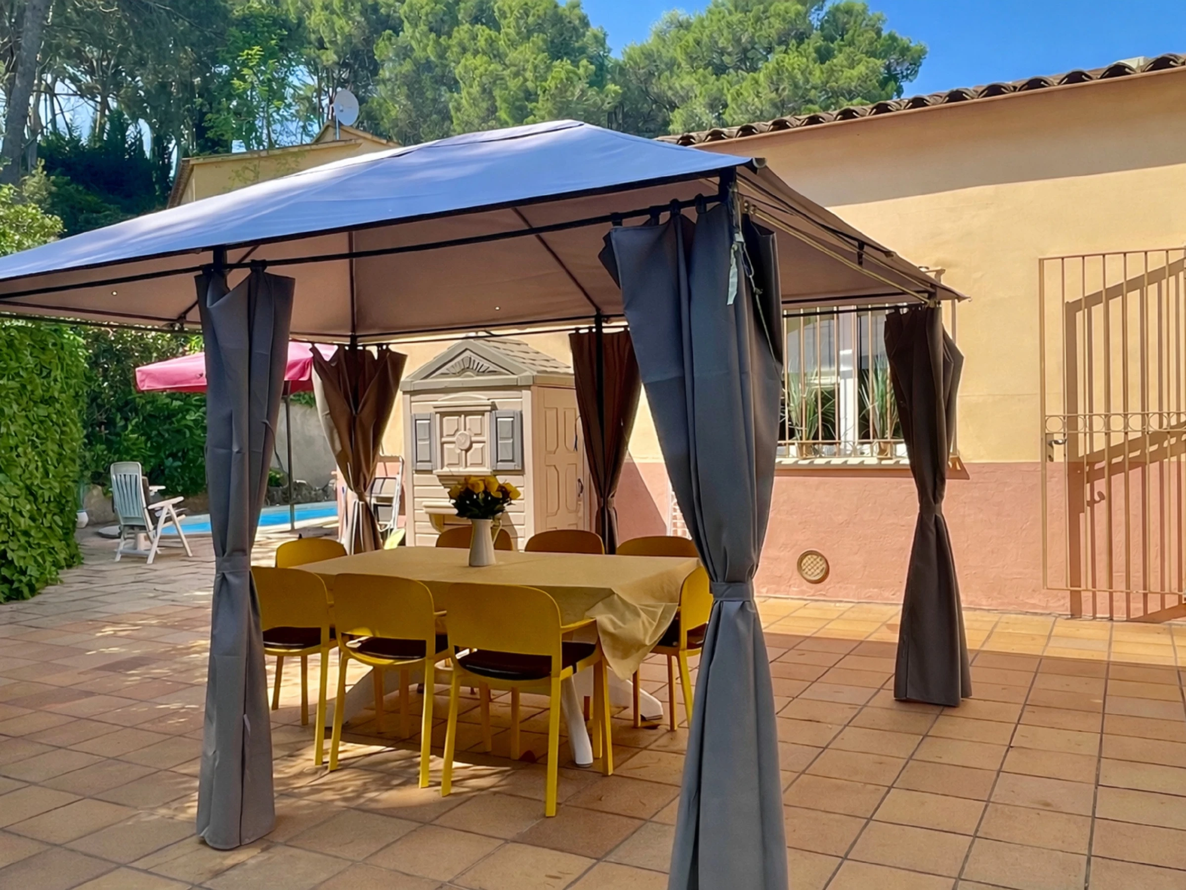 Dieses geräumige Haus verfügt über einen privaten Pool, der den Gästen die Möglichkeit bietet, sich abzukühlen und unter der Sonne Spaß zu haben. Der Garten, der das Anwesen umgibt, bietet zudem eine ruhige und entspannte Atmosphäre, ideal zum Essen im Freien oder einfach nur zum Ausruhen in einer natürlichen Umgebung.