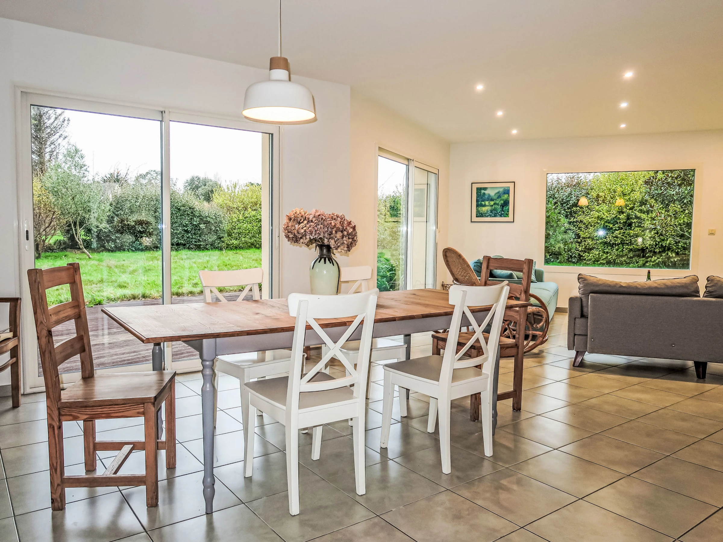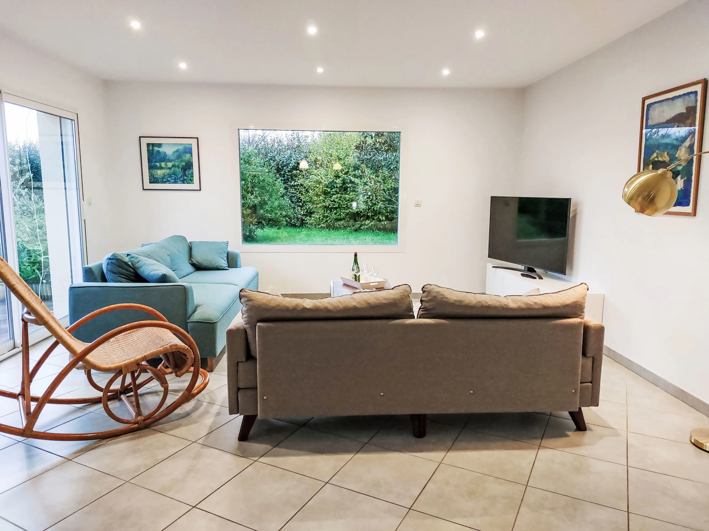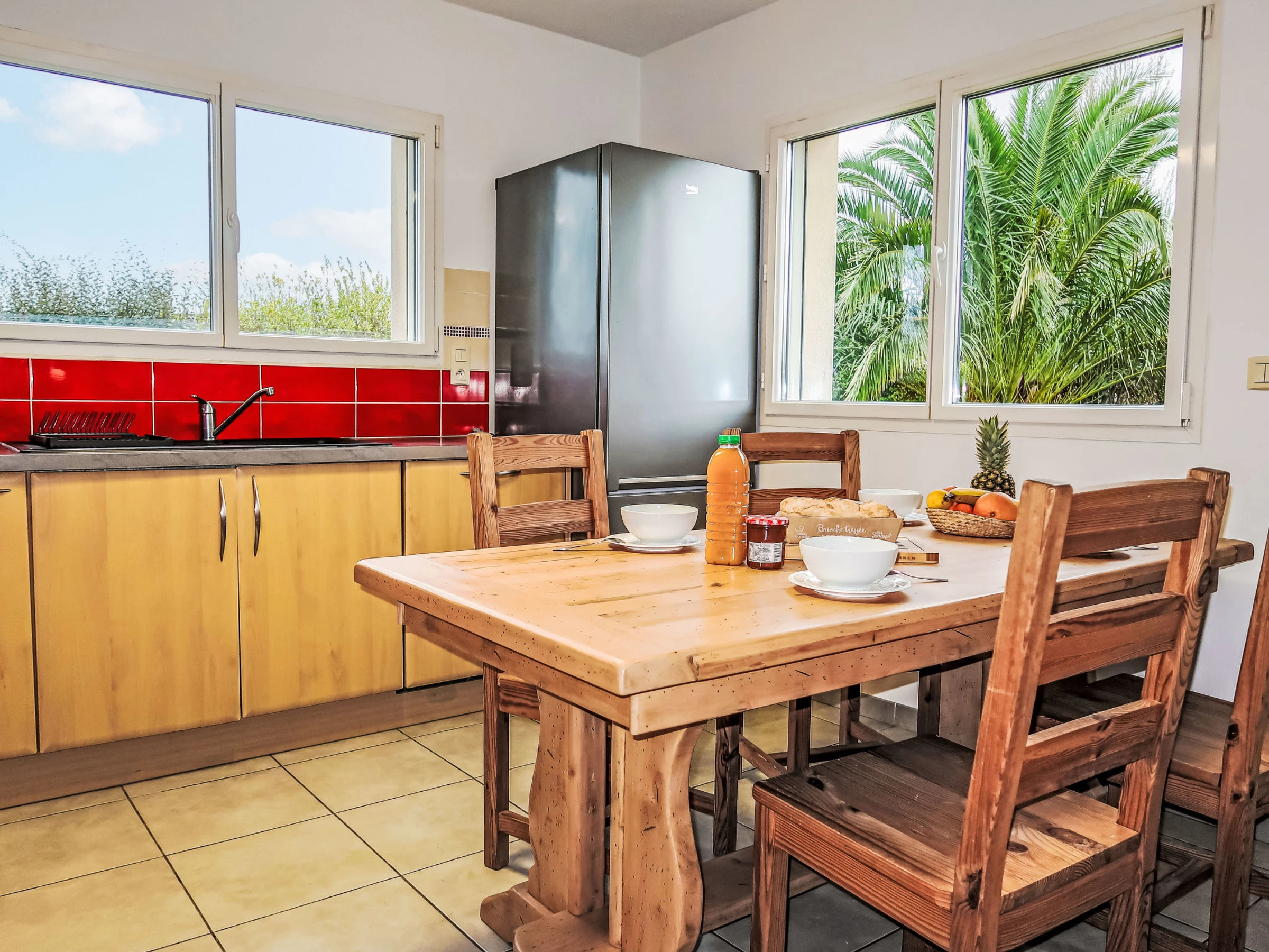 "villa La Clarté", 5-Zimmer-Haus 135 m2 auf 2 Stockwerken, Südlage. Komfortabel eingerichtet: Eingang. Grosses Wohn-/Esszimmer mit TV (Flachbildschirm). Ausgang zur Terrasse. 1 Zimmer mit begehbarem Kleiderschrank mit 1 franz. Bett (160 cm, Länge 200 cm), Dusche. Ausgang zur Terrasse. Offene Küche (Backofen, Geschirrspüler, 3 Flammen, Toaster, Wasserkocher, Mikrowelle, Tiefkühler, elektrische Kaffeemaschine) mit Essecke. Sep. WC. Fussbodenheizung. Obergeschoss: 2 Zimmer, jedes Zimmer mit 2 Betten (90 cm, Länge 200 cm). 1 Zimmer mit 1 franz. Bett (160 cm, Länge 120 cm). Bad/Dusche, sep. WC, Doppelwaschbecken. G-Heizung. Terrasse 25 m2. Terrassenmöbel, Liegestühle (2). Zur Verfügung: Waschmaschine, Wäschetrockner, Haartrockner. Bitte beachten: Nichtraucher-Haus. Rauchmelder. Inserat einer Privatperson nach Artikel 155, IV, CGI.
