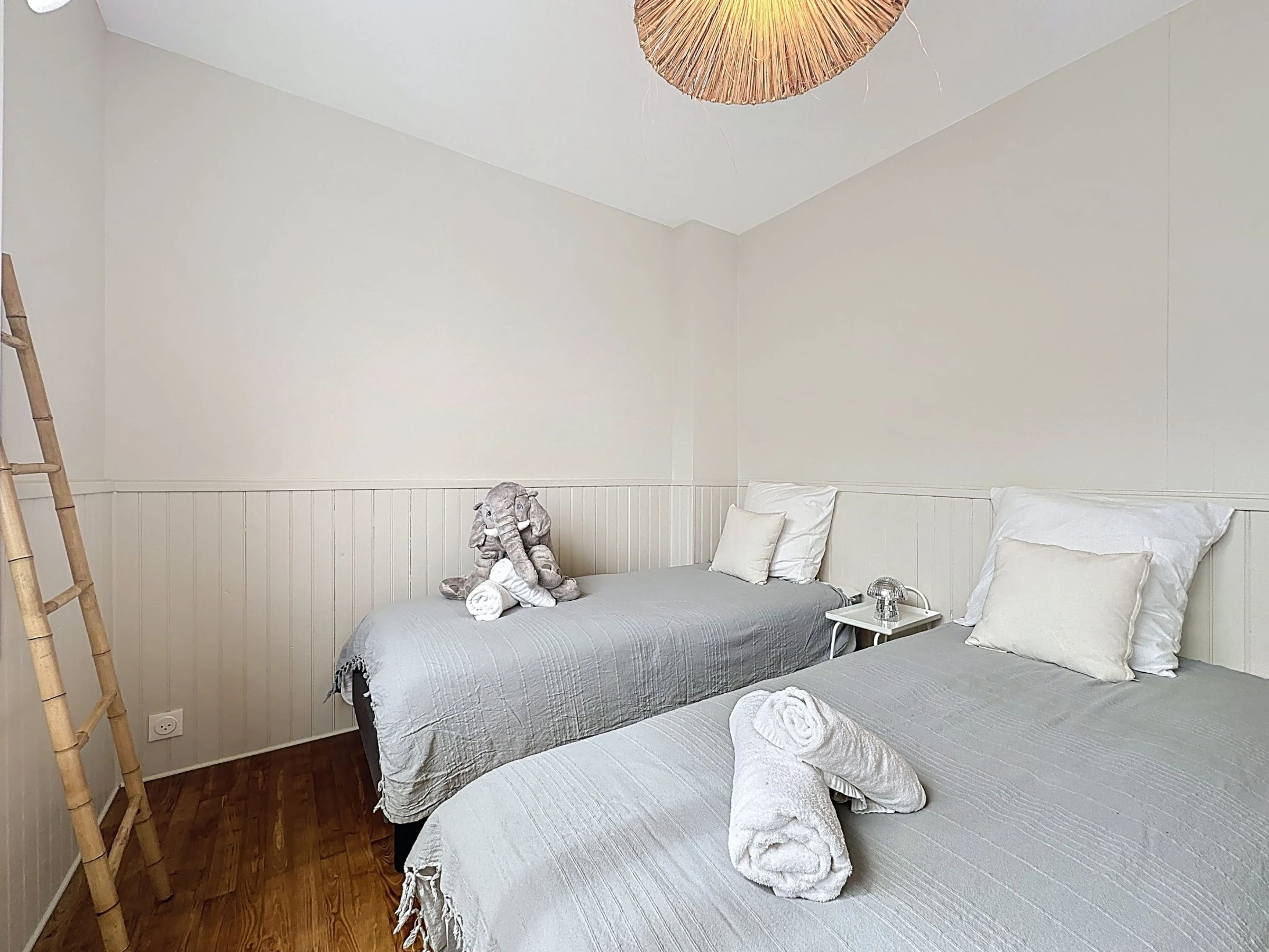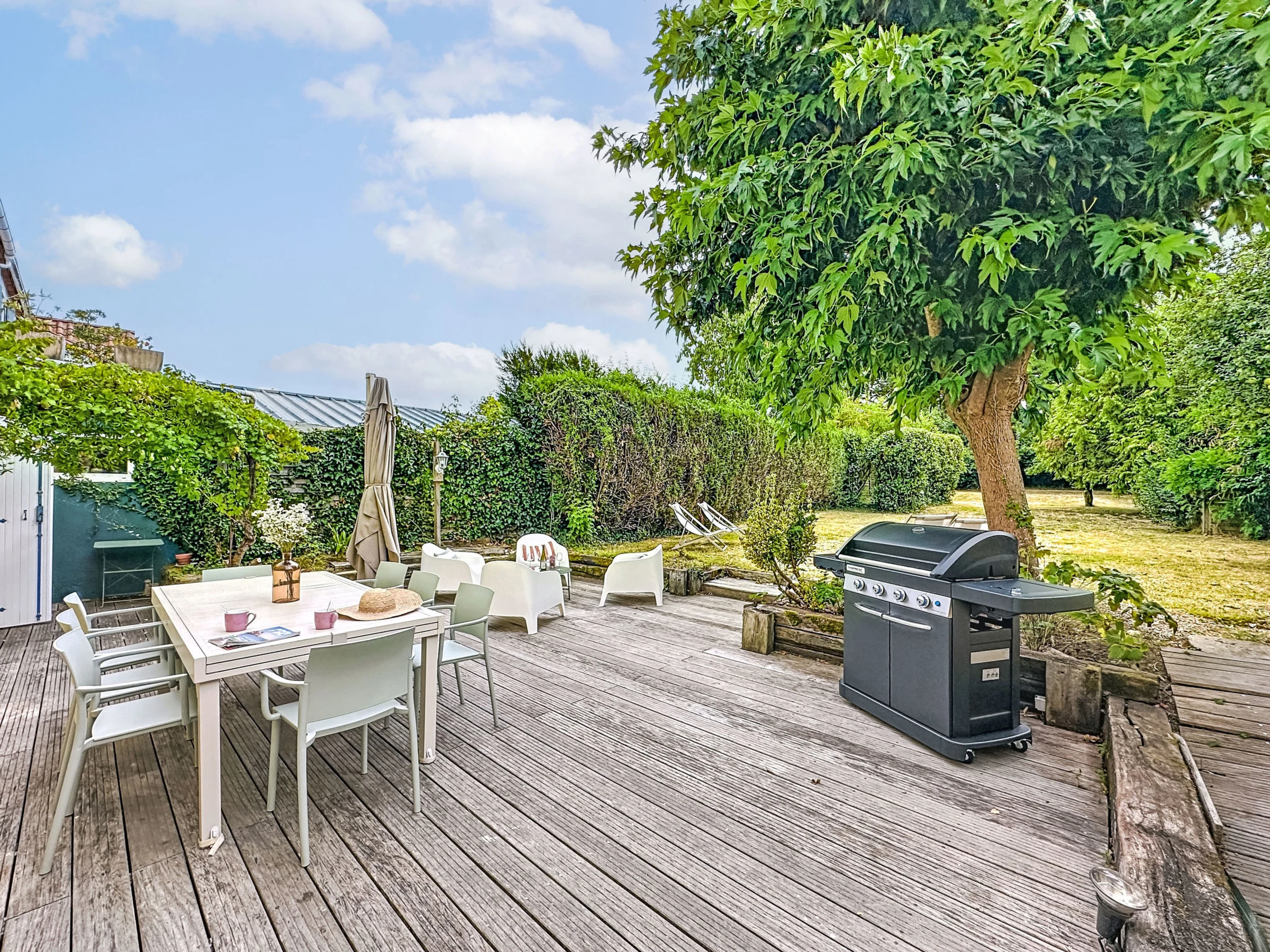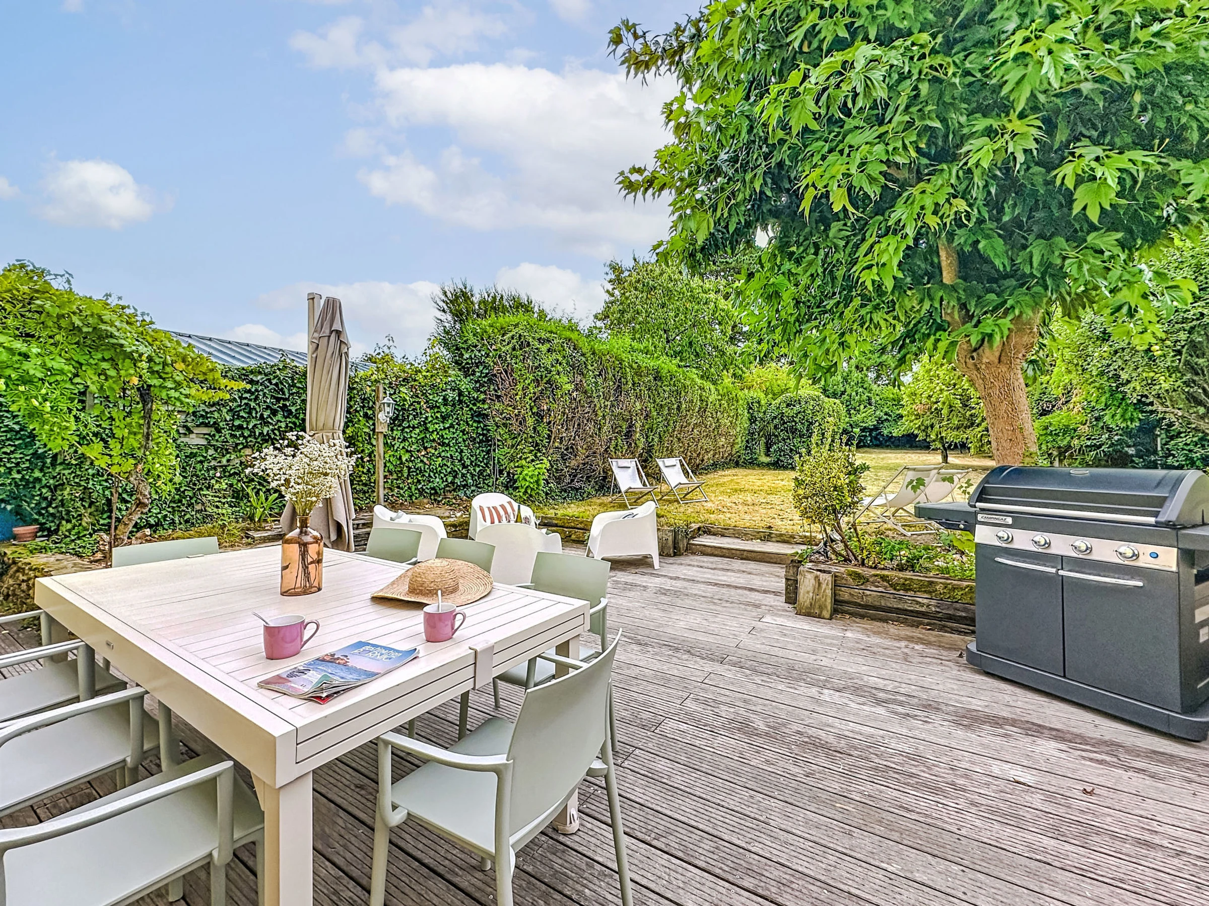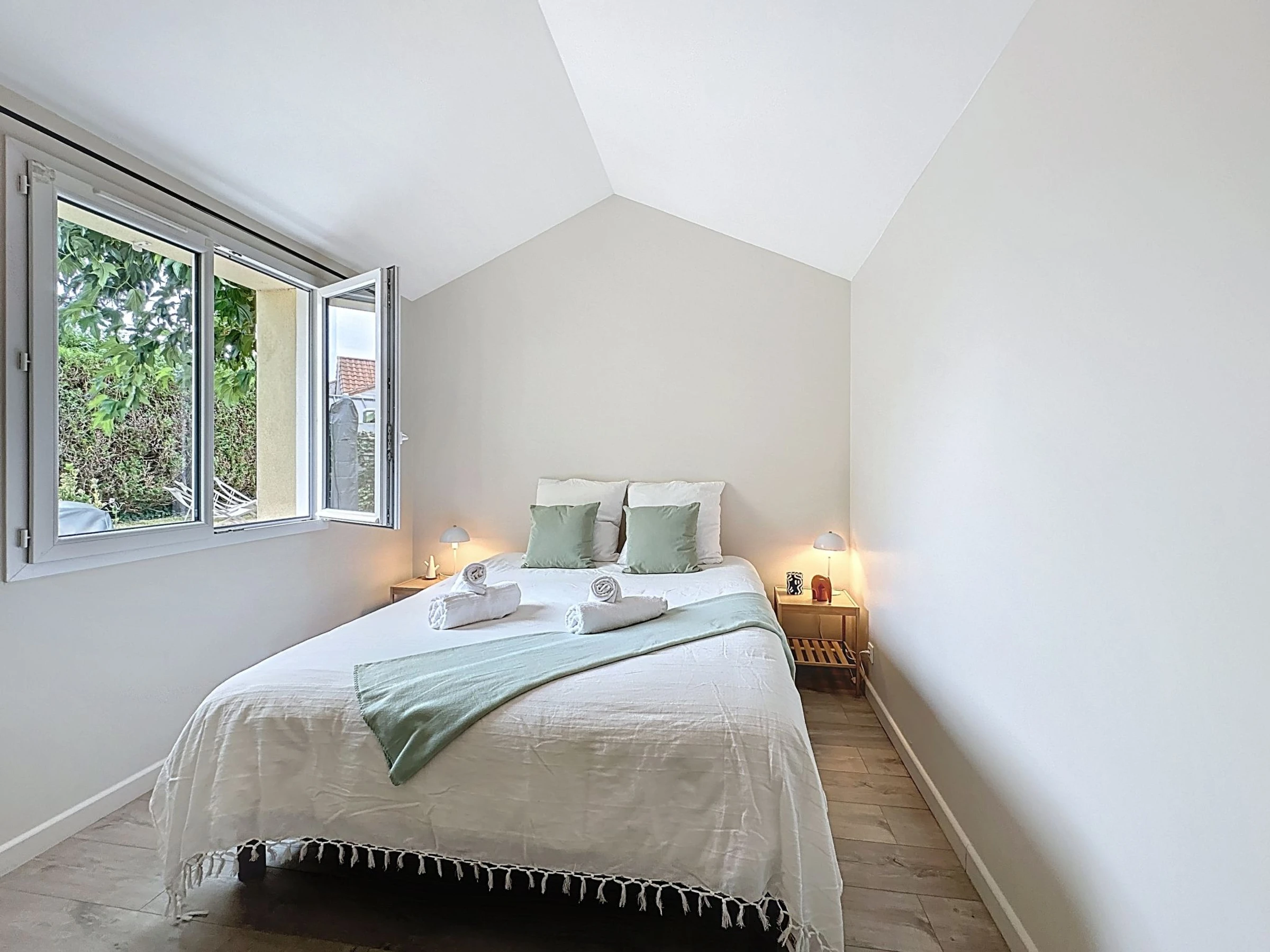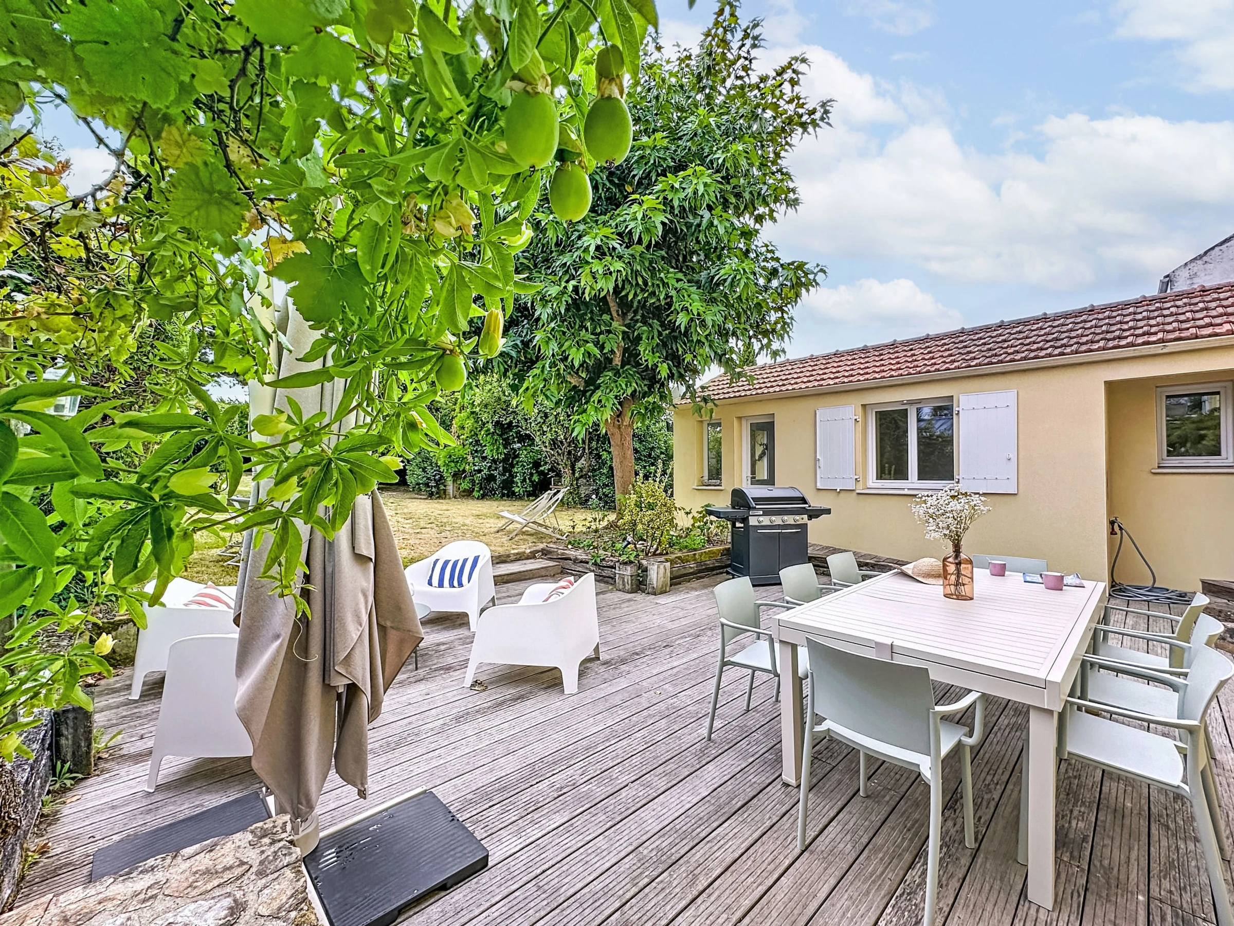Grosses, schönes Reihenhaus "La Nero", auf 2 Stockwerken, renoviert im Jahre 2025. Im Ortszentrum von Pornic, exzellente Lage: Absolut zentral und dennoch ruhig, 800 m vom Meer, 1 km vom Strand, Richtung Süden. Zur Alleinbenutzung: grosser, gepflegter Garten 700 m2 (eingezäunt). Terrasse (40 m2), Gartenmöbel, Grill, öffentliche Parkplätze auf der Strasse. Supermarkt 100 m, Restaurant 600 m, Bäckerei 50 m, Café 30 m, Fahrradverleih 700 m, Zentrum zu Fuss in 5 Minuten erreichbar, Bushaltestelle "Gare de Pornic" 600 m, Bahnstation "Pornic" 600 m, Sandstrand "Plage de la Source" 1 km, Hallenbad 2 km, Thermalbad "Alliance Pornic Thalasso & Spa" 1 km. Sporthafen 600 m, Golfplatz (18 Loch) 3 km, Segelschule 2 km, Minigolf 3 km, Reitstall 4 km, Sportzentrum 2 km, Wanderwege ab Haus 1 km. Nahe gelegene Sehenswürdigkeiten: Faïencerie de Pornic 2 km, Pornic Aventure Accrobranche 3 km, Legendia Parc 20 km, Planète Sauvage 30 km, Les Machines de l'Ile de Nantes 49 km, Ile de Noirmoutier 59 km. Bekannte Seen in der Umgebung sind gut erreichbar: Lac de Saint Viaud 20 km. Wandergebiete: Sentier des Douaniers 1 km. Die Schlüsselübergabe findet bei der Agentur in Pornic statt, 1 km. Die Nachbarschaft ist sehr lärmempfindlich. Ruhe und gutes Benehmen wird erwartet.