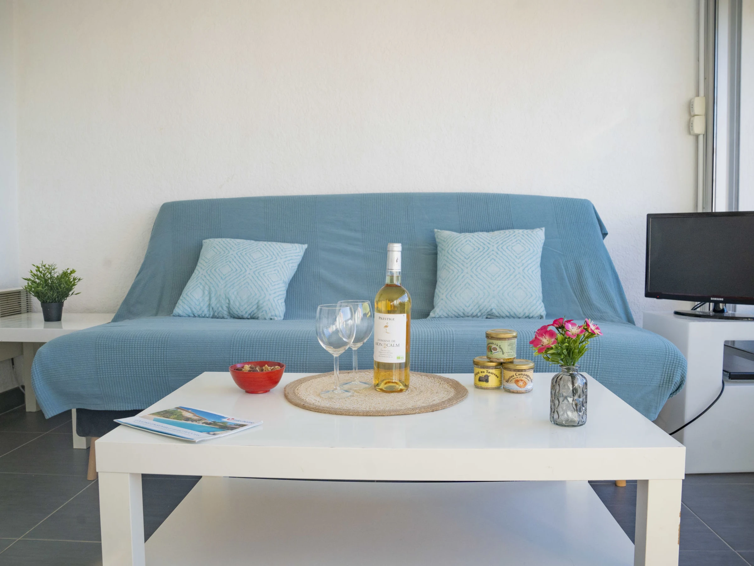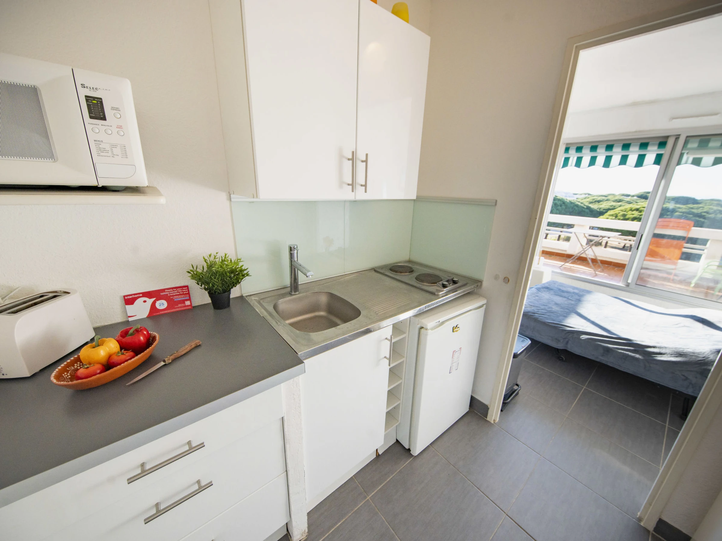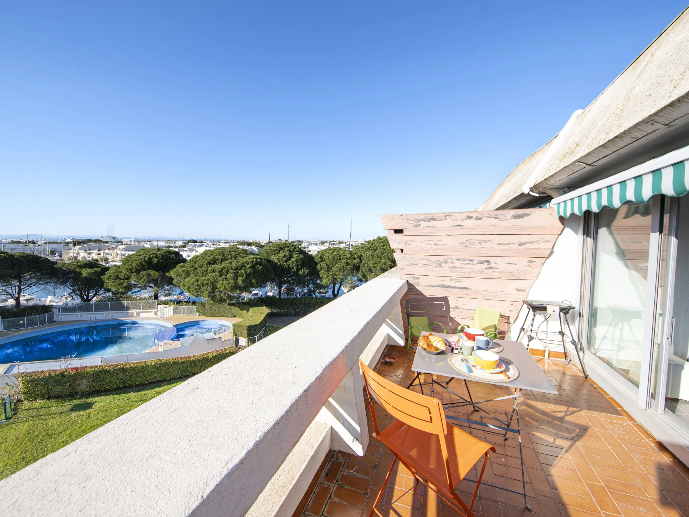 1-Zimmer-Studio 25 m2 im 3. Stock. Wohn-/Schlafzimmer mit 1 Doppeldiwanbett (1 x 140 cm, Länge 190 cm), Esstisch und TV (Flachbildschirm). Ausgang zur Terrasse. Kleine Küche im Eingang (2 Kochplatten, Toaster, Wasserkocher, Mikrowelle, Tiefkühler, elektrische Kaffeemaschine). Bad/WC. E-Heizung. Terrasse 12 m2, Nordlage und Westlage. Terrassenmöbel, Elektrogrill. Panoramasicht auf das Schwimmbad, den Kanal und den Hafen. Zur Verfügung: Waschmaschine. Internet (WLAN, gratis). Parkplatz (1 Auto). Bitte beachten: Nichtraucher-Unterkunft. Maximal 1 Haustier/Hund erlaubt. Rauchmelder, kein Fahrstuhl. Inserat einer Privatperson nach Artikel 155, IV, CGI. [hidden]