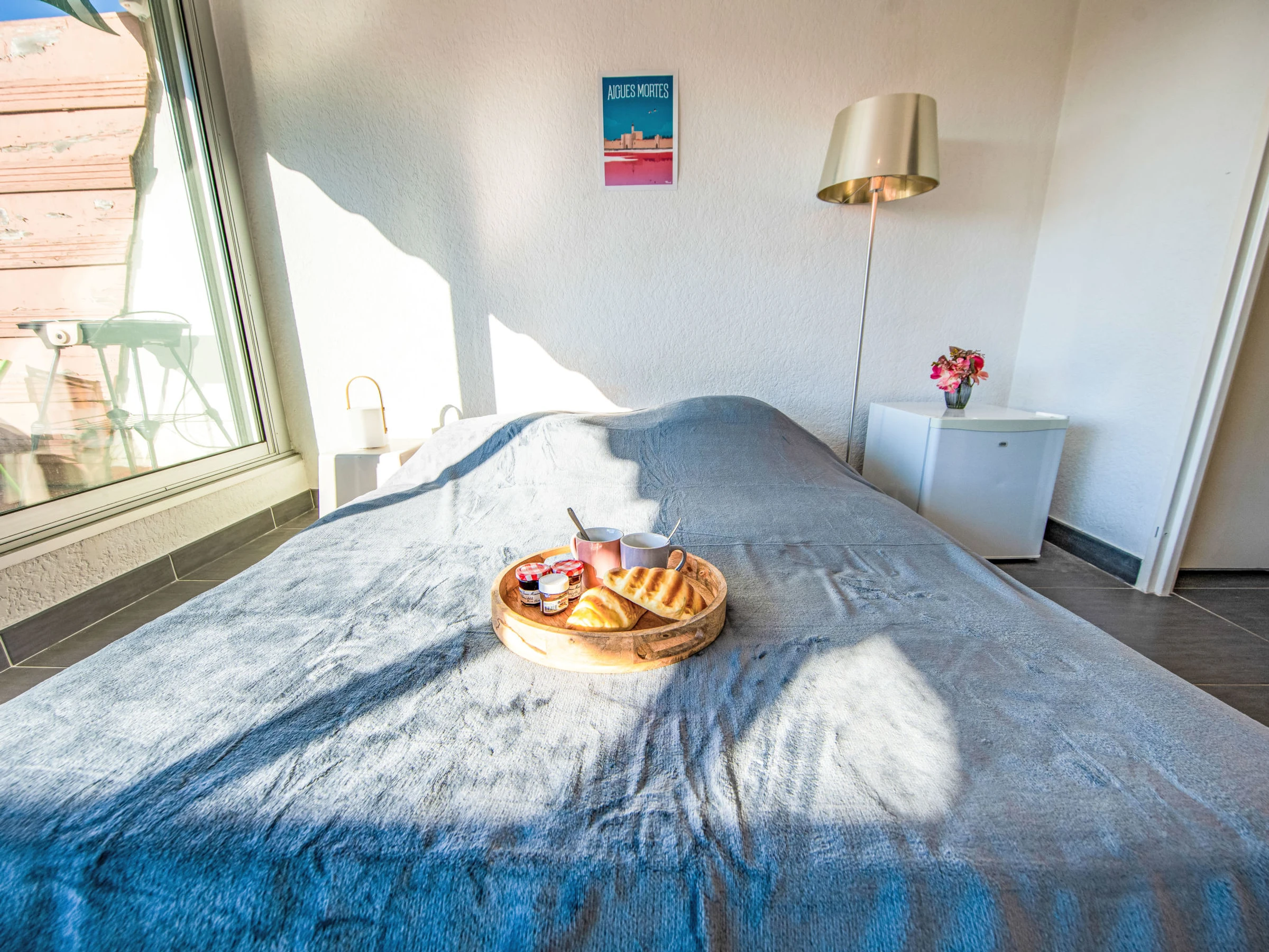 Residenz "Le Quai aux Fleurs". Im Ortsteil Plage Sud, 500 m vom Meer, 500 m vom Strand. Zur Mitbenutzung: Schwimmbad rund (80 - 240 cm tief, saisonale Verfügbarkeit: [hidden] - [hidden] Kinderbecken, Grill, Parkplatz (beschränkte Anzahl), öffentliche Parkplätze 150 m. Lebensmittelgeschäft 400 m, Supermarkt 3 km, Restaurant 400 m, Bushaltestelle "Quai aux Fleurs" 10 m, Bahnstation 3.5 km, Sandstrand 450 m, Thermalbad "Thalazur" 800 m. Sporthafen 500 m, Jacht-Hafen 30 m, Segelschule 2 km, Tennis 1.5 km. Nahe gelegene Sehenswürdigkeiten: Casino Flamingo 2 km, Seaquarium 2 km, les arènes du Grau du Roi 3 km, Aigues-Mortes 10 km, La grande Motte 15 km, Nîmes 52 km. Wandergebiete: La réserve naturelle de Camargue. Bitte beachten: Die Schlüsselübergabe findet bei der Agentur in Port Camargue statt. Flugplatz 24 km vom Haus.