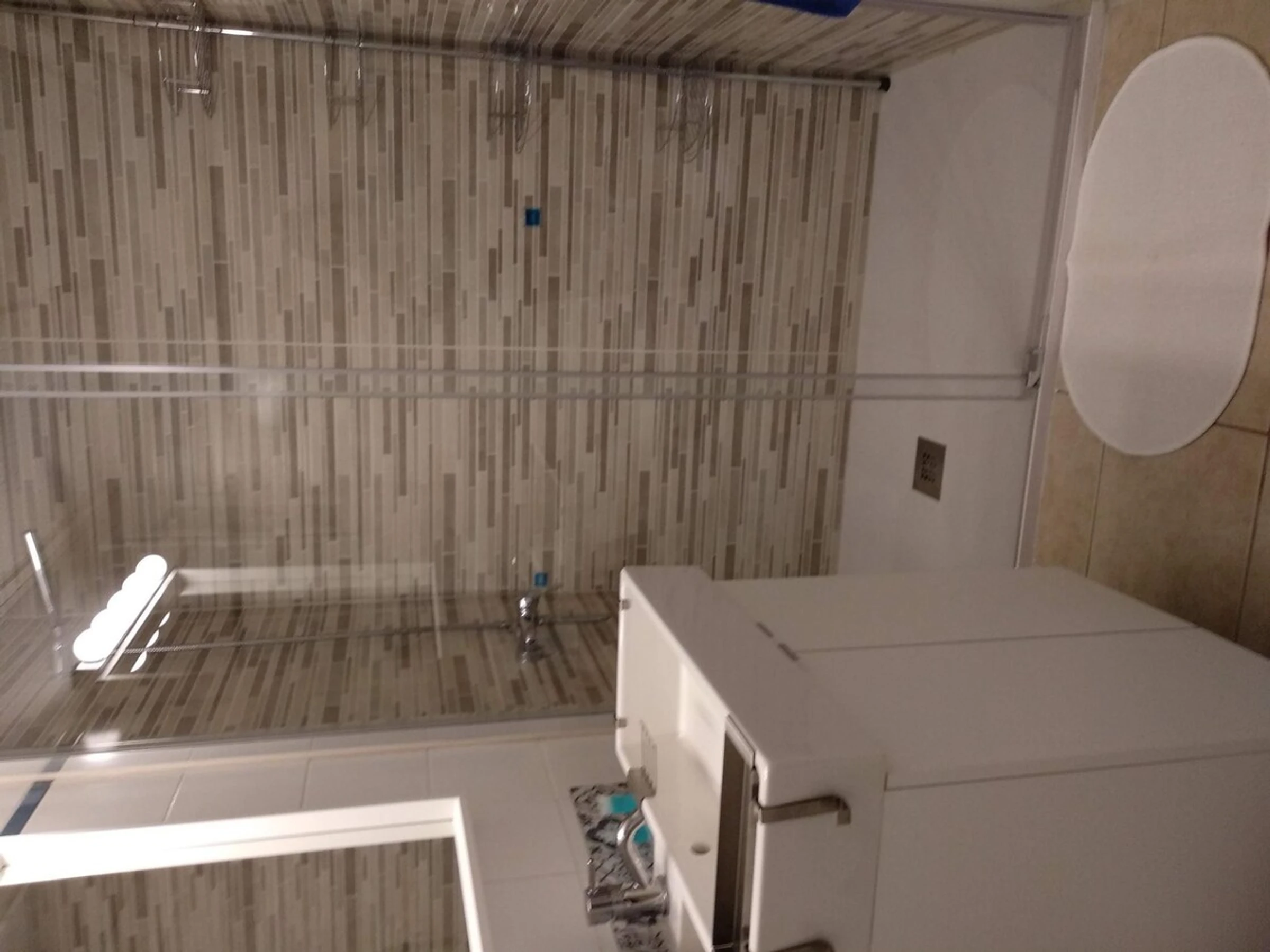 Dieses offene küche, mit ceranfeld, ist ausgestattet in kühlschrank, mikrowelle, gefrierschrank, geschirr/besteck, kochutensilien, kaffeemaschine, toaster, wasserkocher und saftpresse.