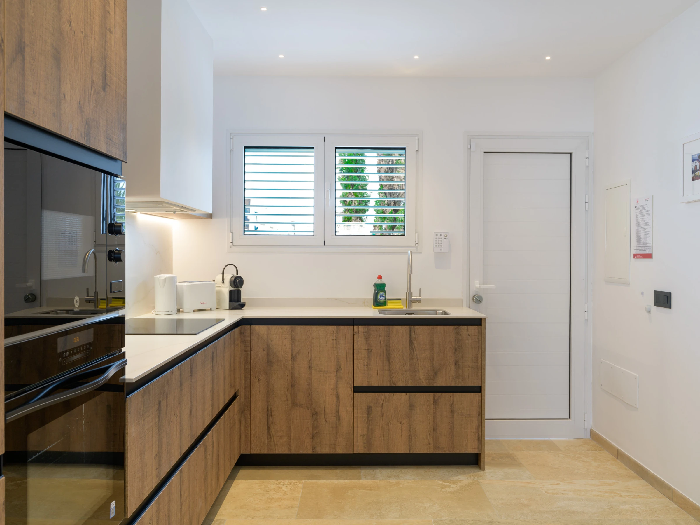 Dieses separate küche, mit ceranfeld, ist ausgestattet in kühlschrank, mikrowelle, backofen, gefrierschrank, spülmaschine, geschirr/besteck, kaffeemaschine, toaster, wasserkocher und saftpresse.