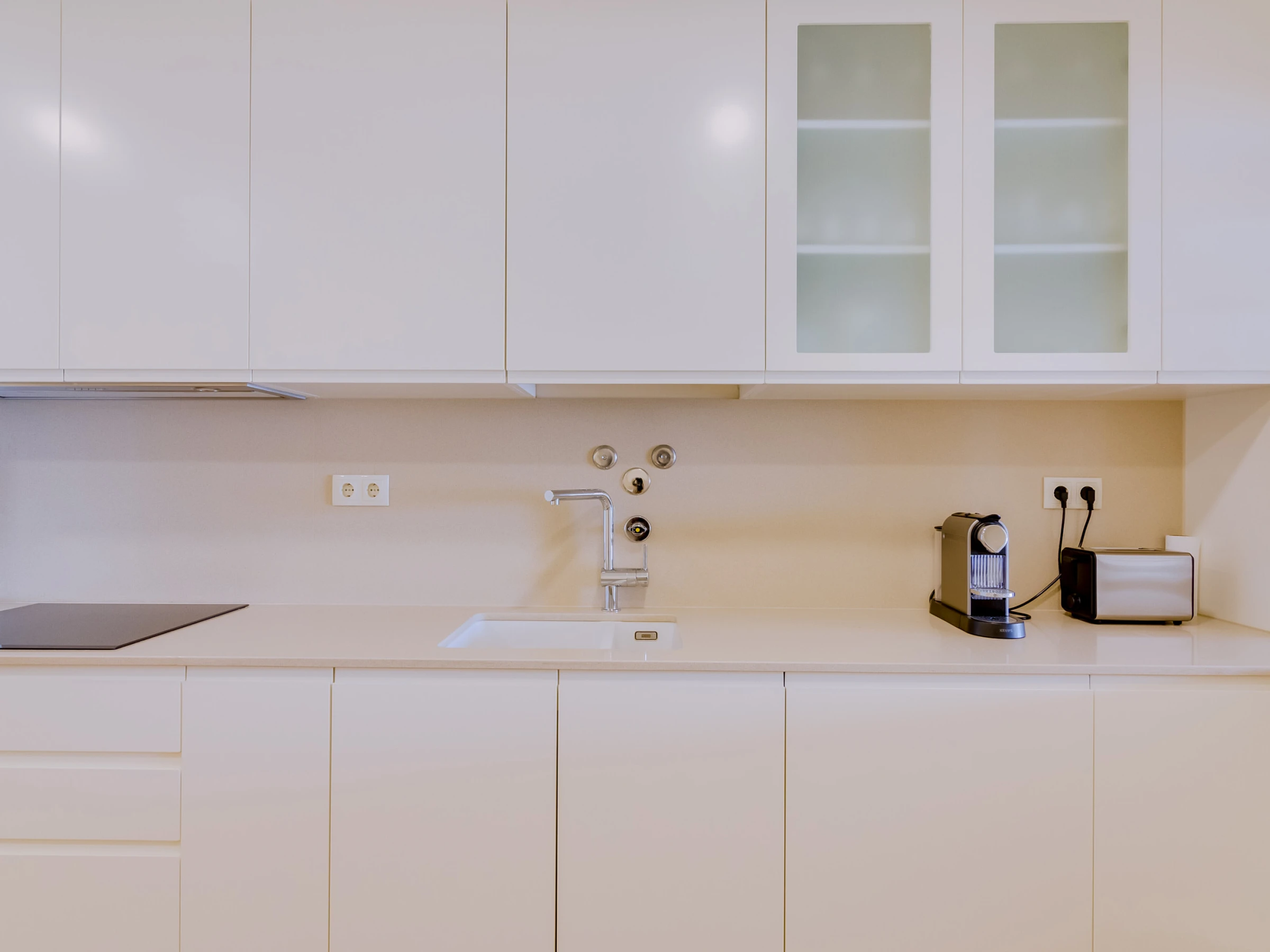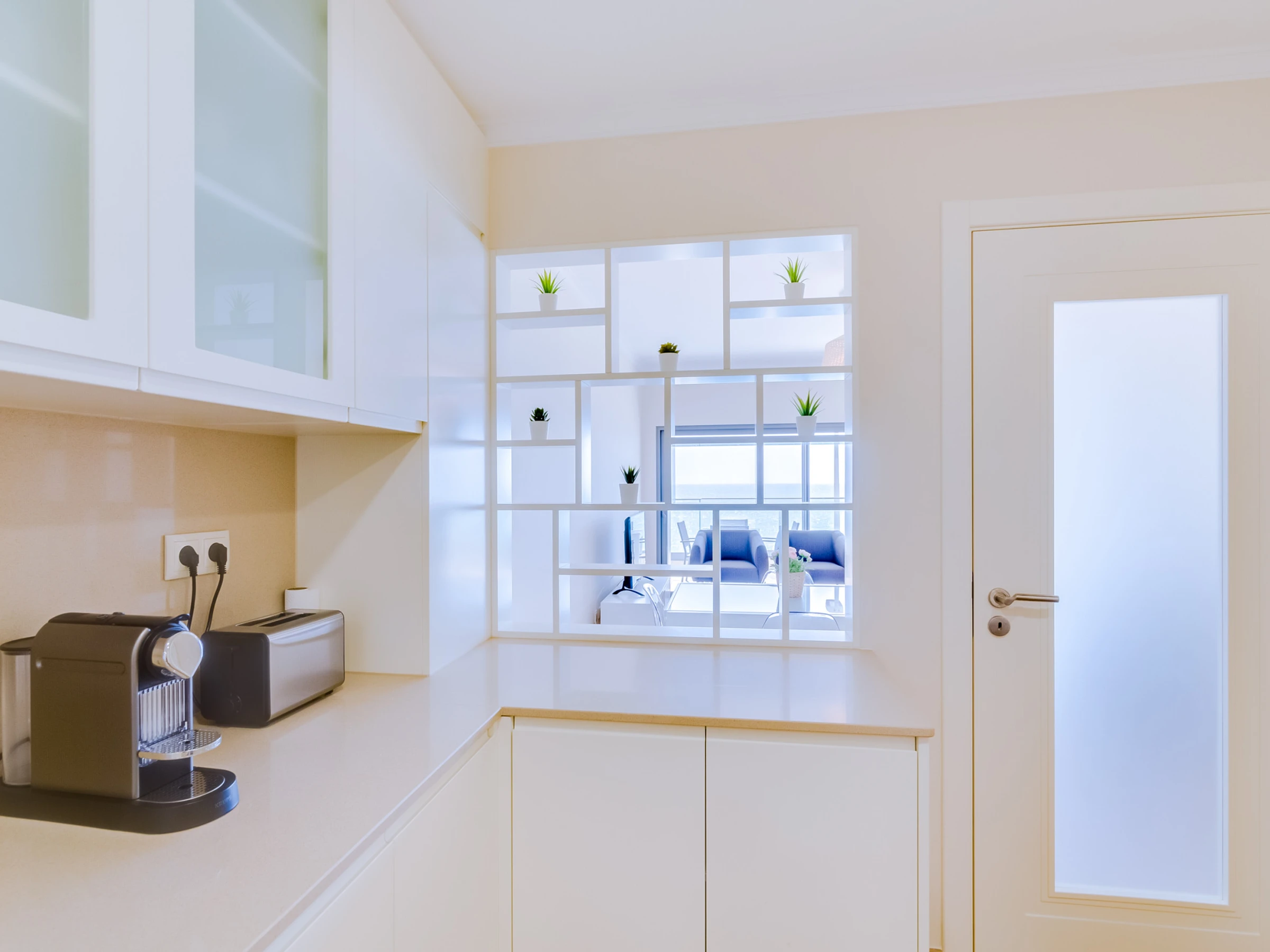 Dieses separate küche, mit ceranfeld, ist ausgestattet in kühlschrank, mikrowelle, backofen, gefrierschrank, spülmaschine, geschirr/besteck, kochutensilien, kaffeemaschine, toaster und wasserkocher.
