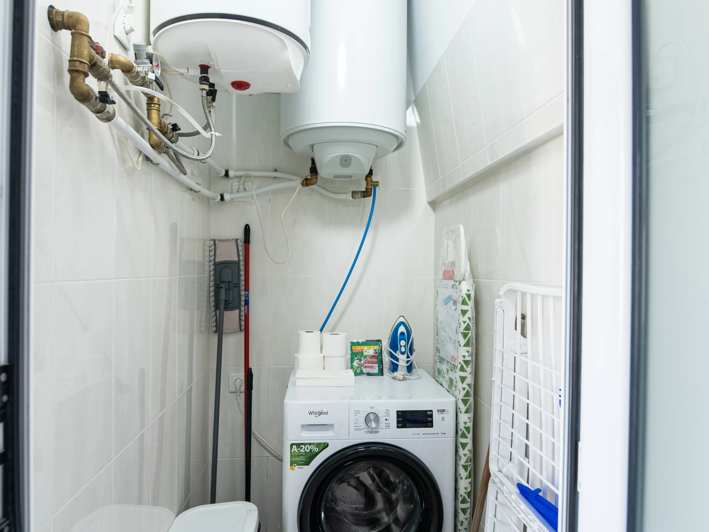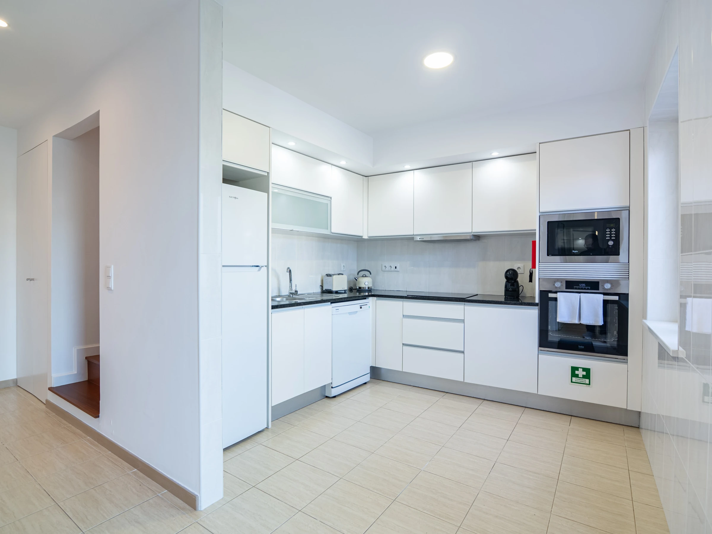 Die voll ausgestattete amerikanische Küche ist ein Highlight der Immobilie. Sie verfügt über moderne Haushaltsgeräte wie Waschmaschine, Geschirrspüler, Kühlschrank, Gefrierschrank, Ofen, Mikrowelle, Kaffeemaschine, Toaster und Wasserkocher. Alle notwendigen Küchenutensilien stehen zur Verfügung, um köstliche Mahlzeiten zuzubereiten.